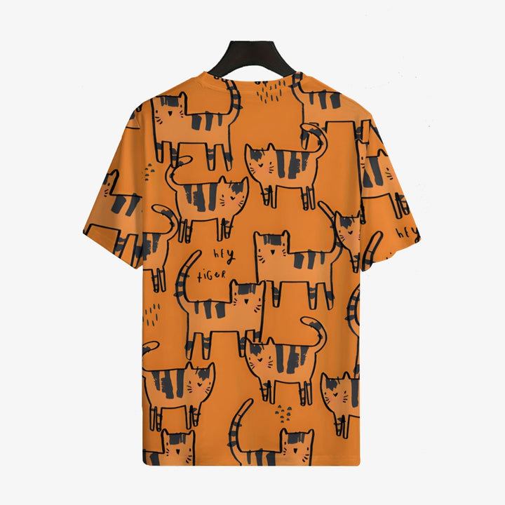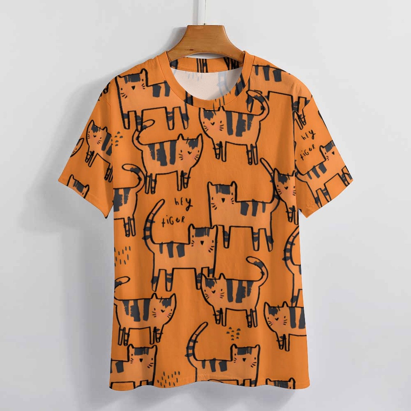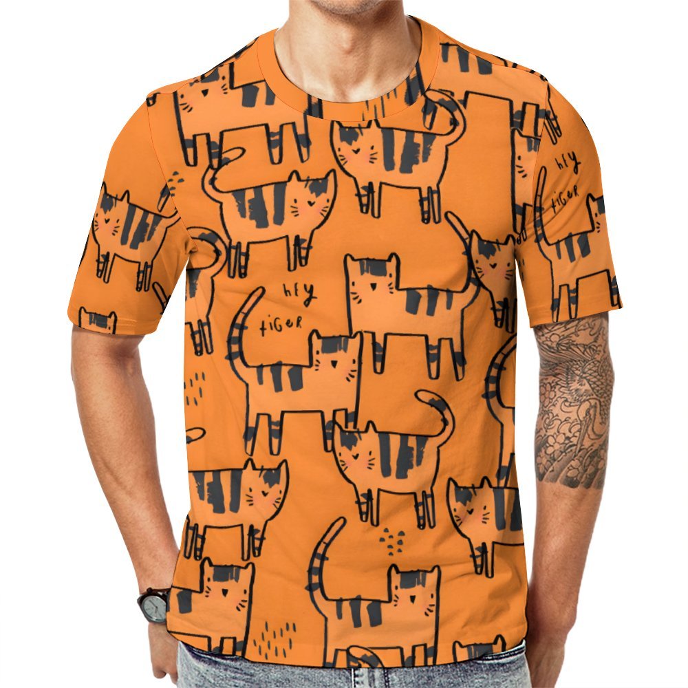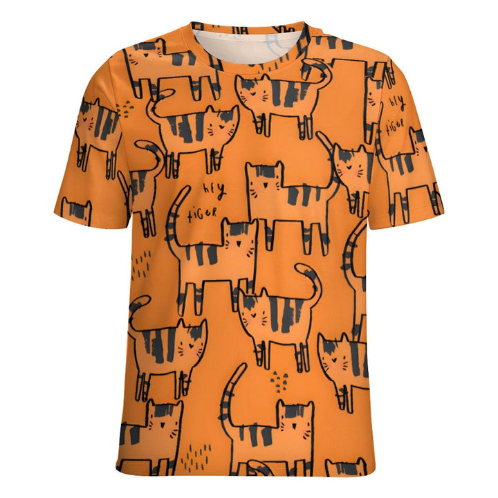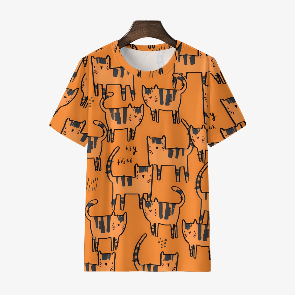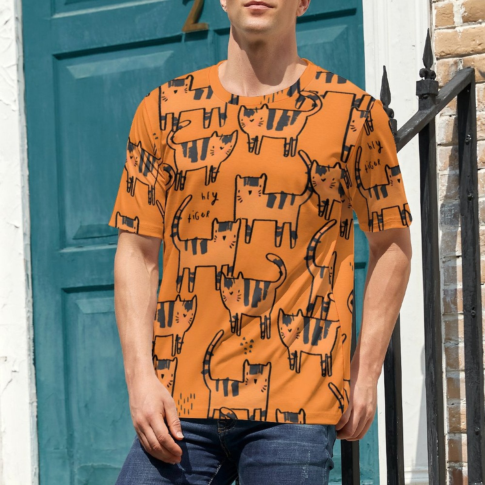 Men's Orange Cat Round Neck Casual T-shirt 2401000111