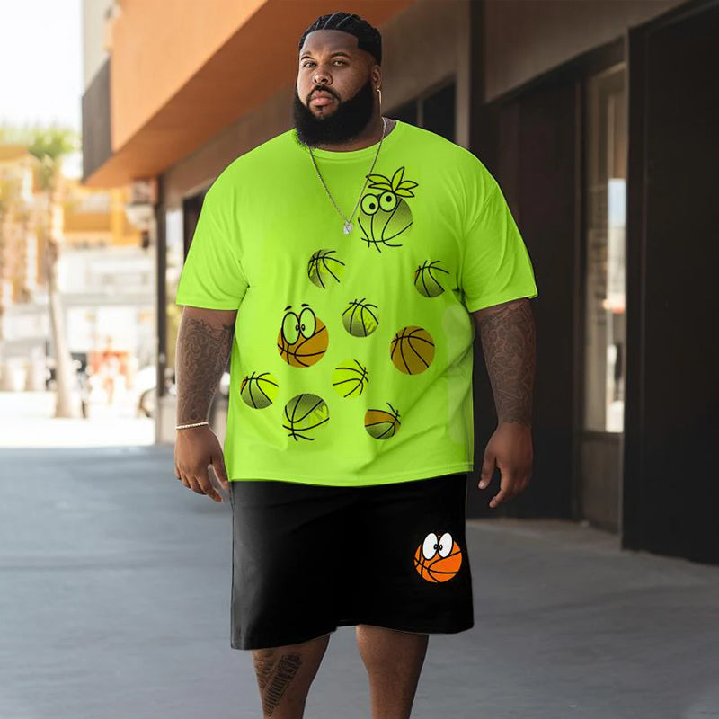 Men's Plus Size Bird Funny Expression Short-Sleeved Shorts Suit