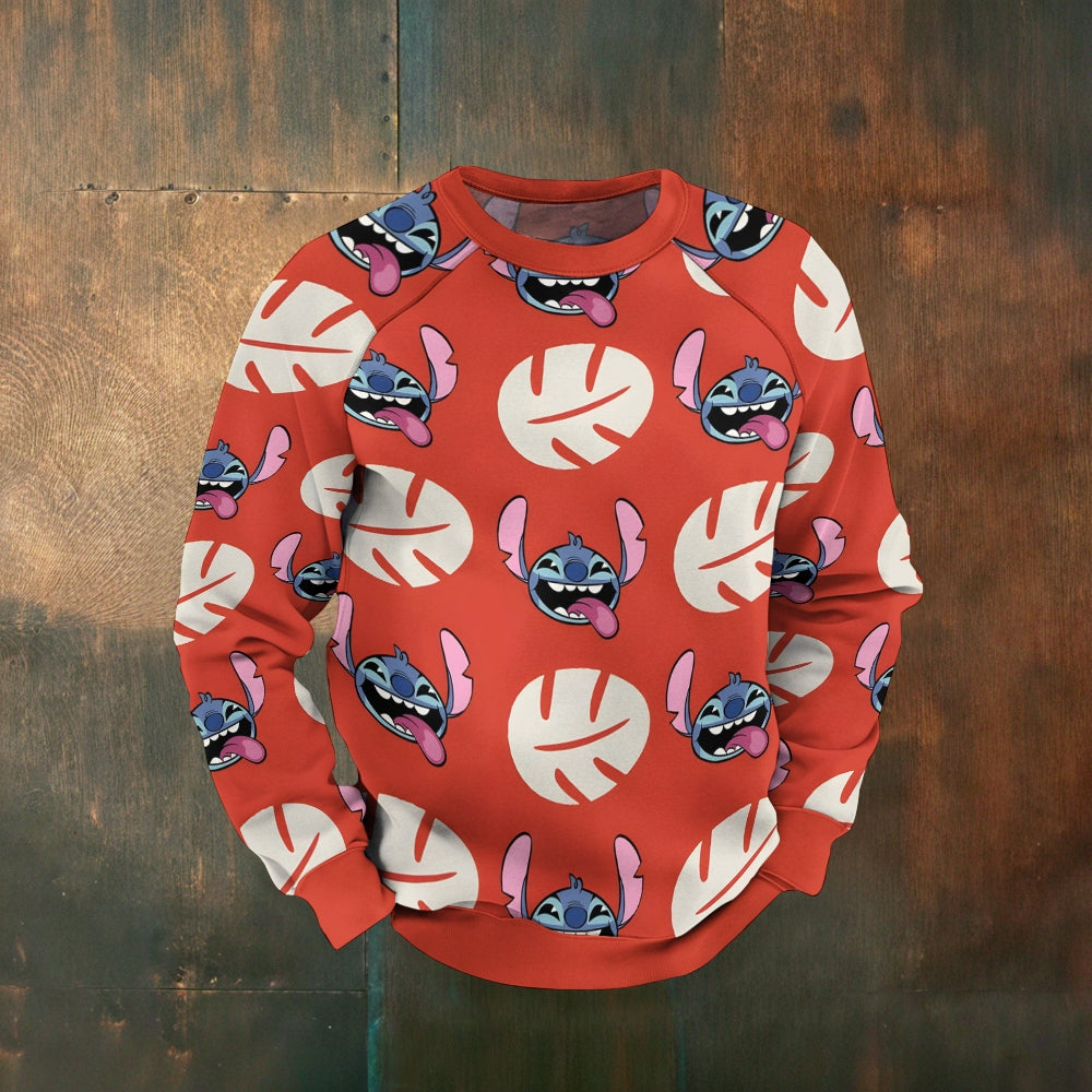 Men's Raglan Hawaiian Character Print Long Sleeve Sweatshirt 2411002416
