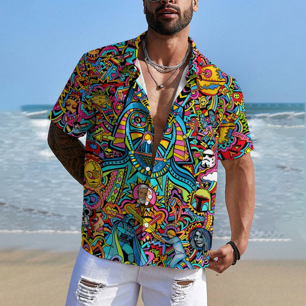 Men's Retro Spaceship Short Sleeve Shirt 2411010304