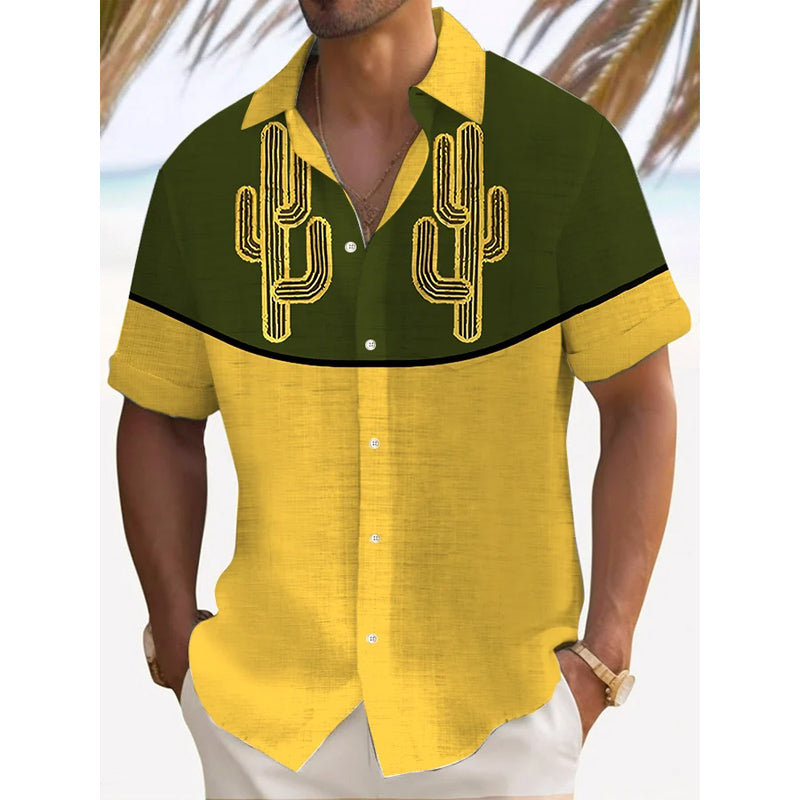 Men's Retro Western Print Short Sleeve Shirt