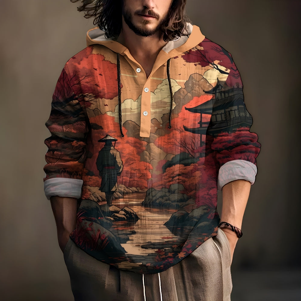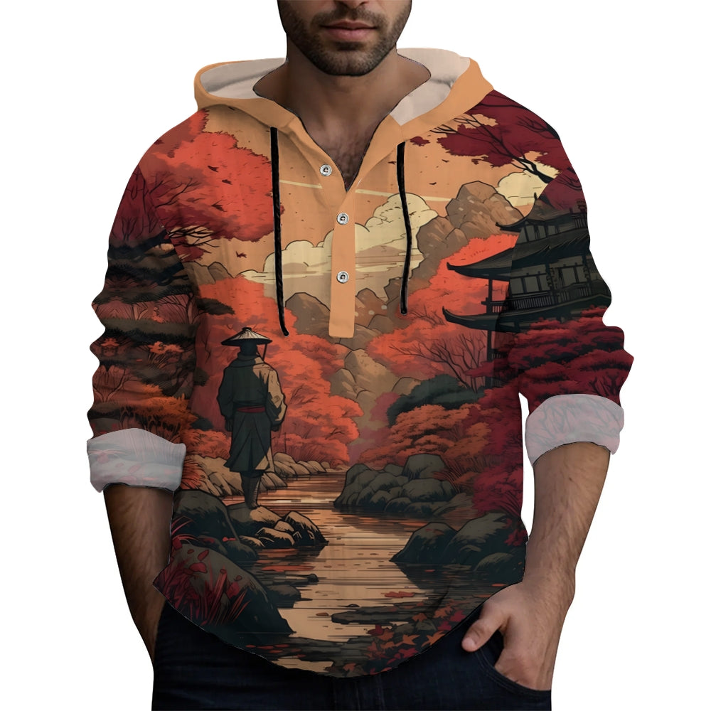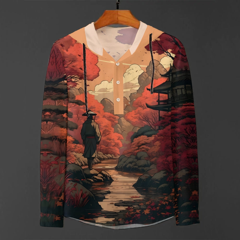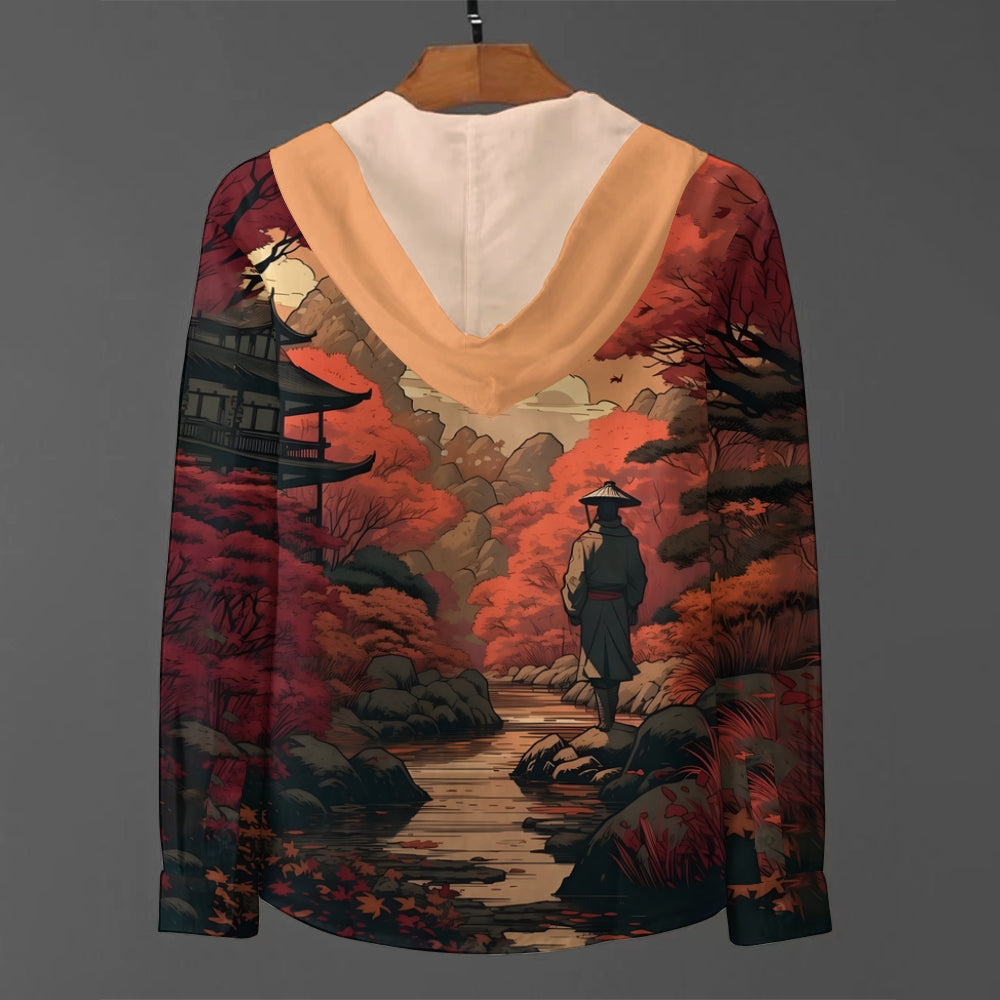 Men's Samurai Fall Landscape Art Print Hooded Shirt 2411004392