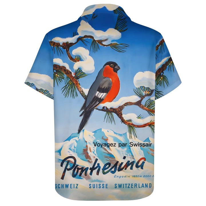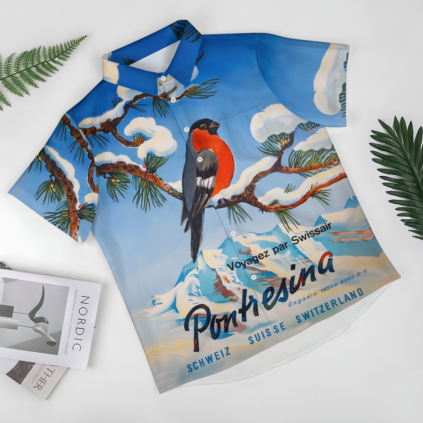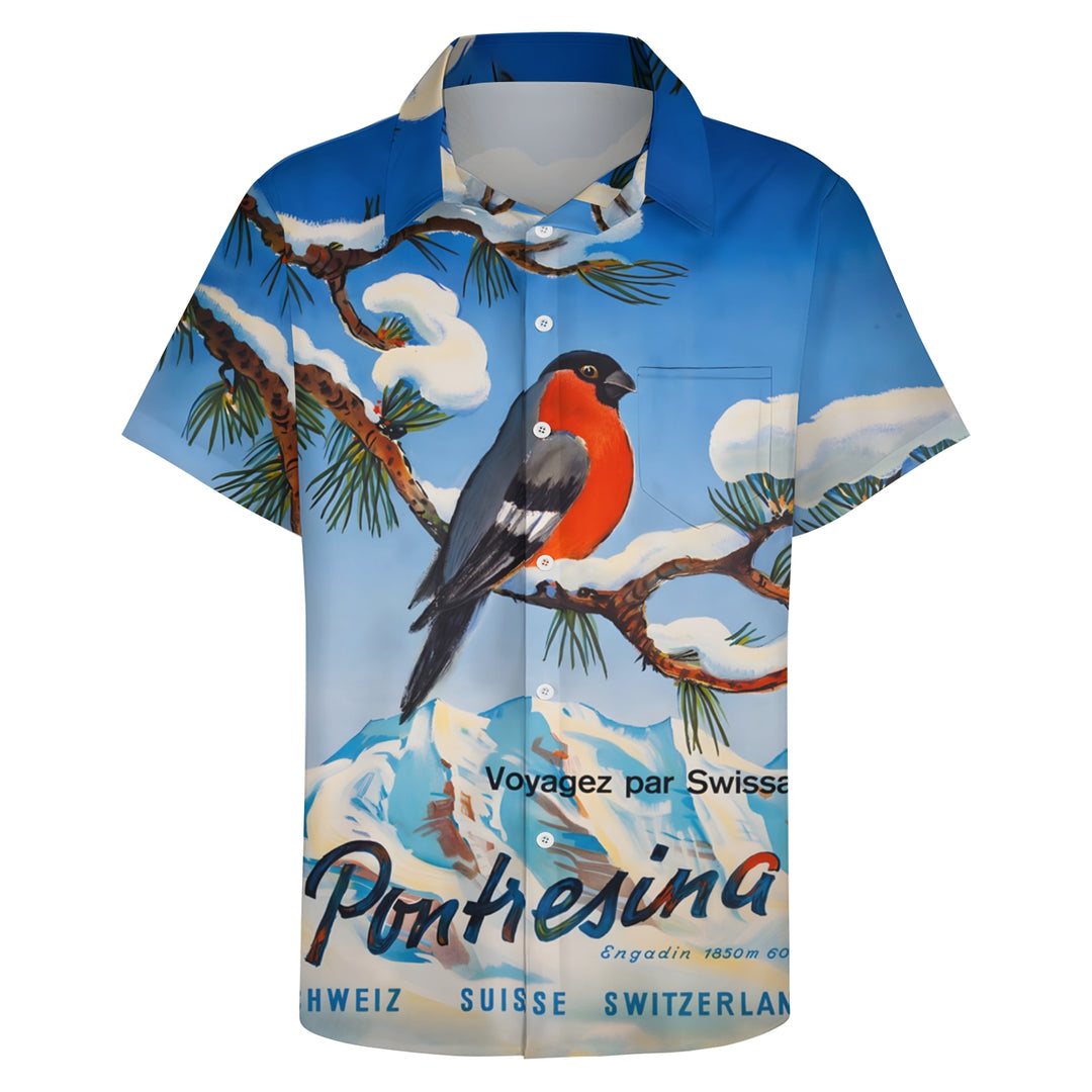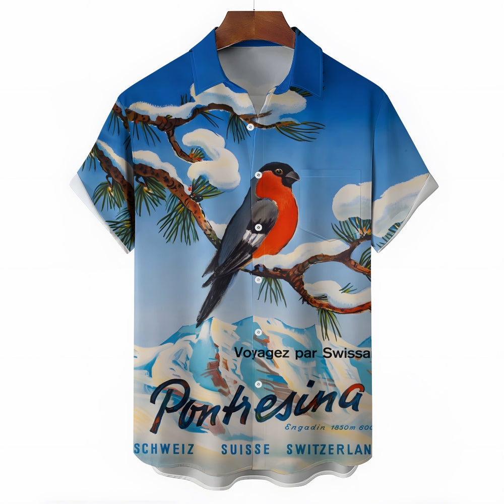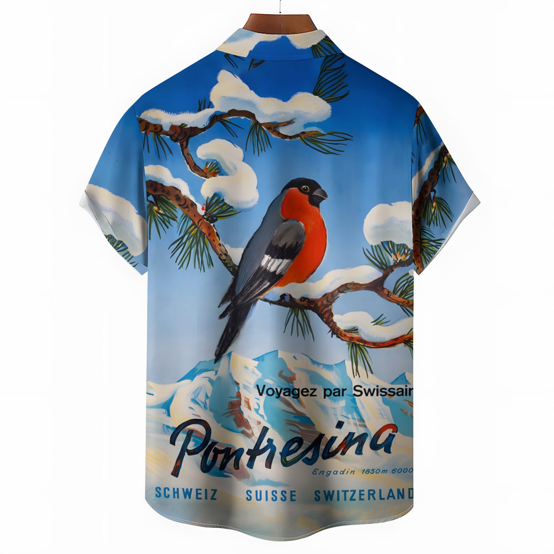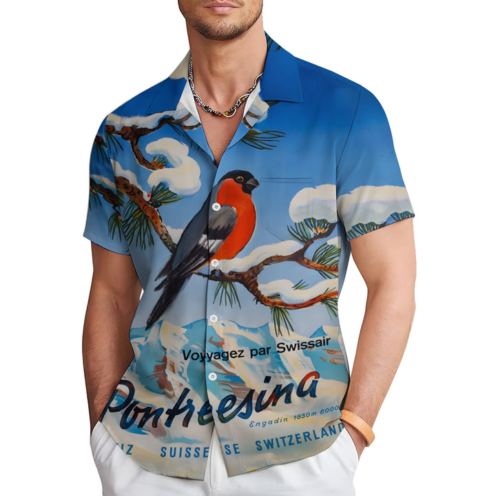 Men's Snowy Mountains And Birds Casual Short Sleeve Shirt 2403000441