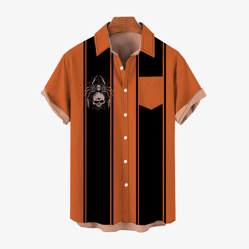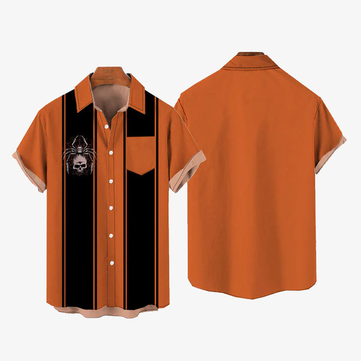 Men's Spider Print Bowling Short Sleeve Shirt