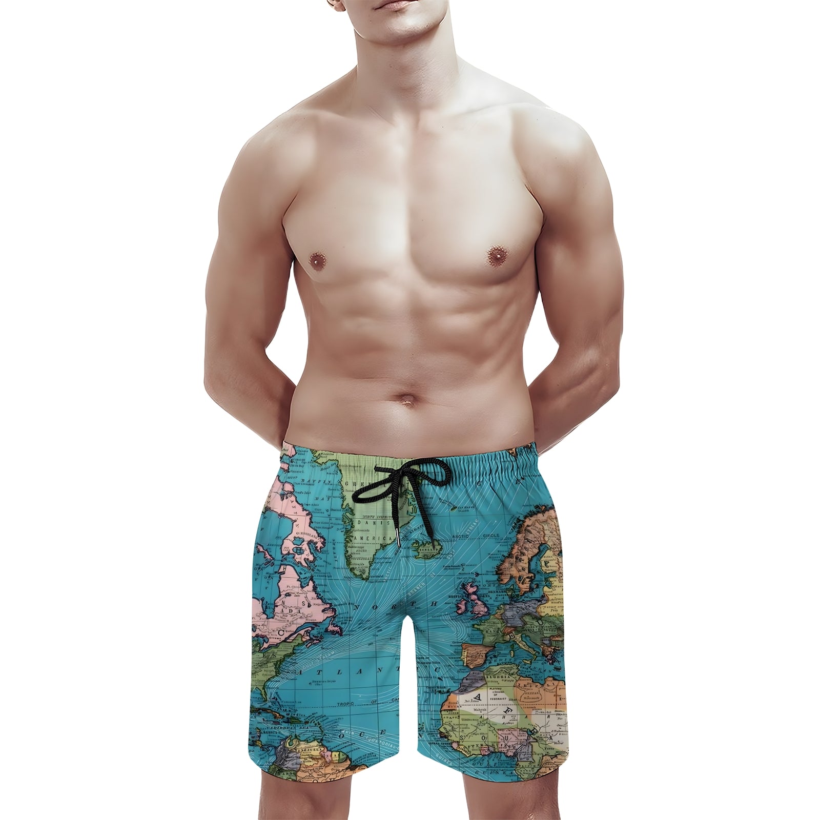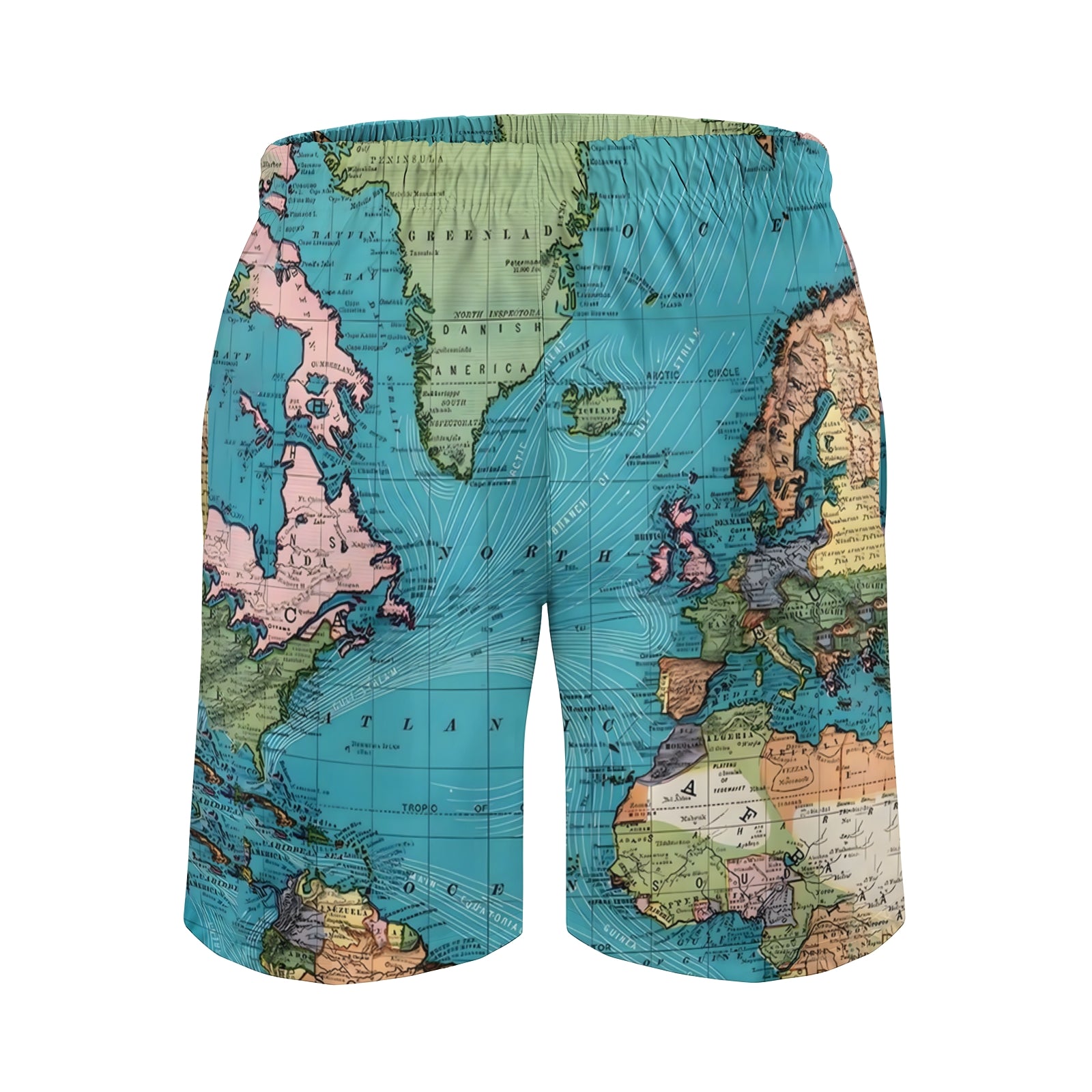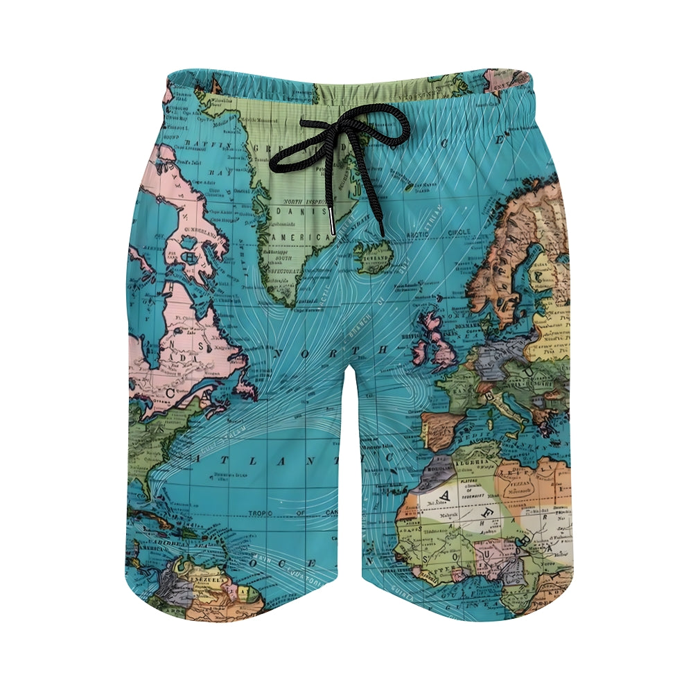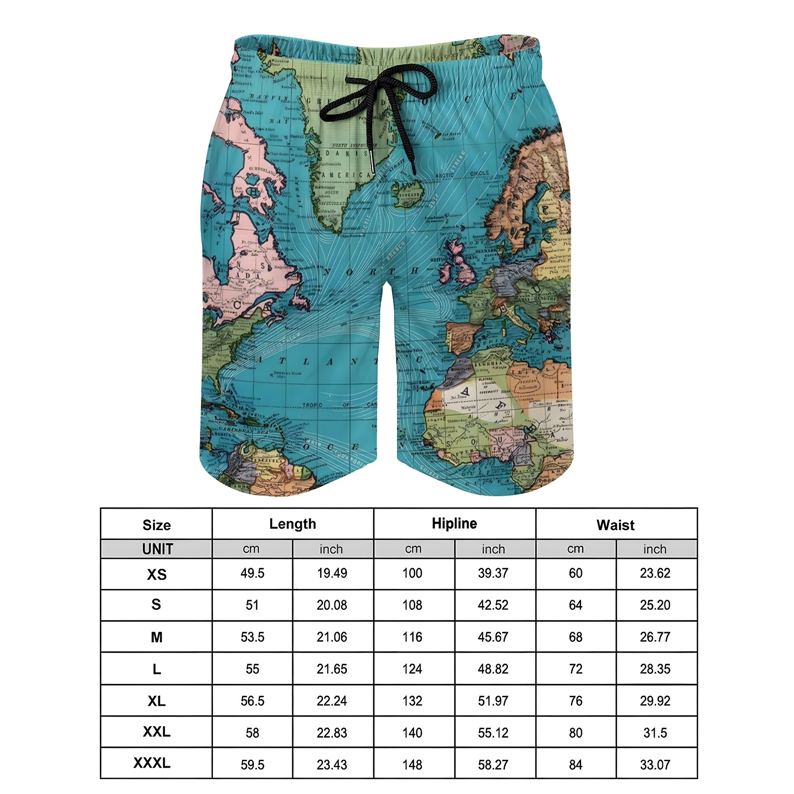 Men's Sport Fashion Map Print Board Shorts 2307101626