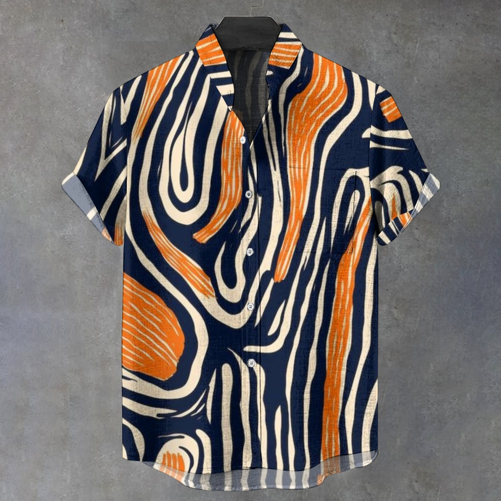 Men's Stand Collar Fun Simple Line Printed Short Sleeve Shirt 2408006947
