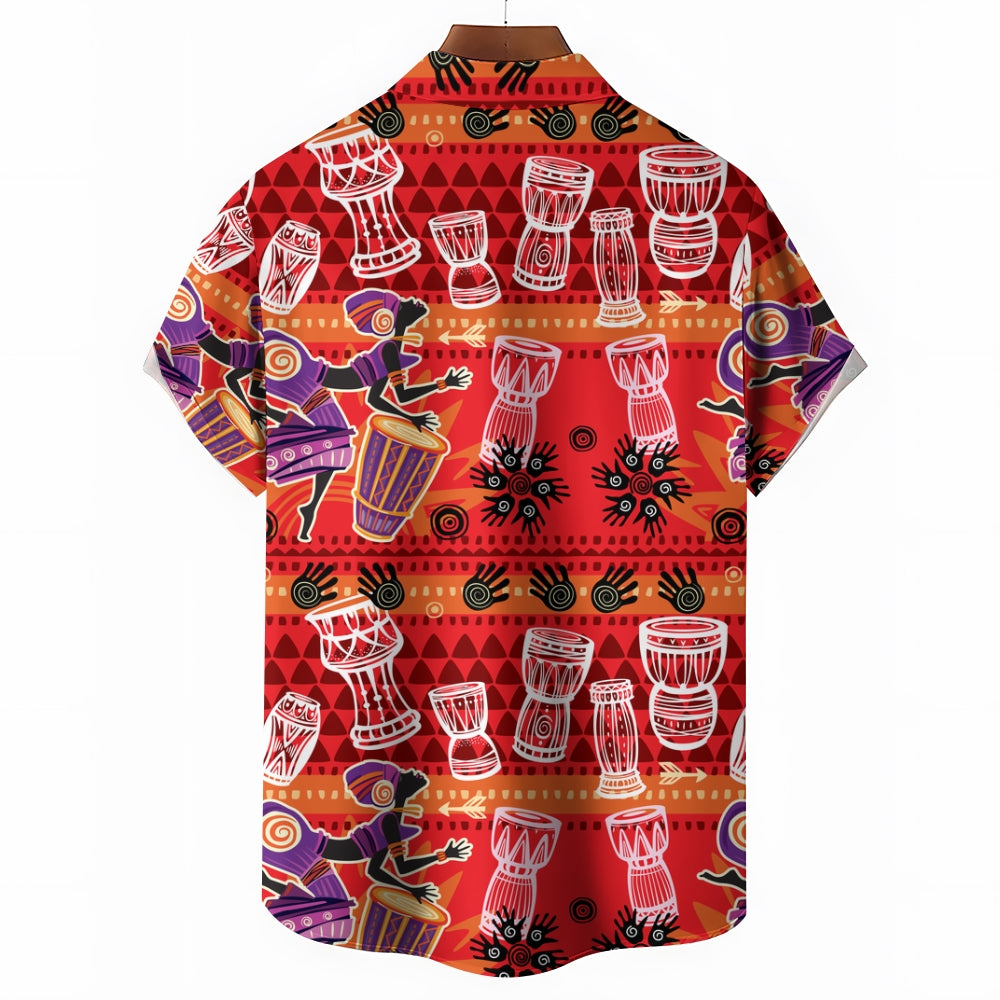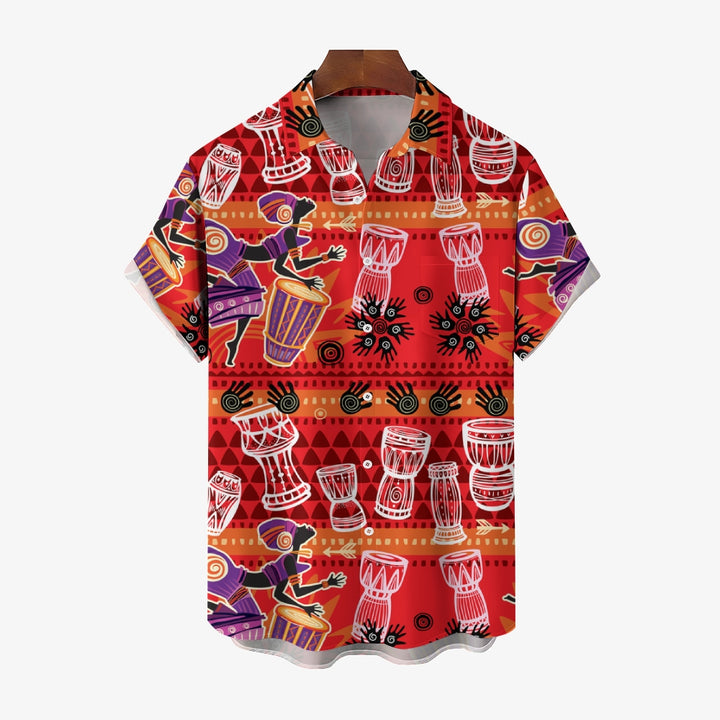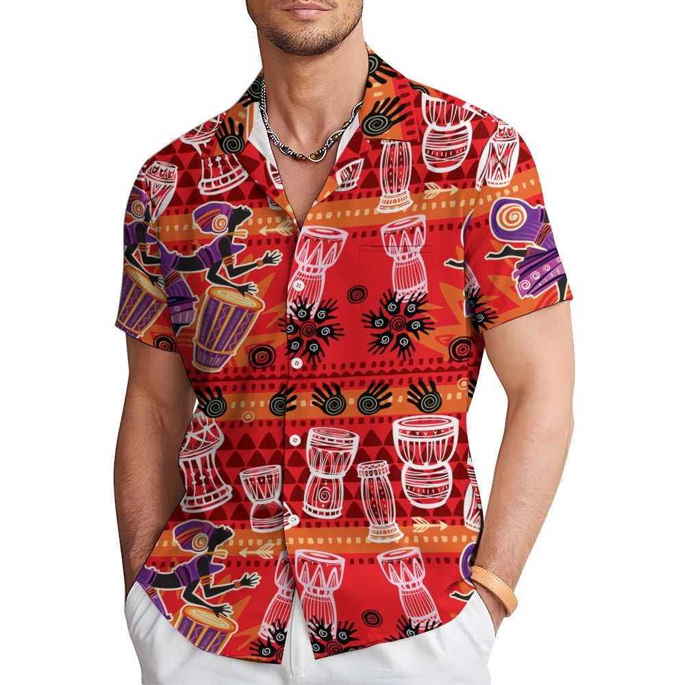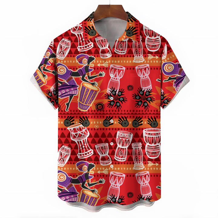 Men's Tribal Drum Art Casual Short Sleeve Shirt 2403000920