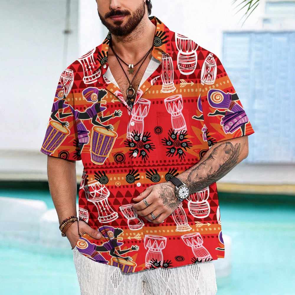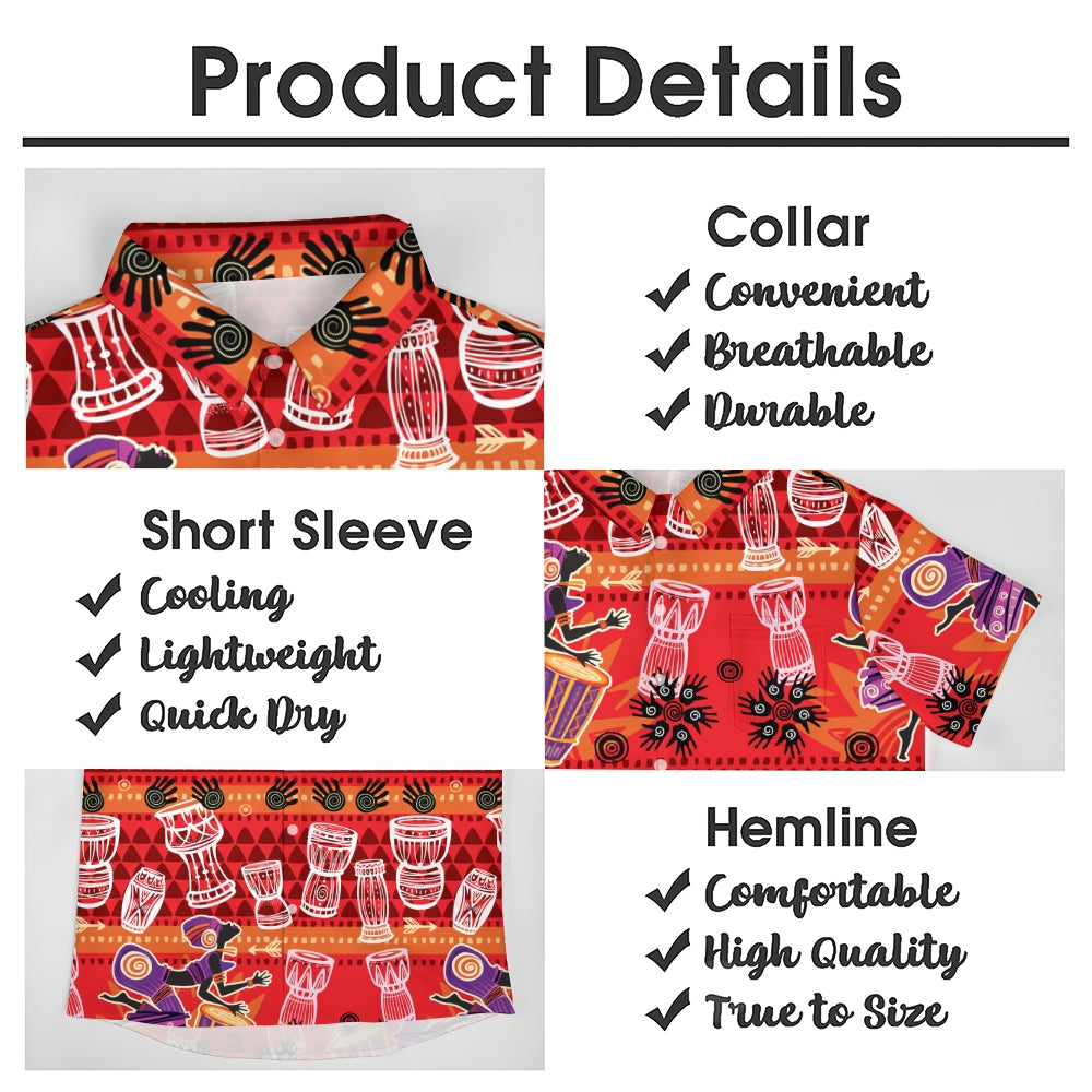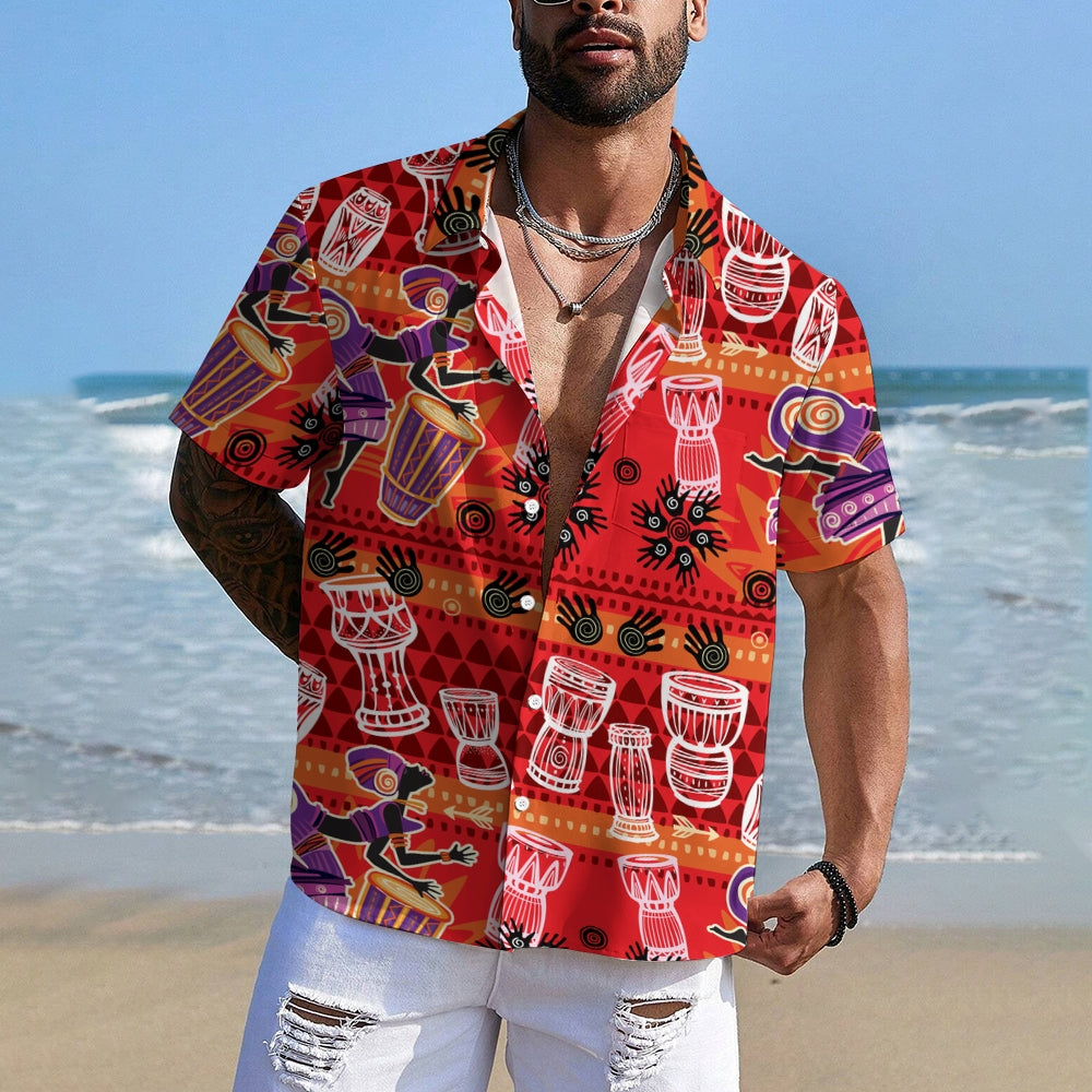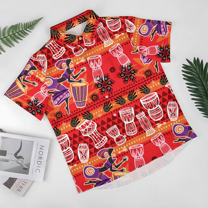 Men's Tribal Drum Art Casual Short Sleeve Shirt 2403000920