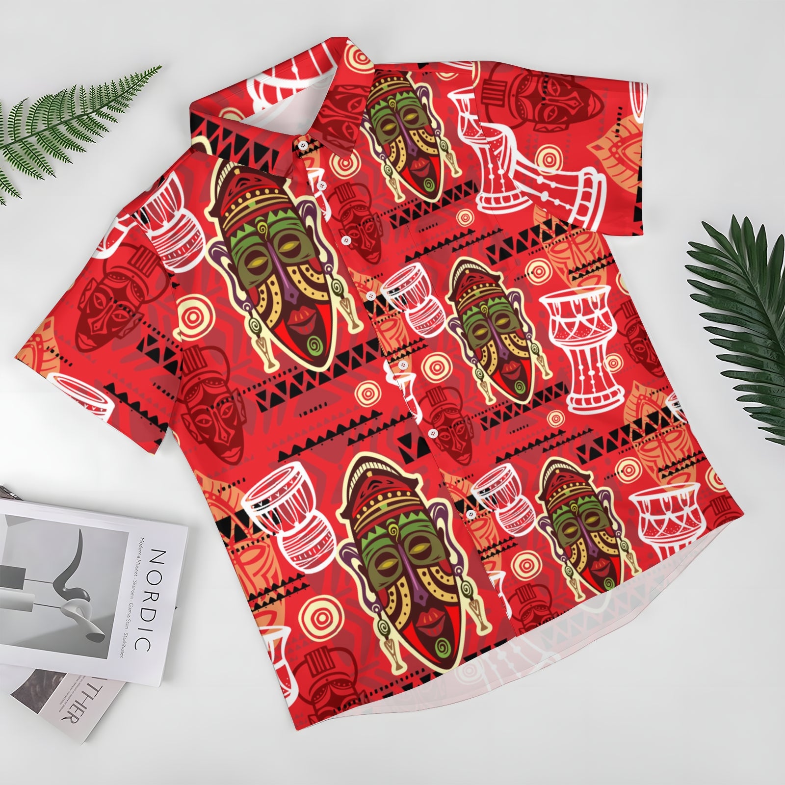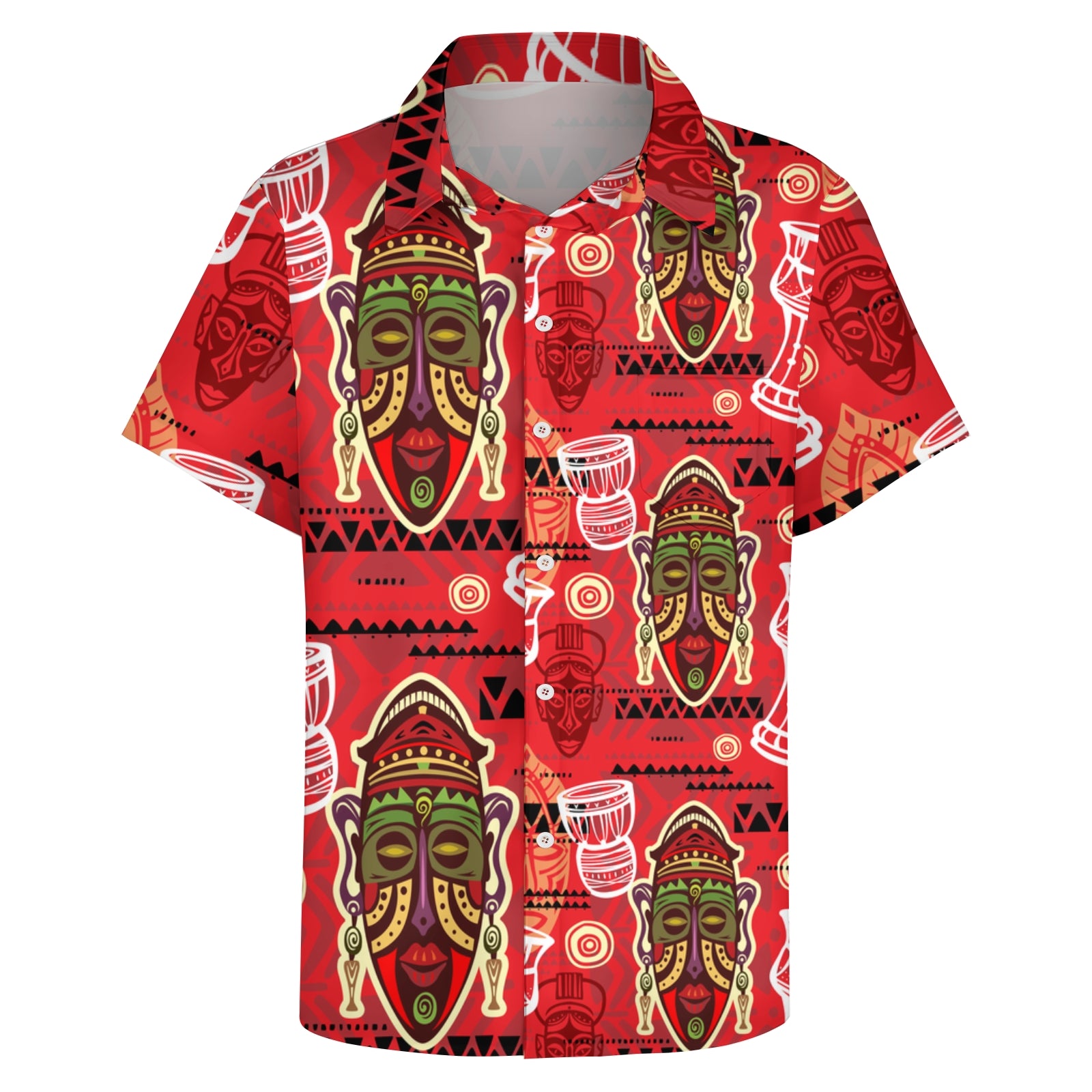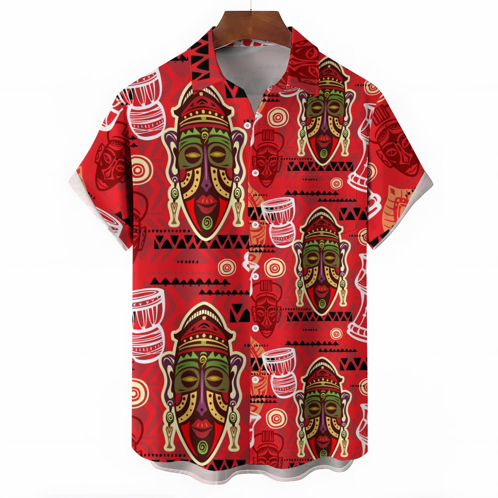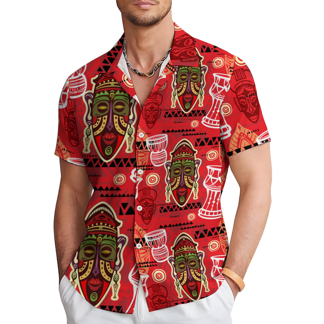 Men's Tribal Mask Casual Short Sleeve Shirt 2403000924