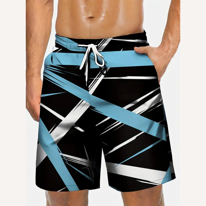 Men's Vibrant Striped Graphic Print Board Shorts 2406002380