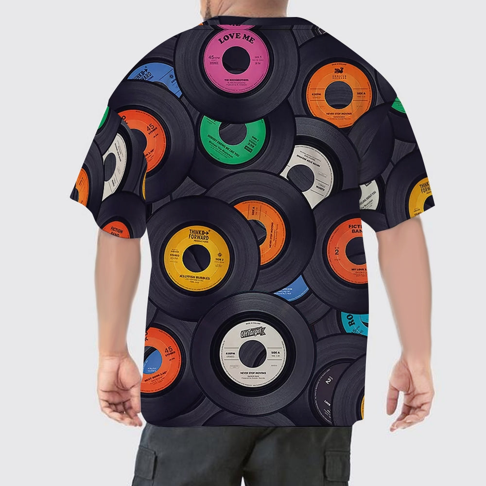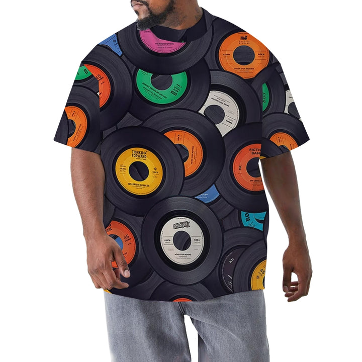 Men's Vinyl Record Round Neck Casual T-Shirt 2403000841