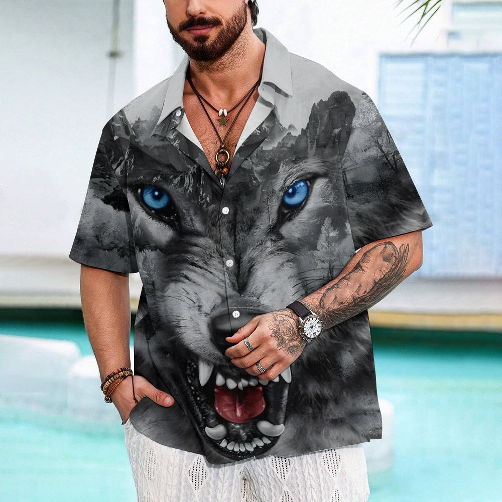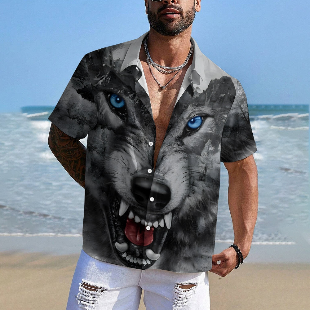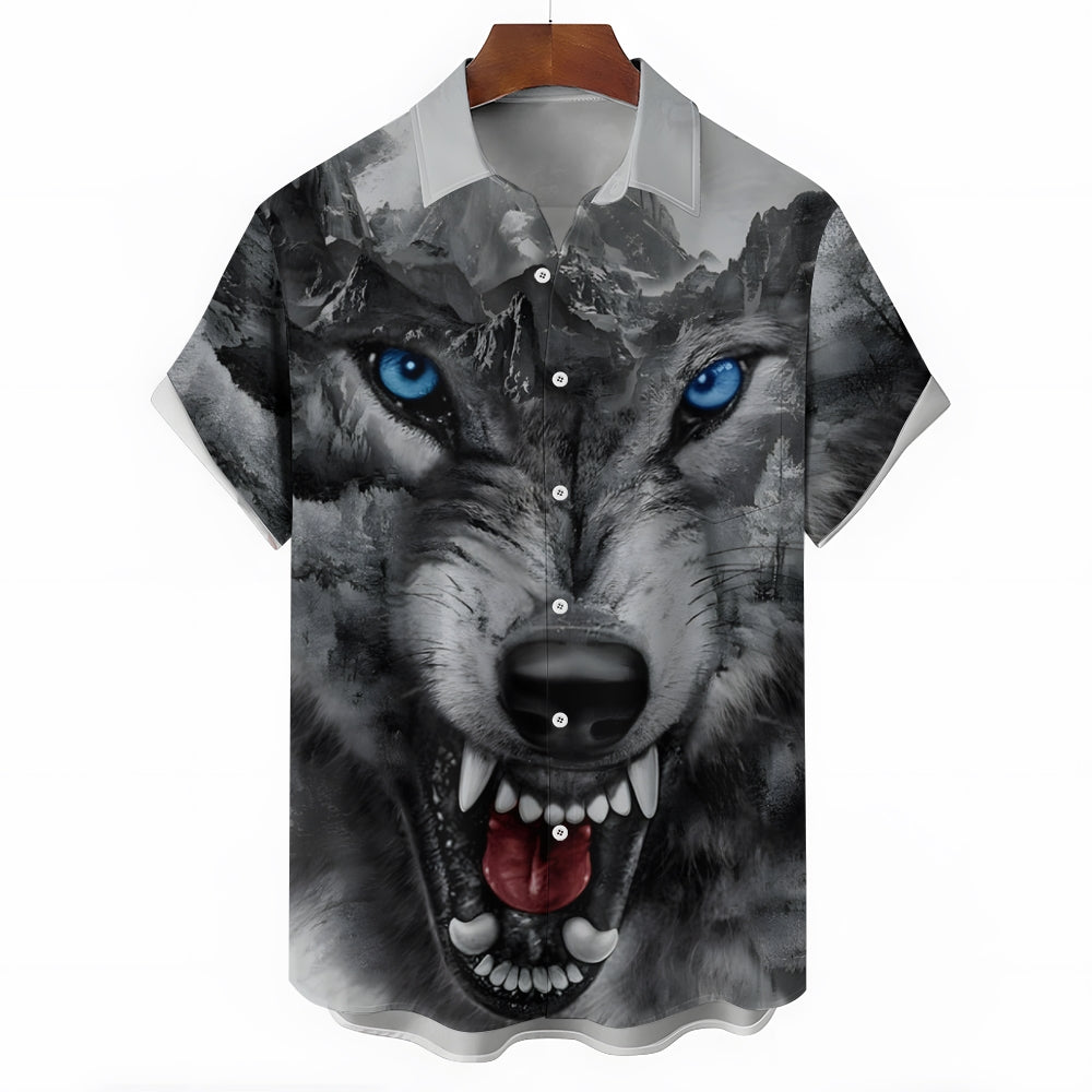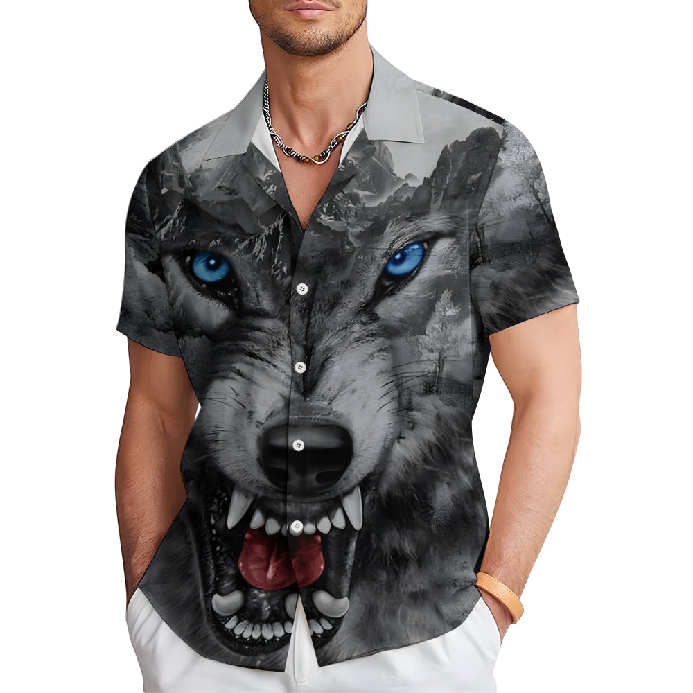 Men's Wolf Print Casual Short Sleeve Shirt 2404000450