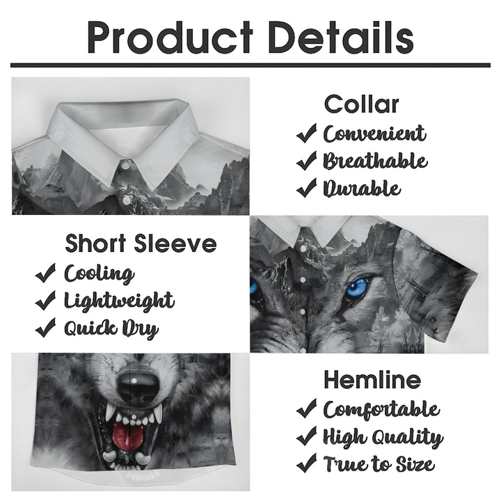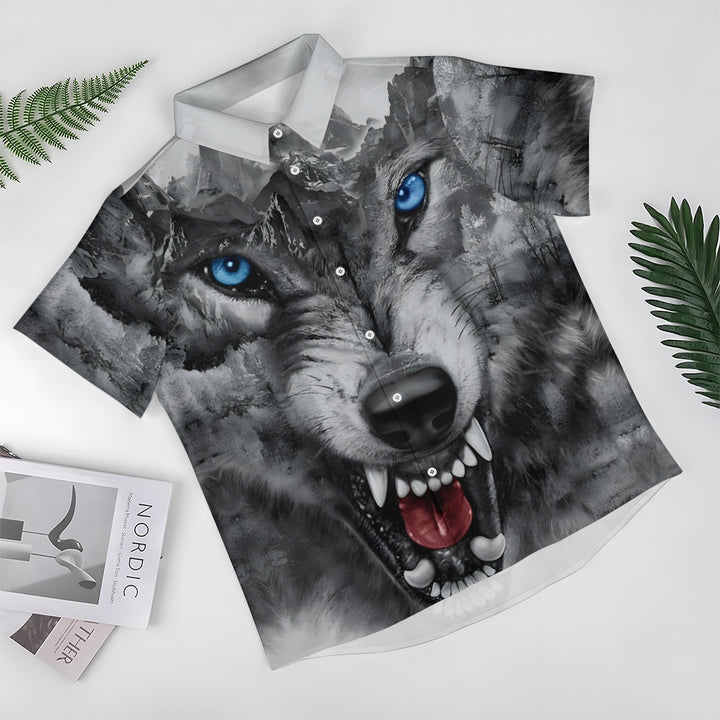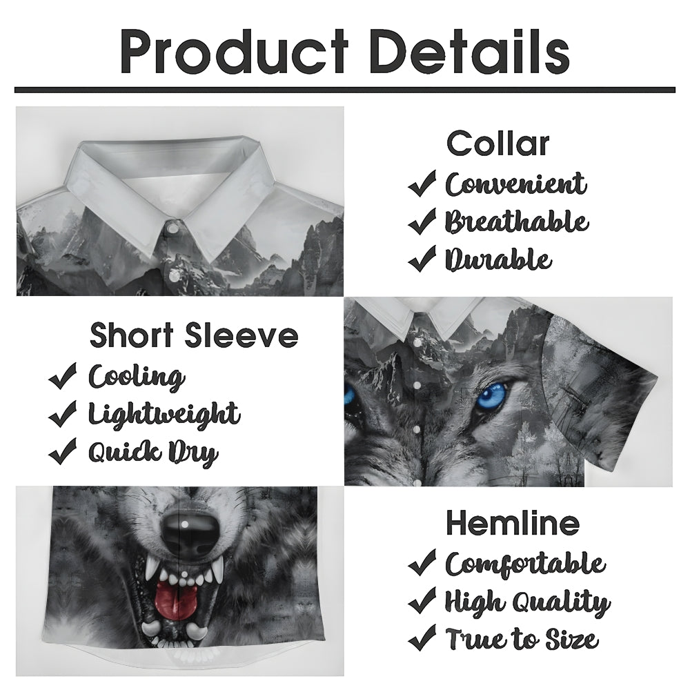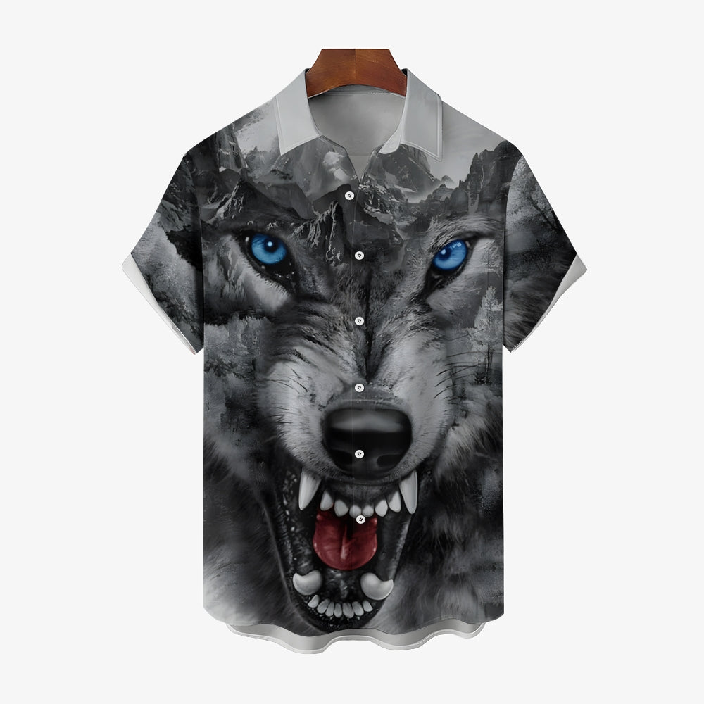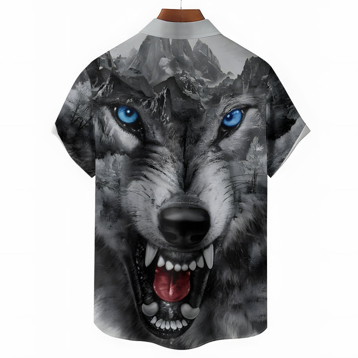Men's Wolf Print Casual Short Sleeve Shirt 2404000450