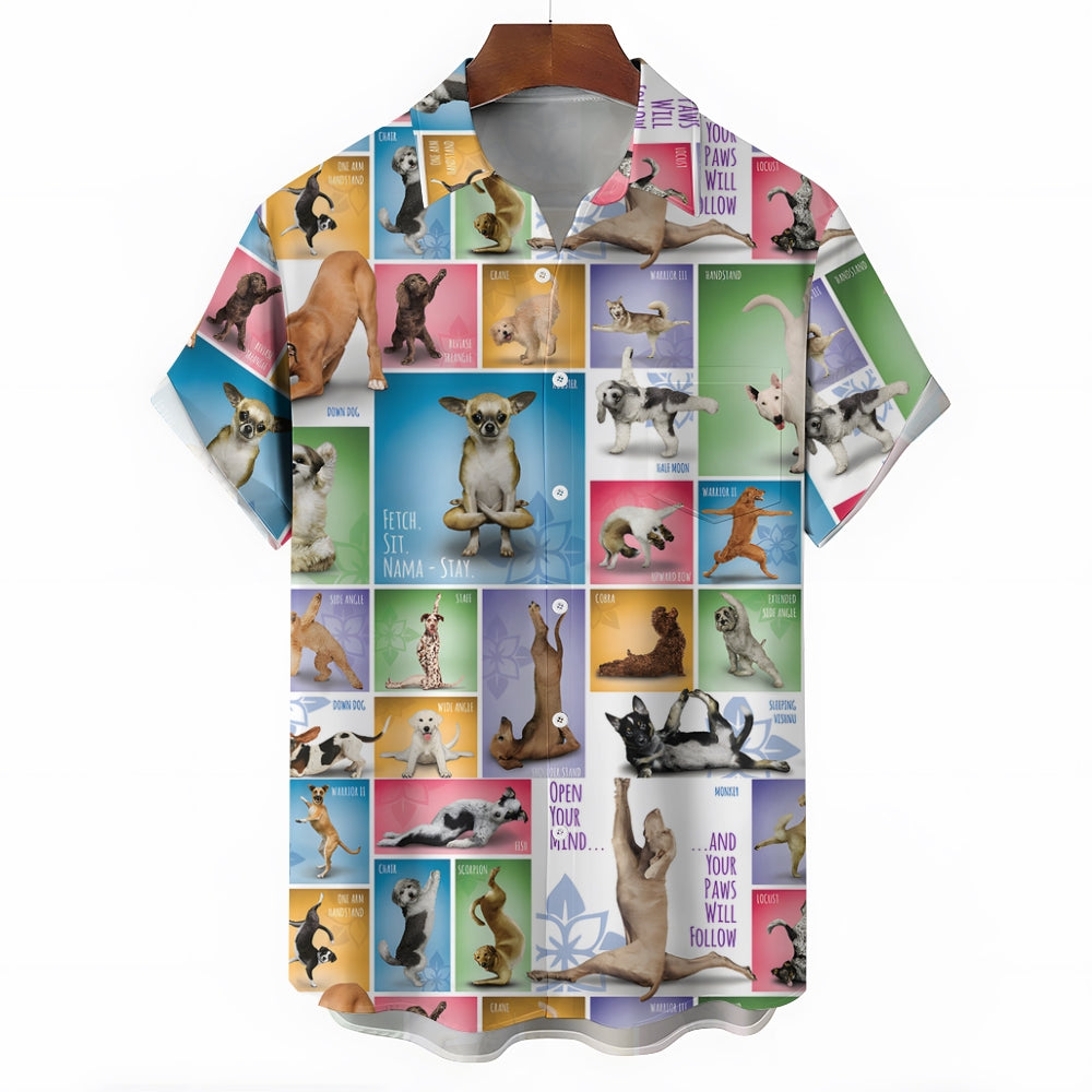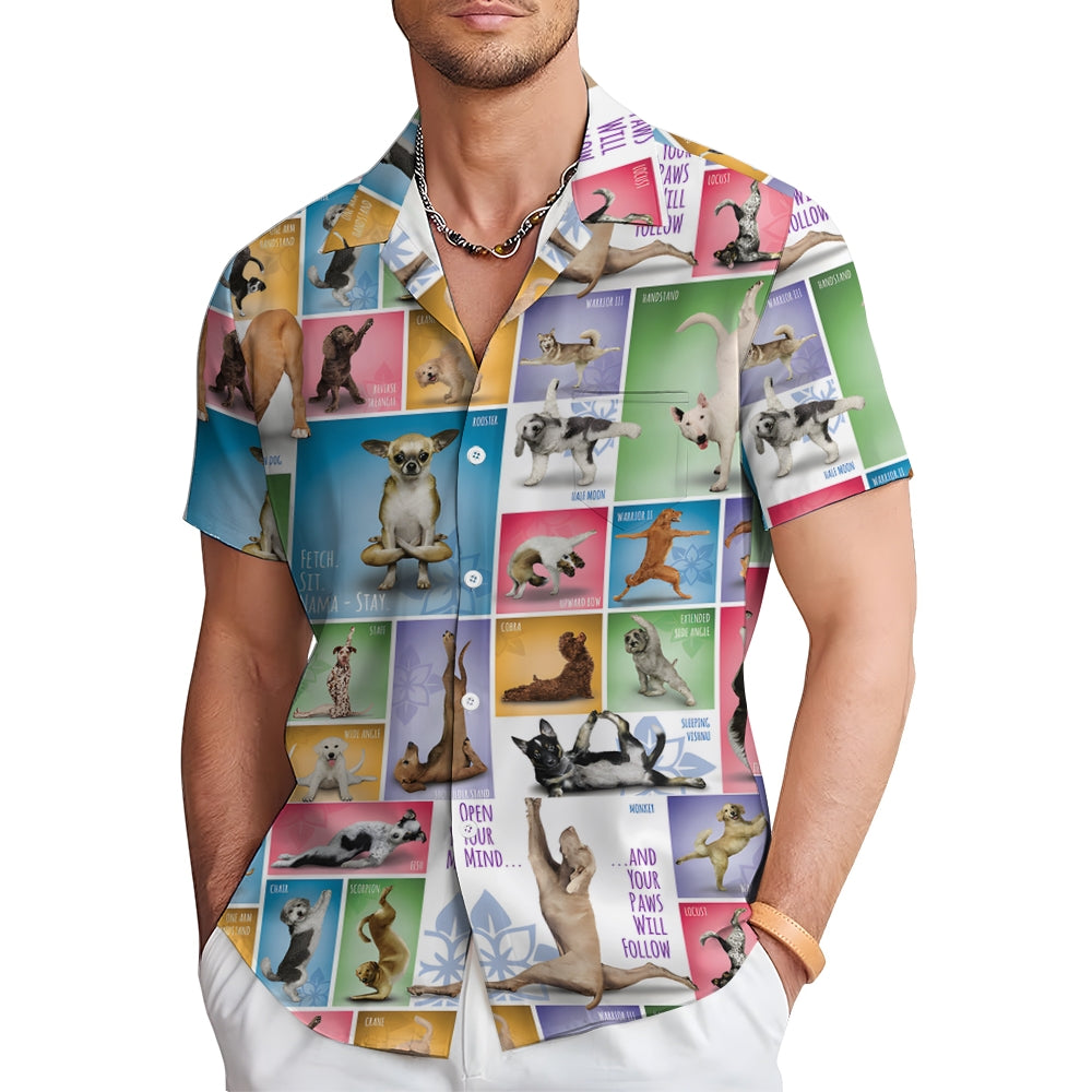 Men's yoga dog print short sleeve shirt 2408005728