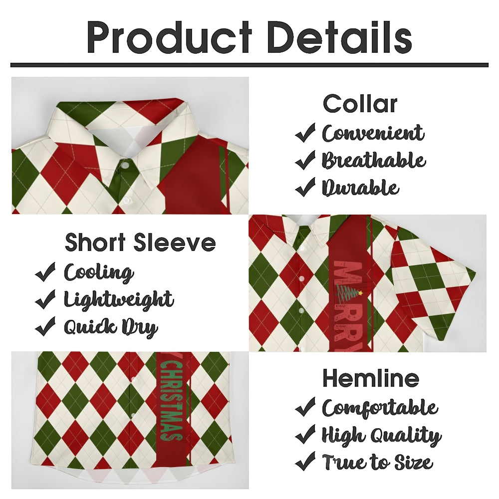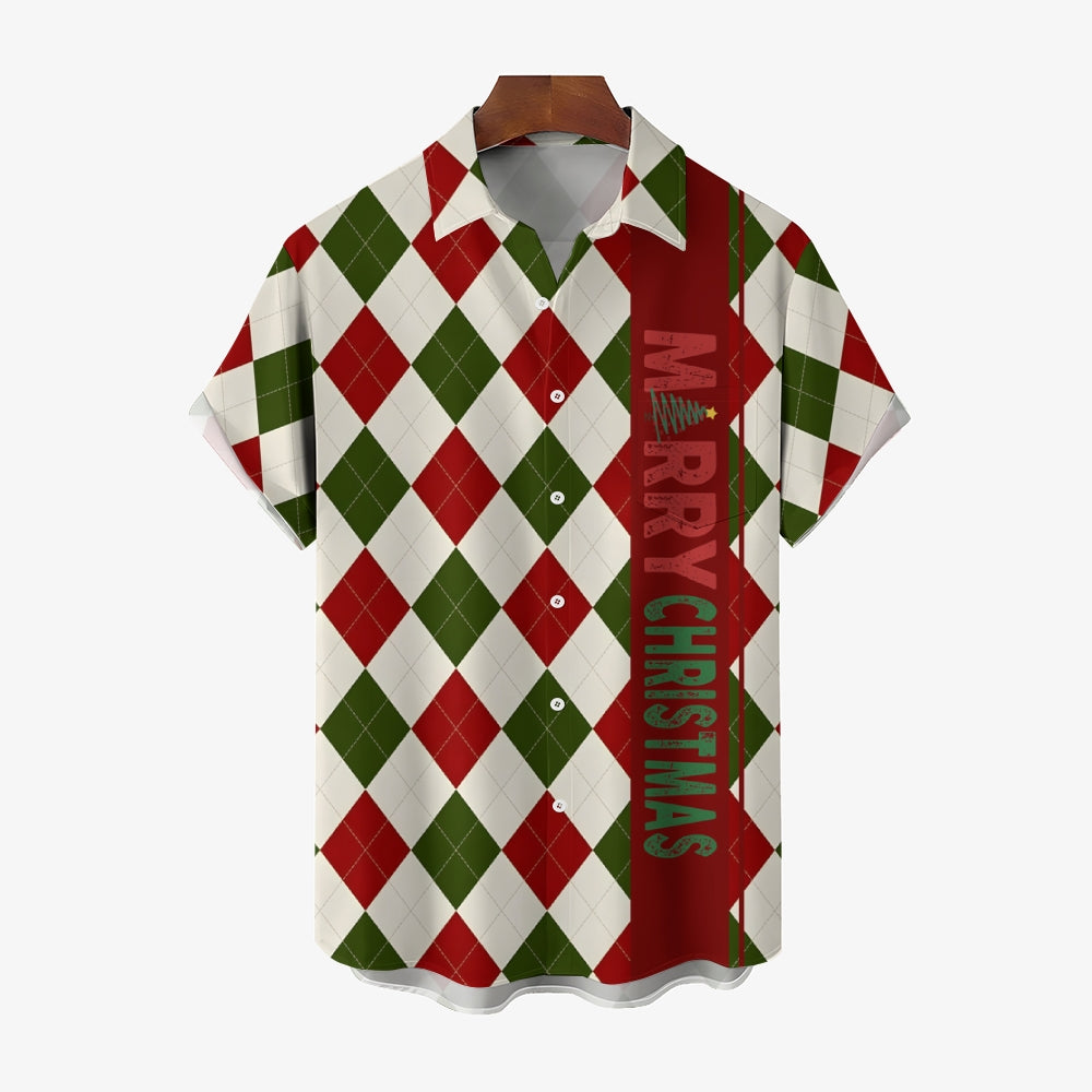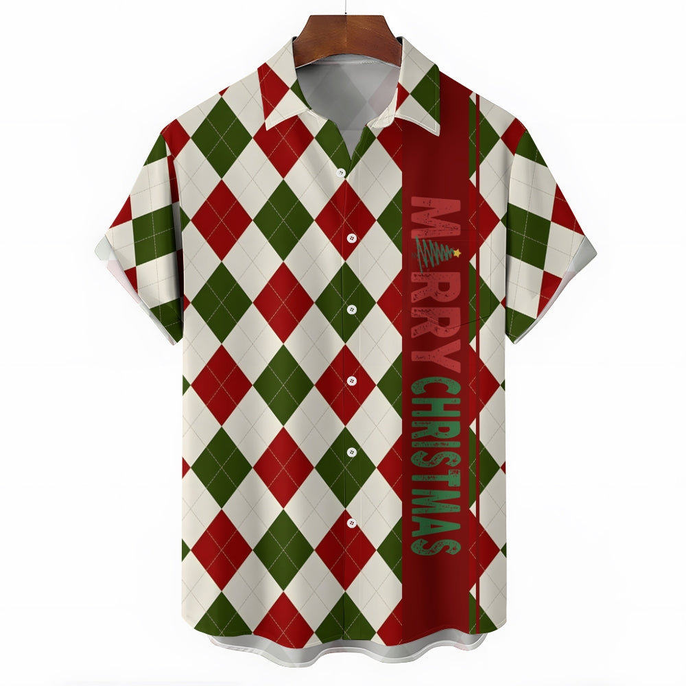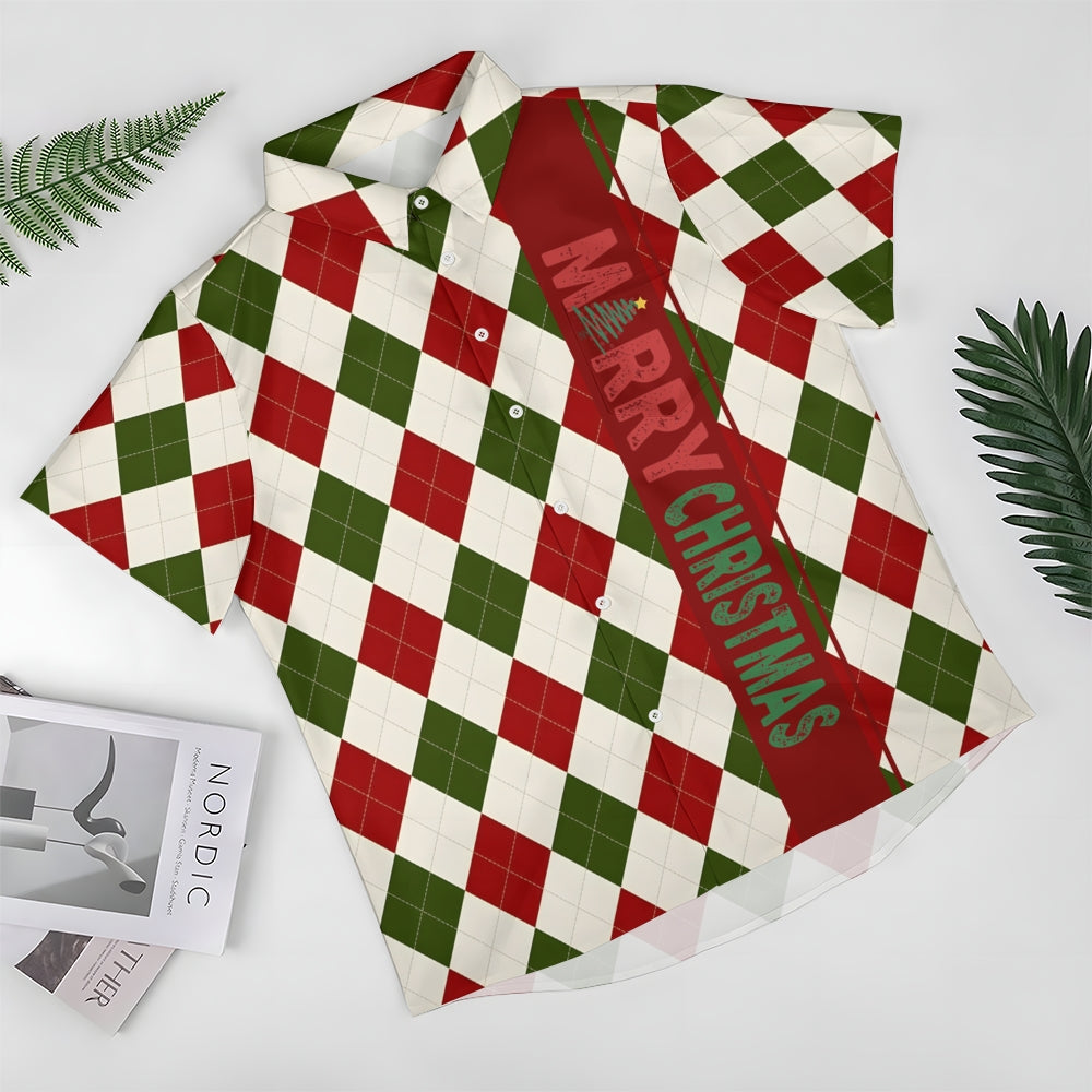 Merry Christmas Plaid Casual Large Size Short Sleeve Shirt 2410000868