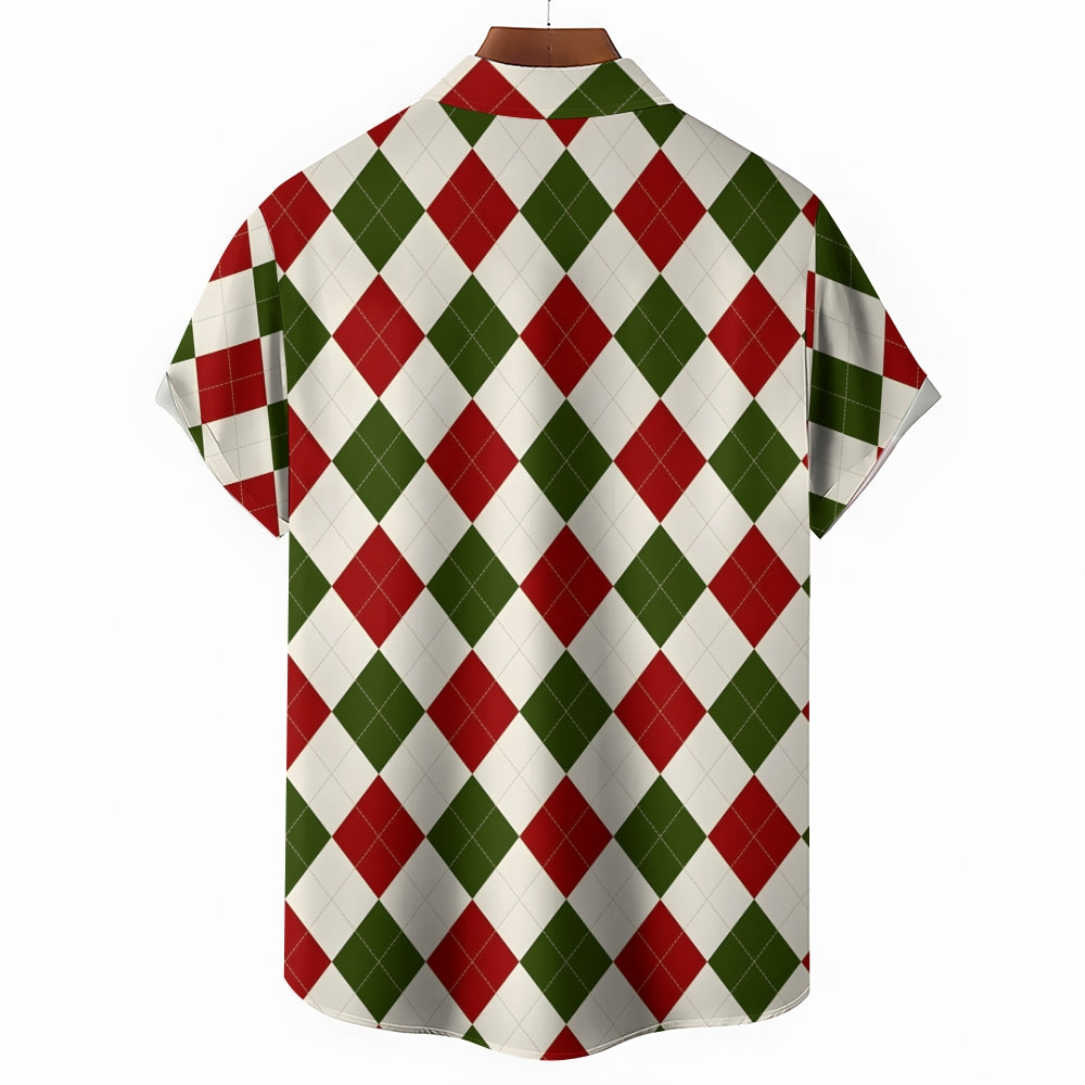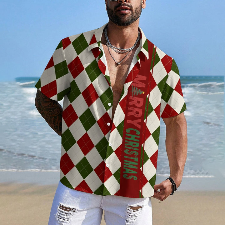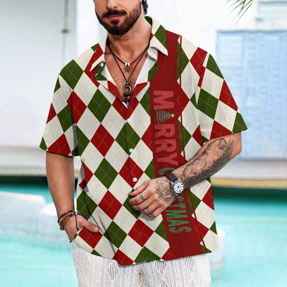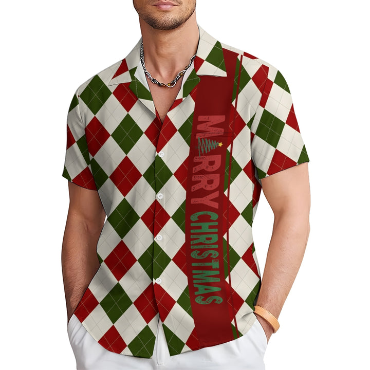 Merry Christmas Plaid Casual Large Size Short Sleeve Shirt 2410000868