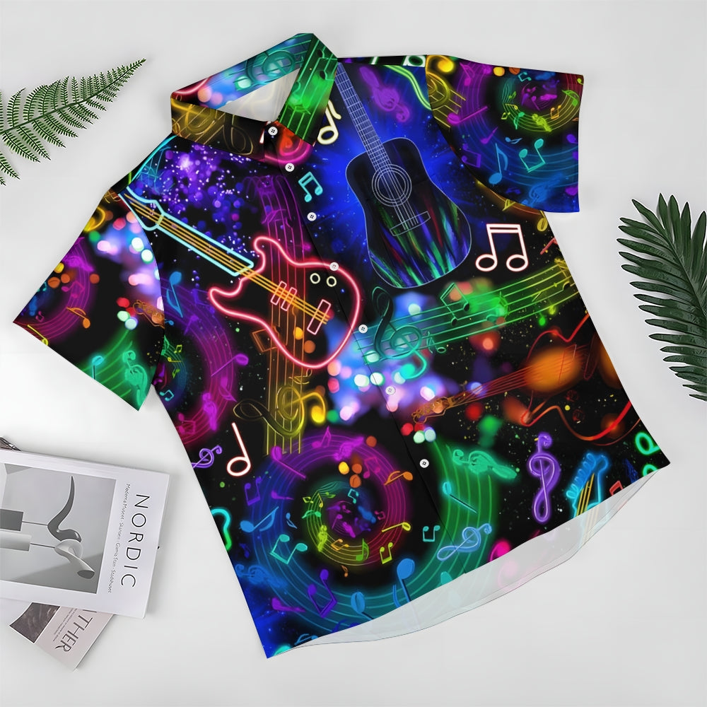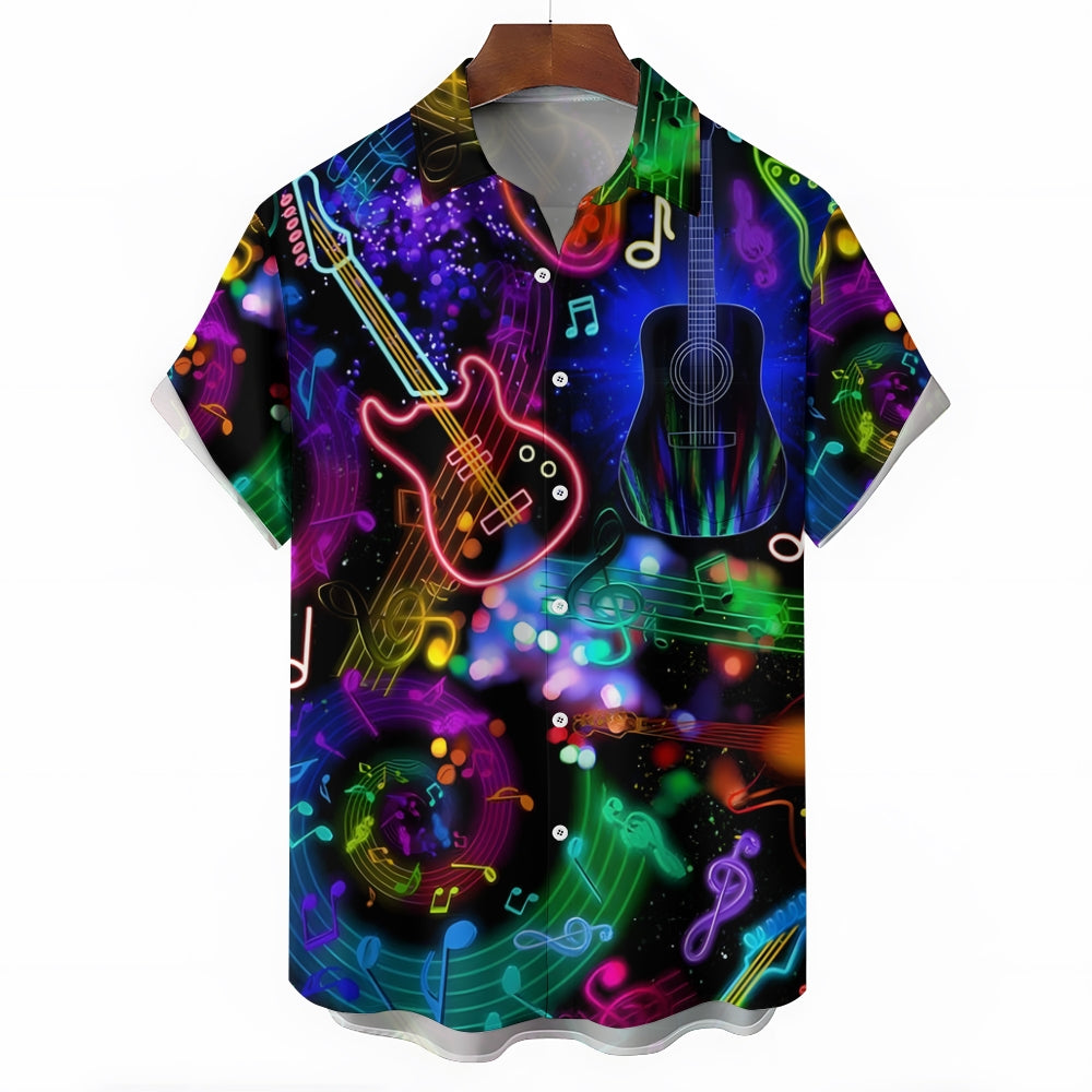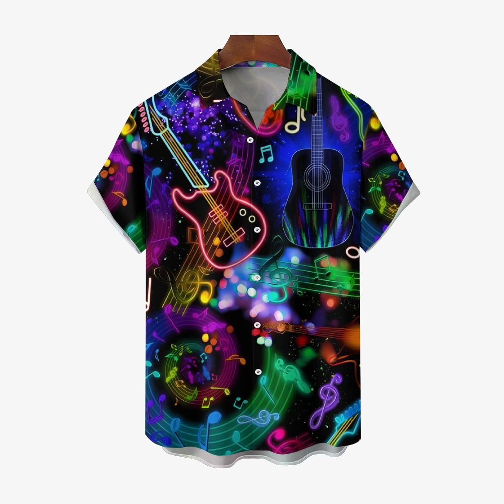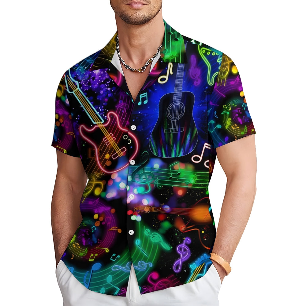 Music Guitar Note Casual Short Sleeve Shirt 2409002021