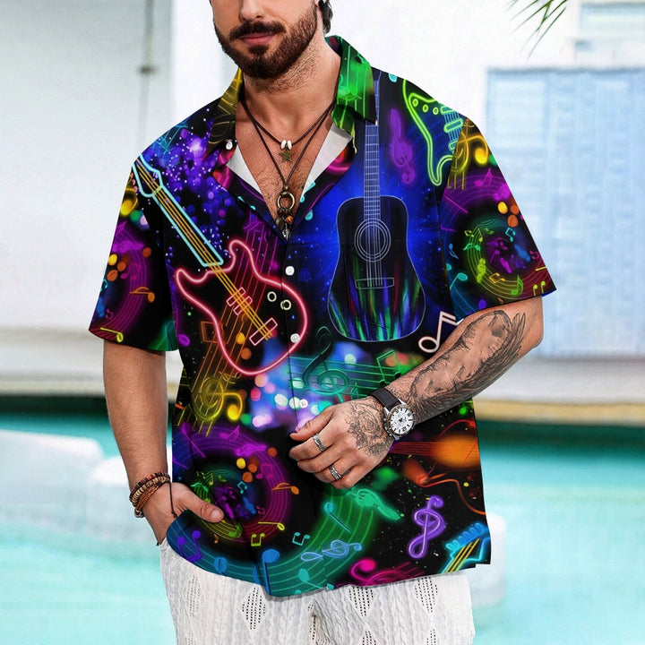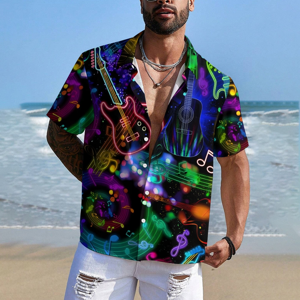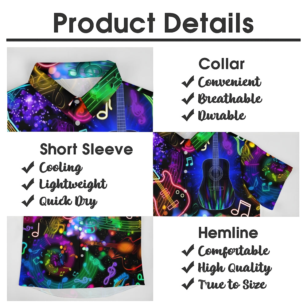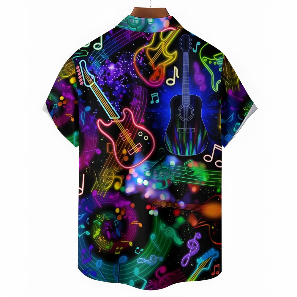 Music Guitar Note Casual Short Sleeve Shirt 2409002021
