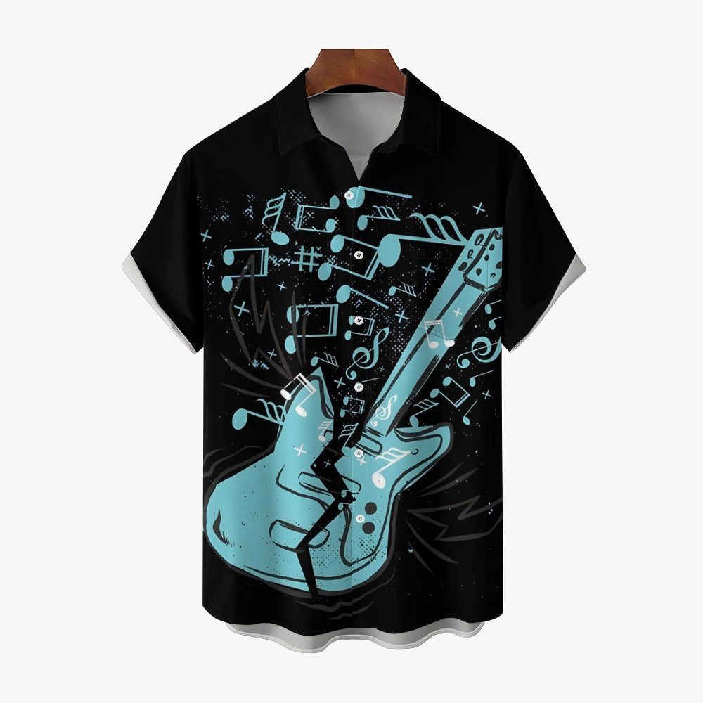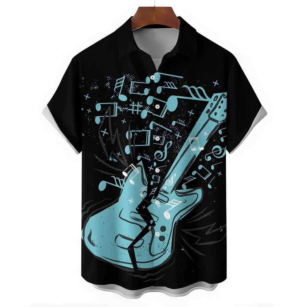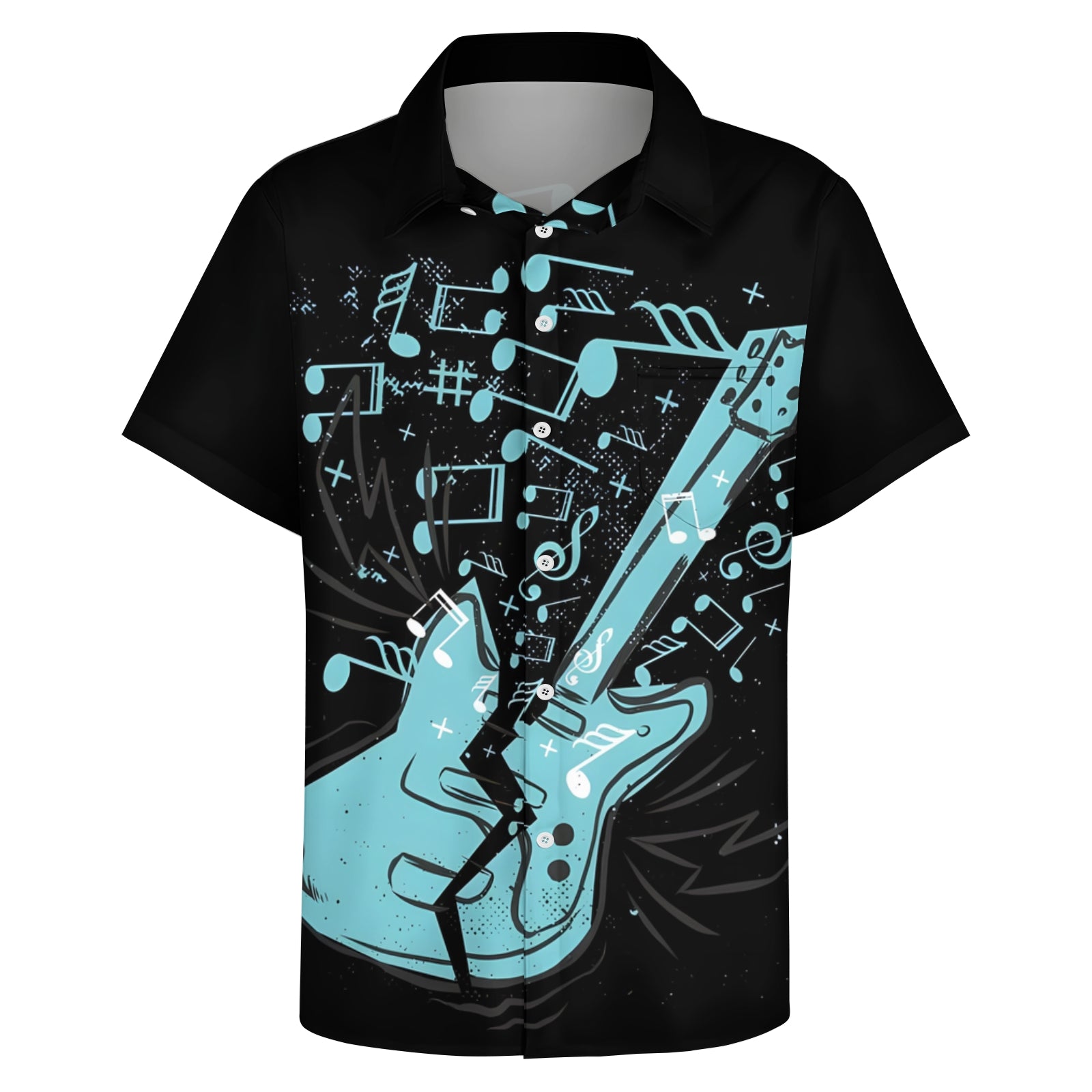 Music Guitar Print Men's Casual Short Sleeve Shirt 2403000227