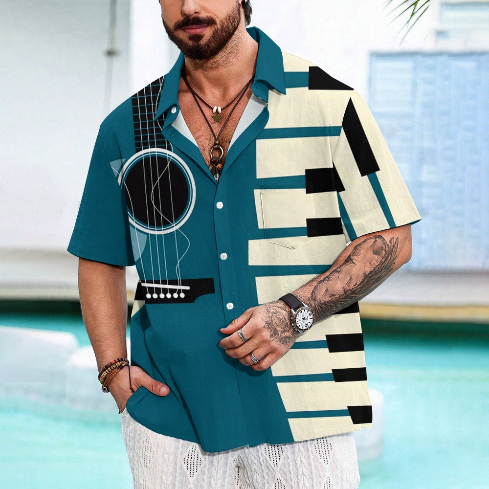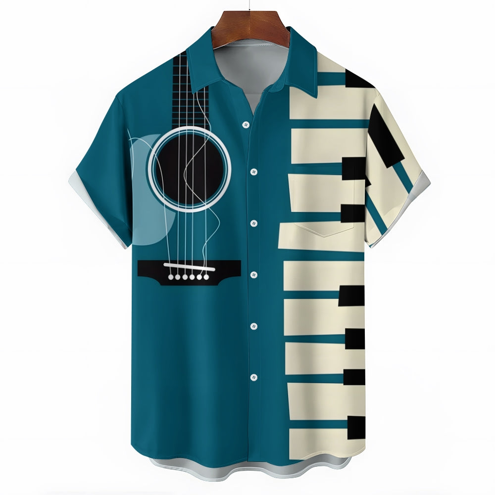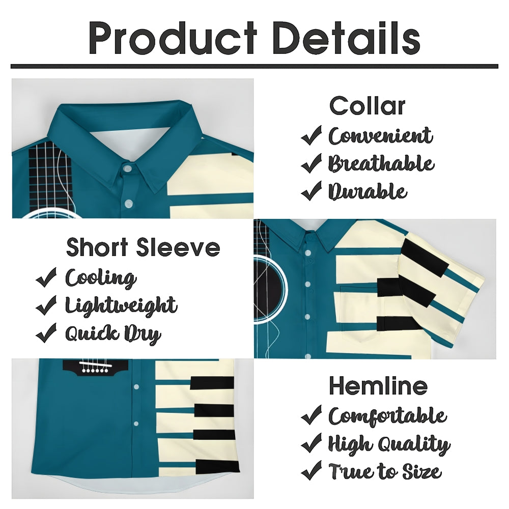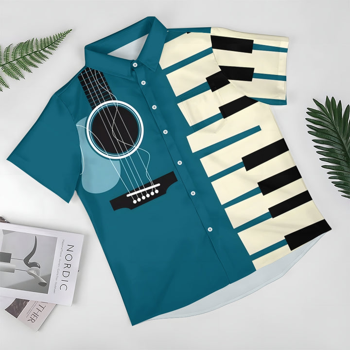 Music Piano Guitar Casual Large Size Short Sleeve Shirt 2407002075