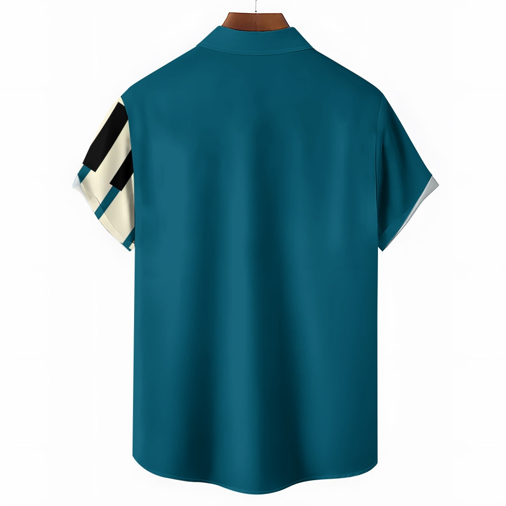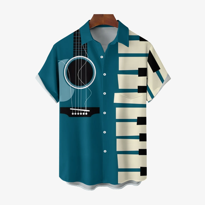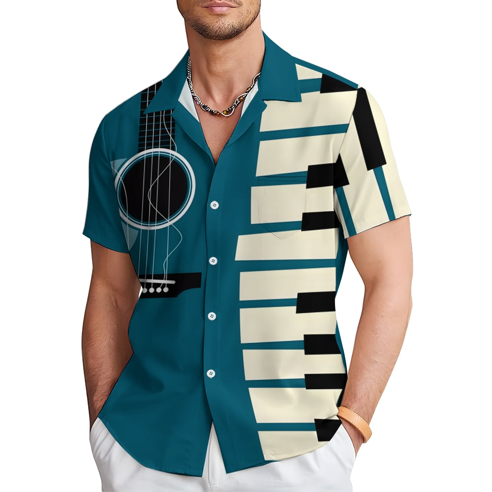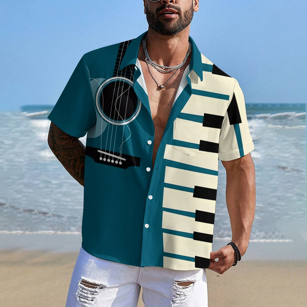 Music Piano Guitar Casual Large Size Short Sleeve Shirt 2407002075