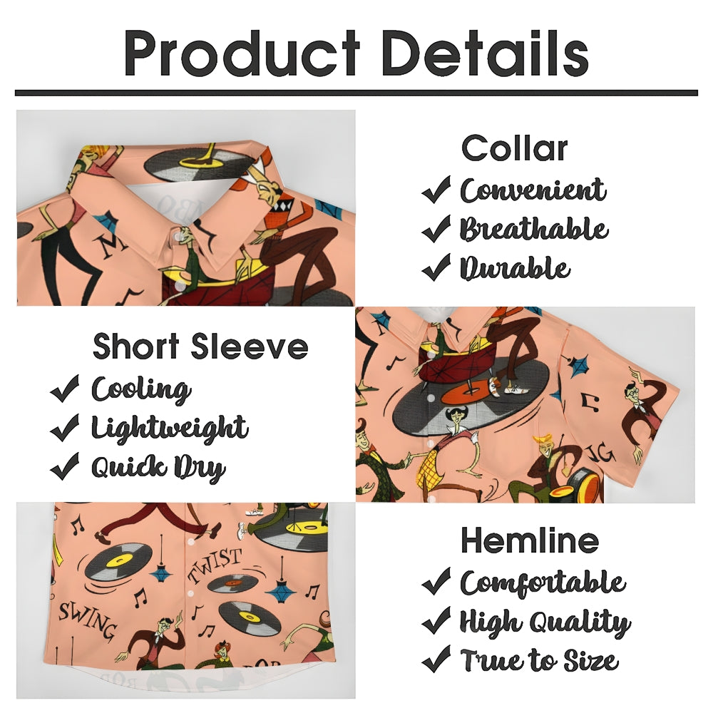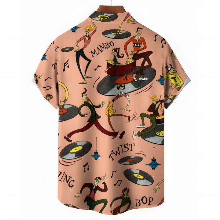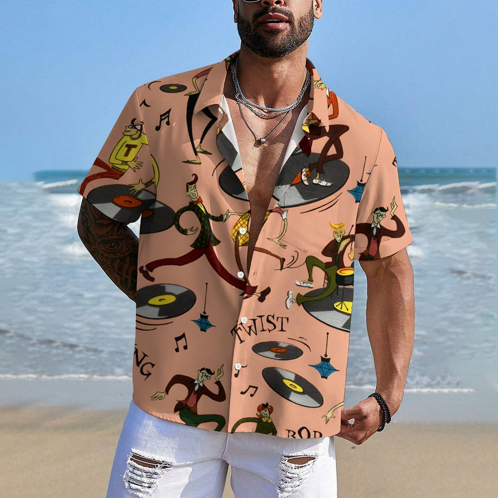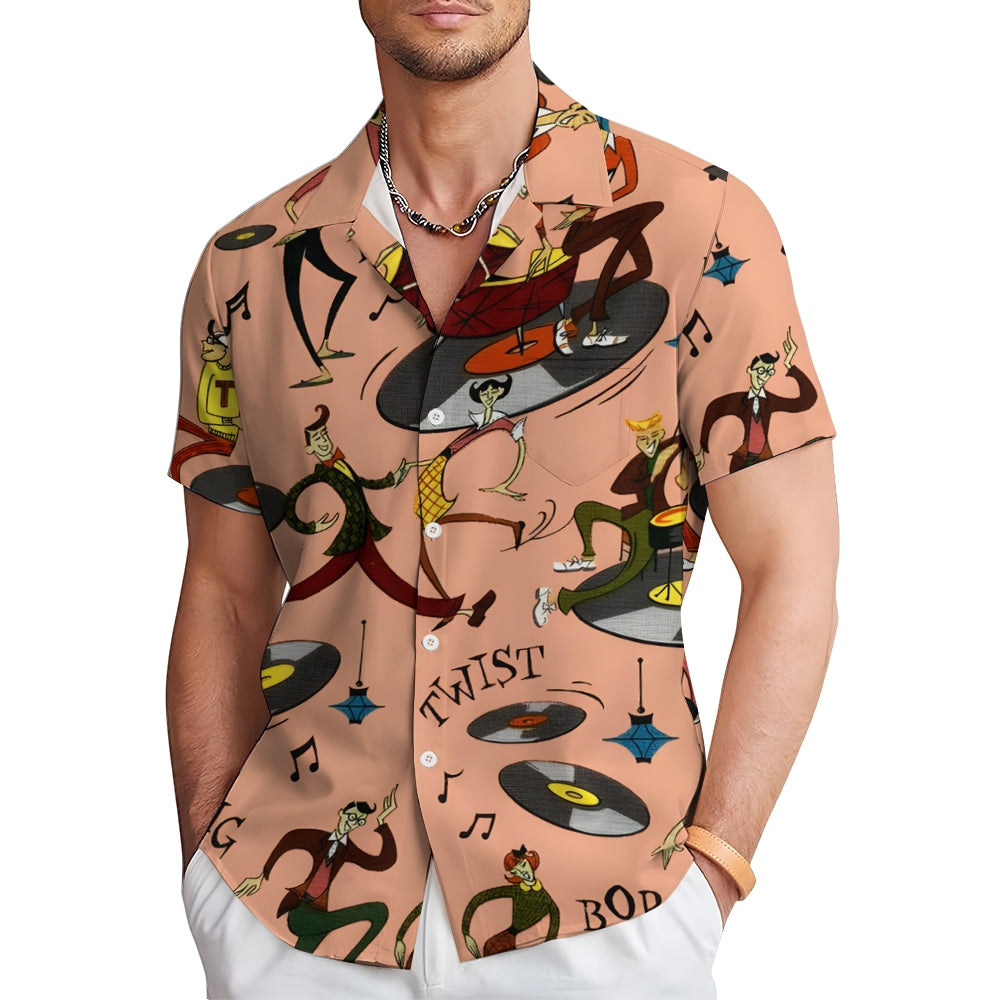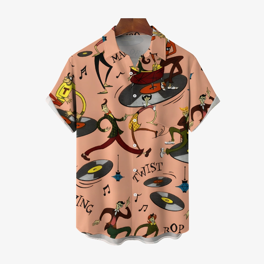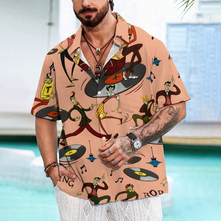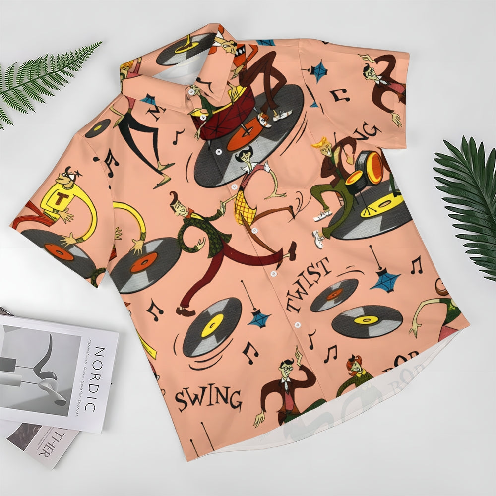 Music Vinyl Record Cartoon Linen Short-Sleeved Shirt 2409010076