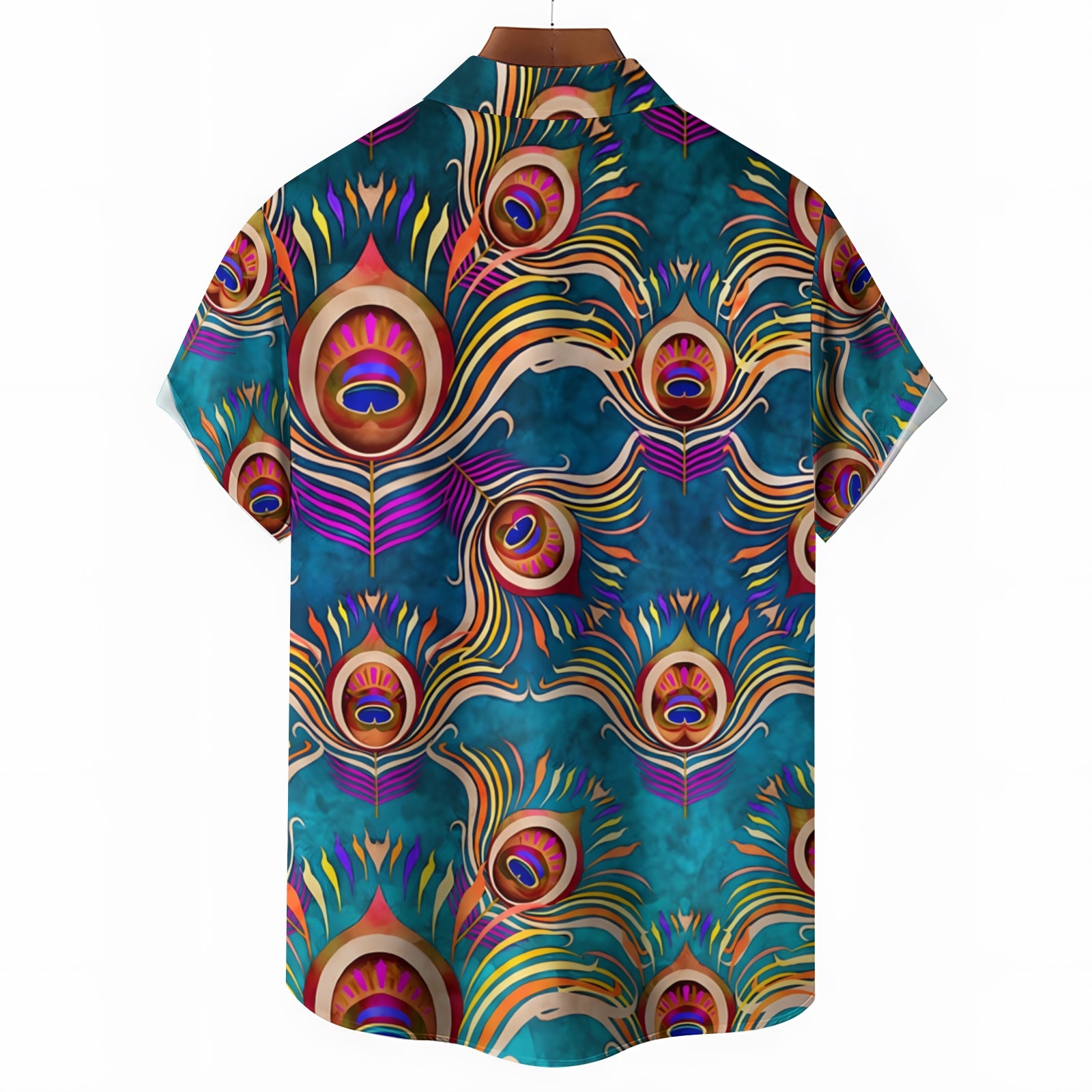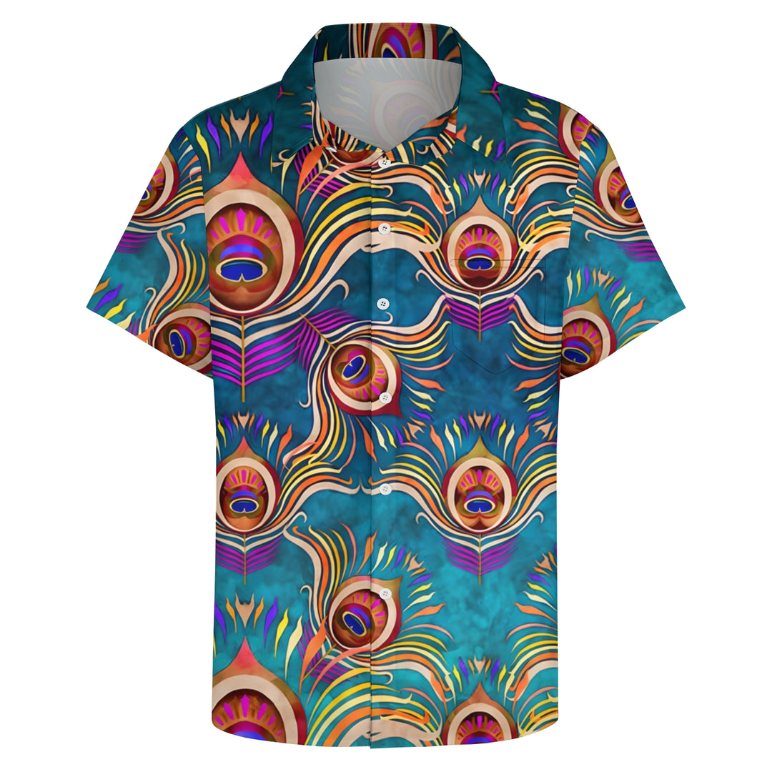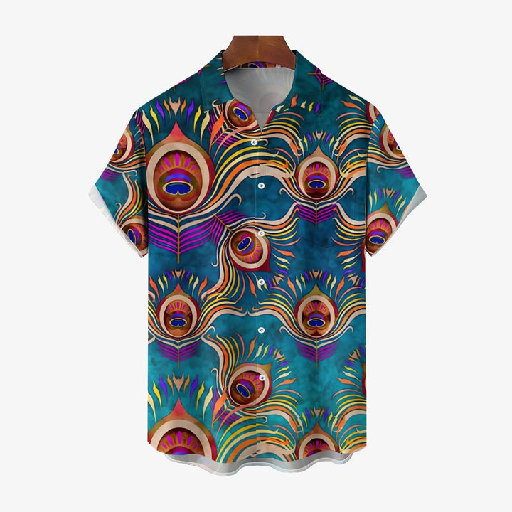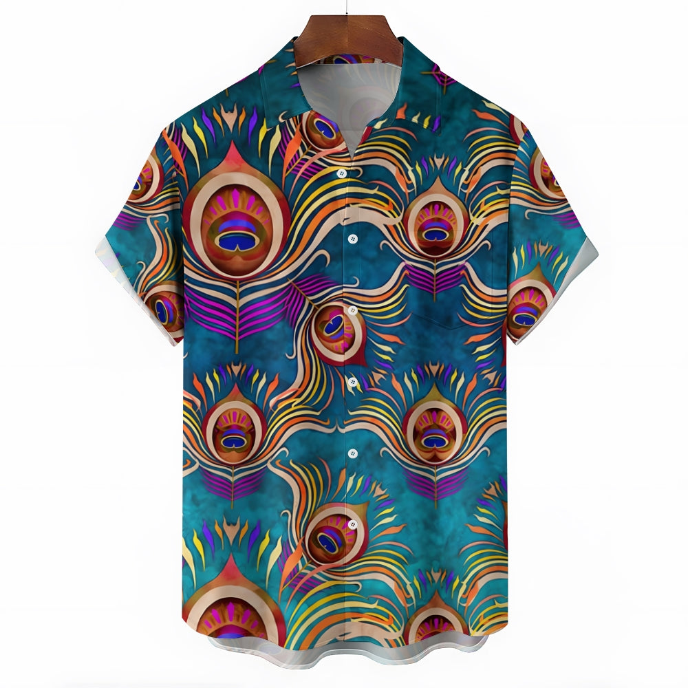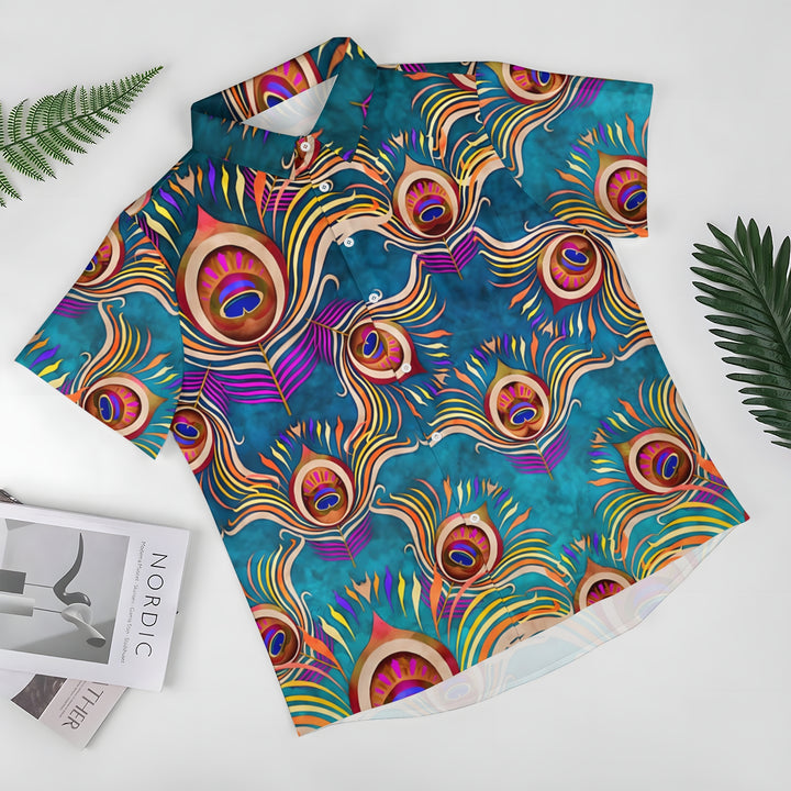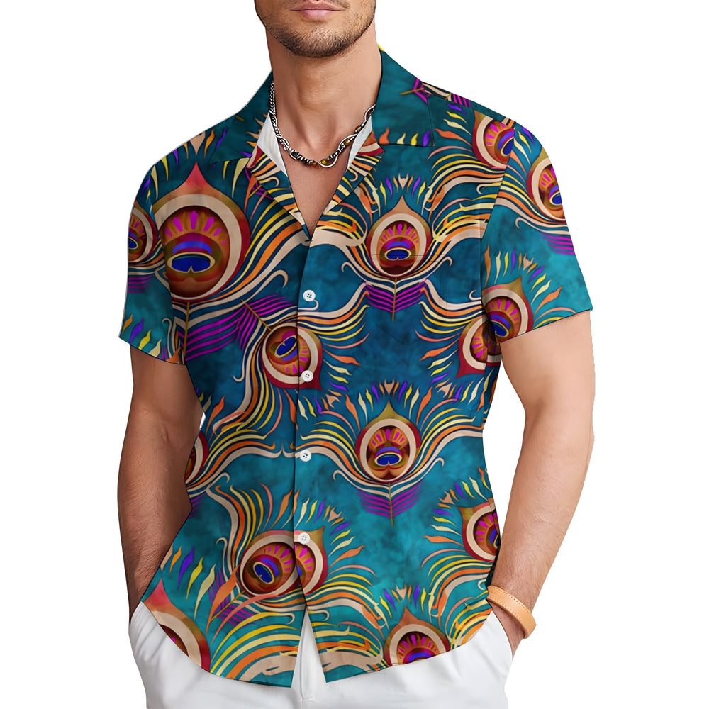 Peacock Feather Art Print Casual Short Sleeve Shirt 2403000910