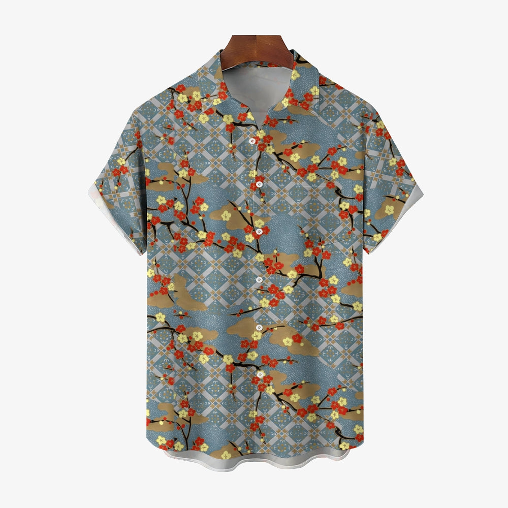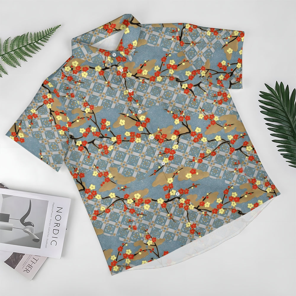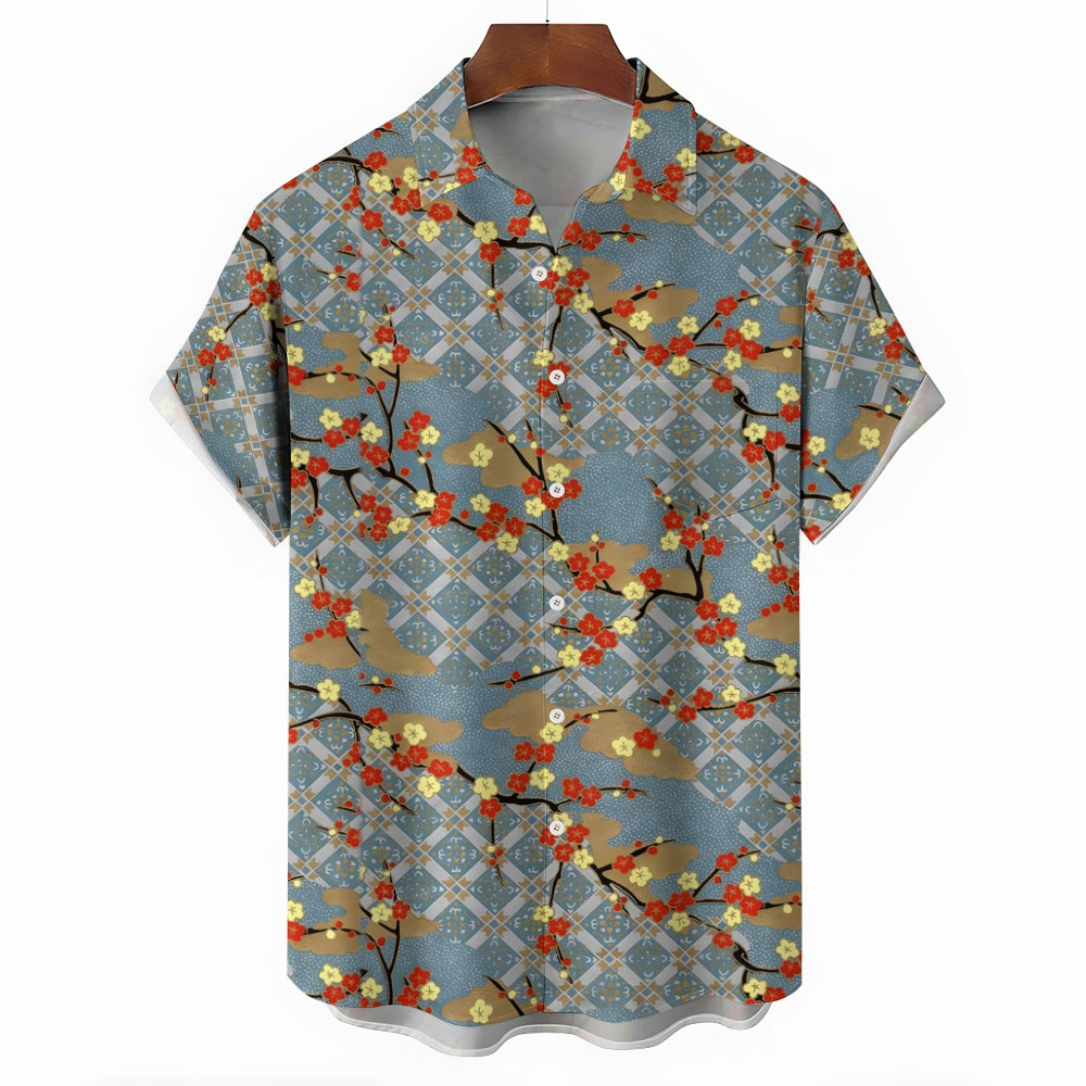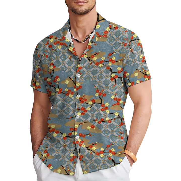 Plum Blossom Geometric Print Casual Oversized Short Sleeve Shirt 2407003506