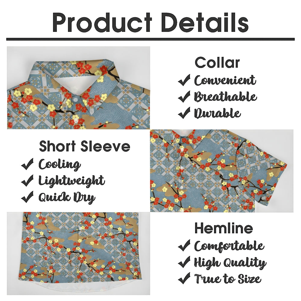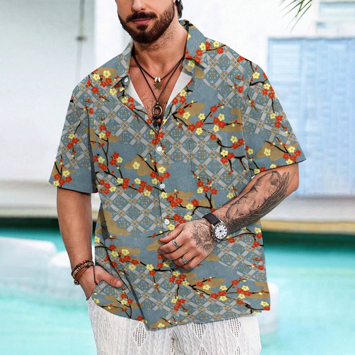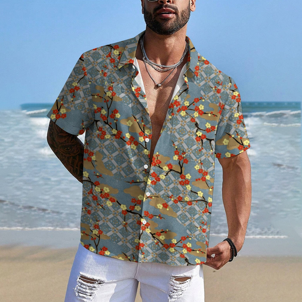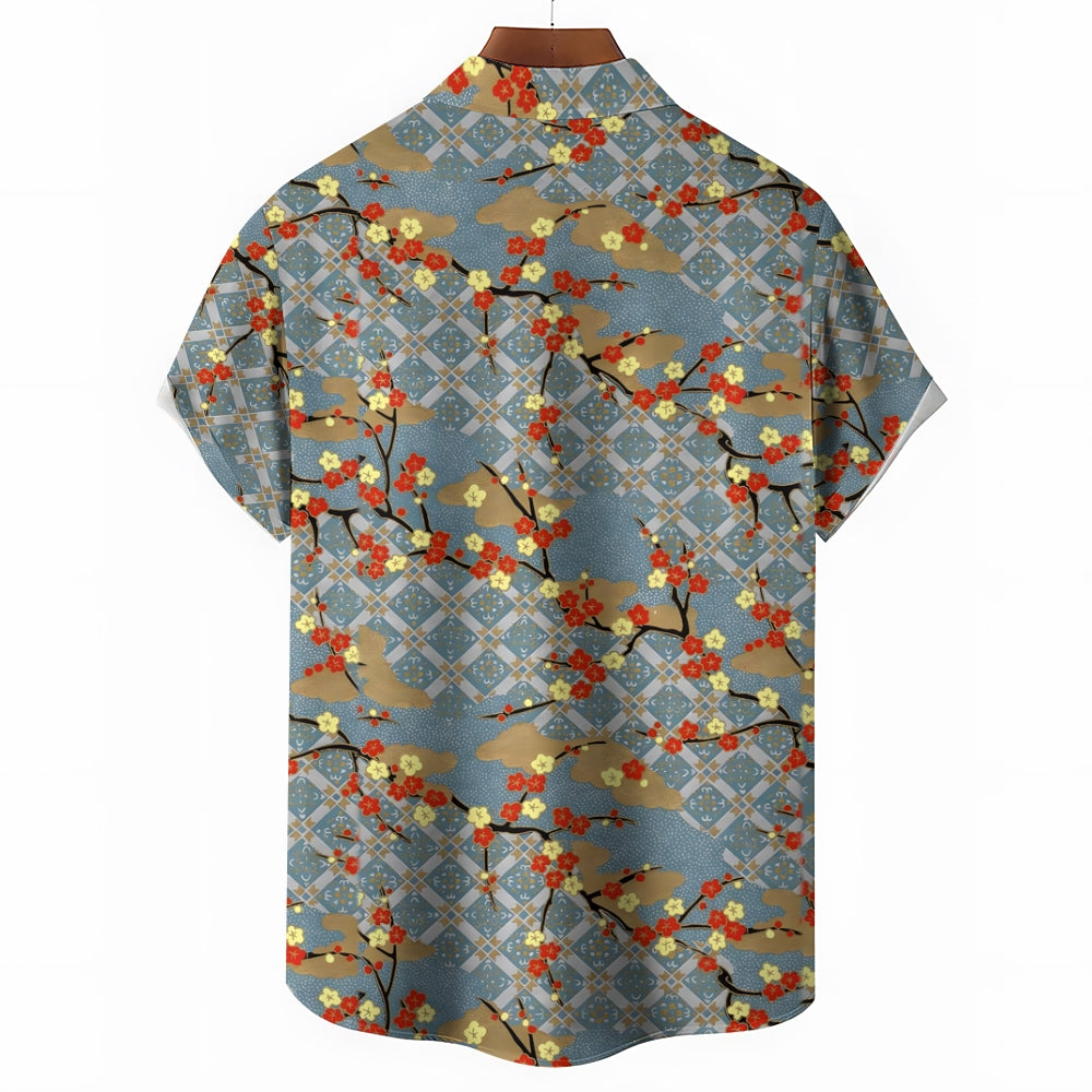 Plum Blossom Geometric Print Casual Oversized Short Sleeve Shirt 2407003506