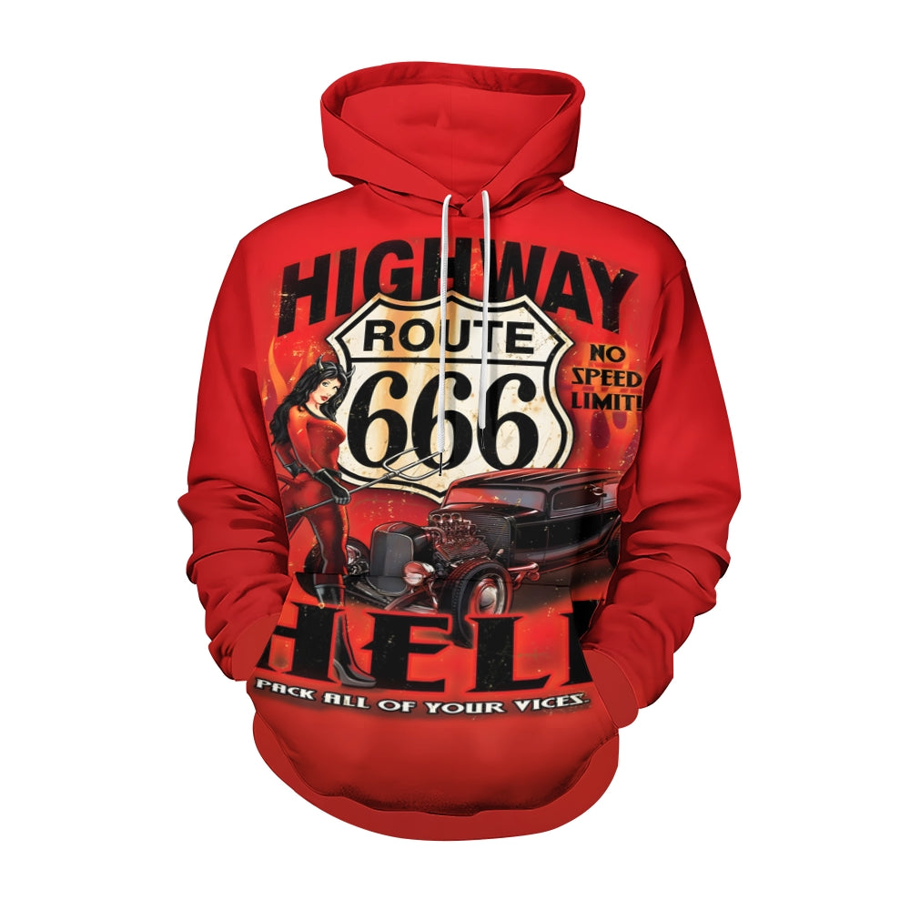Plus Size Vintage Car & Demon Beauty Graphic Hoodie 2408002195
