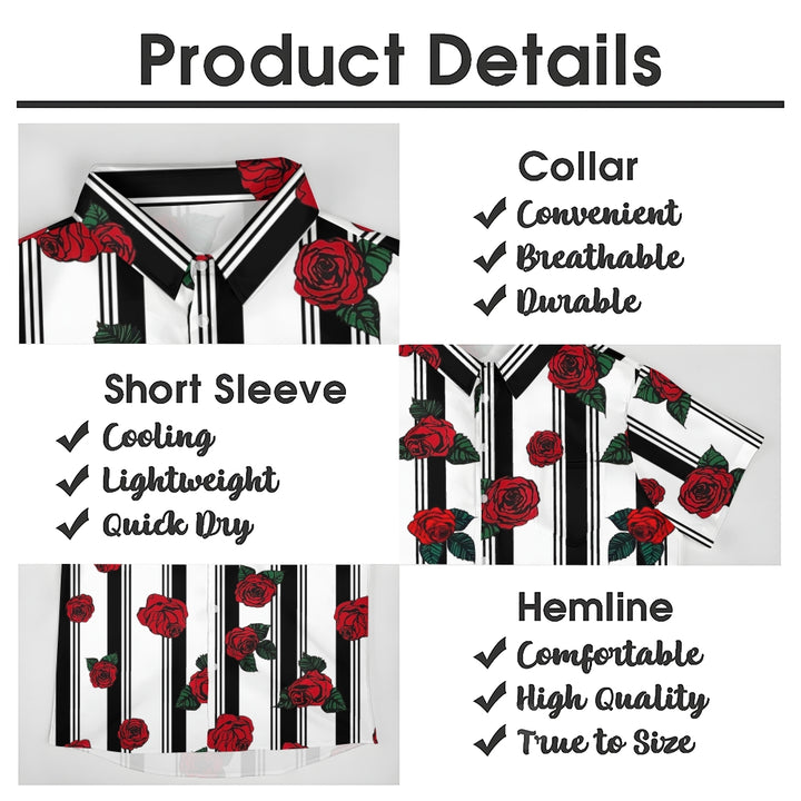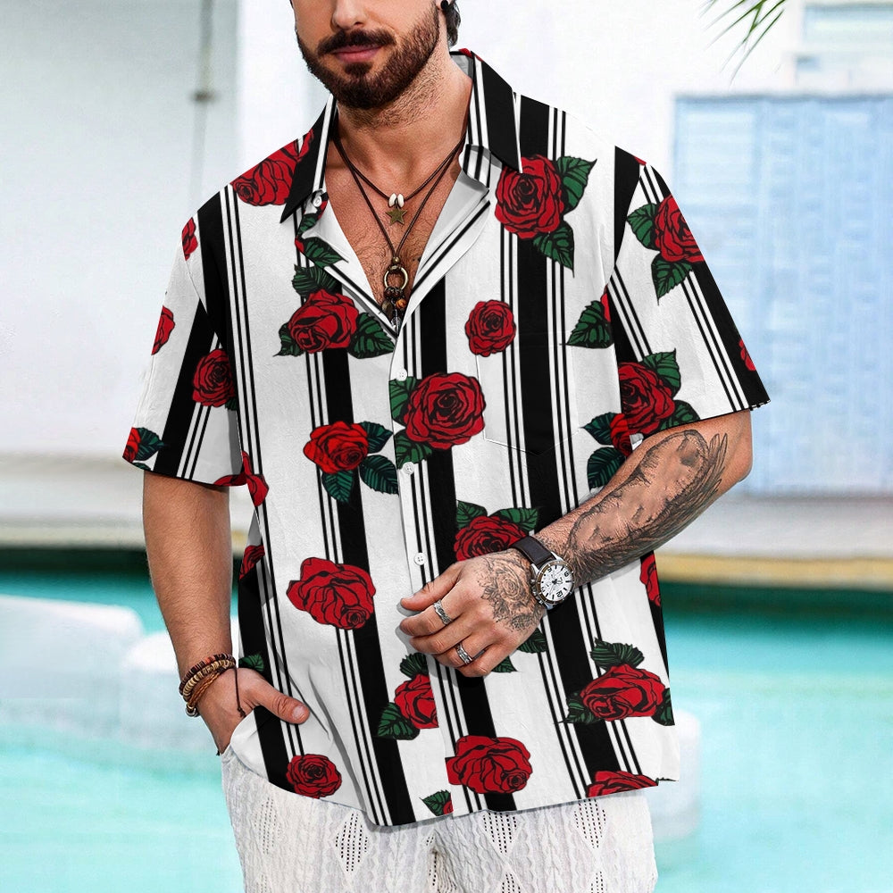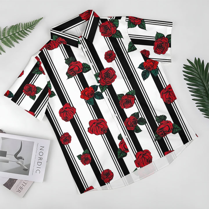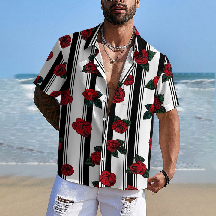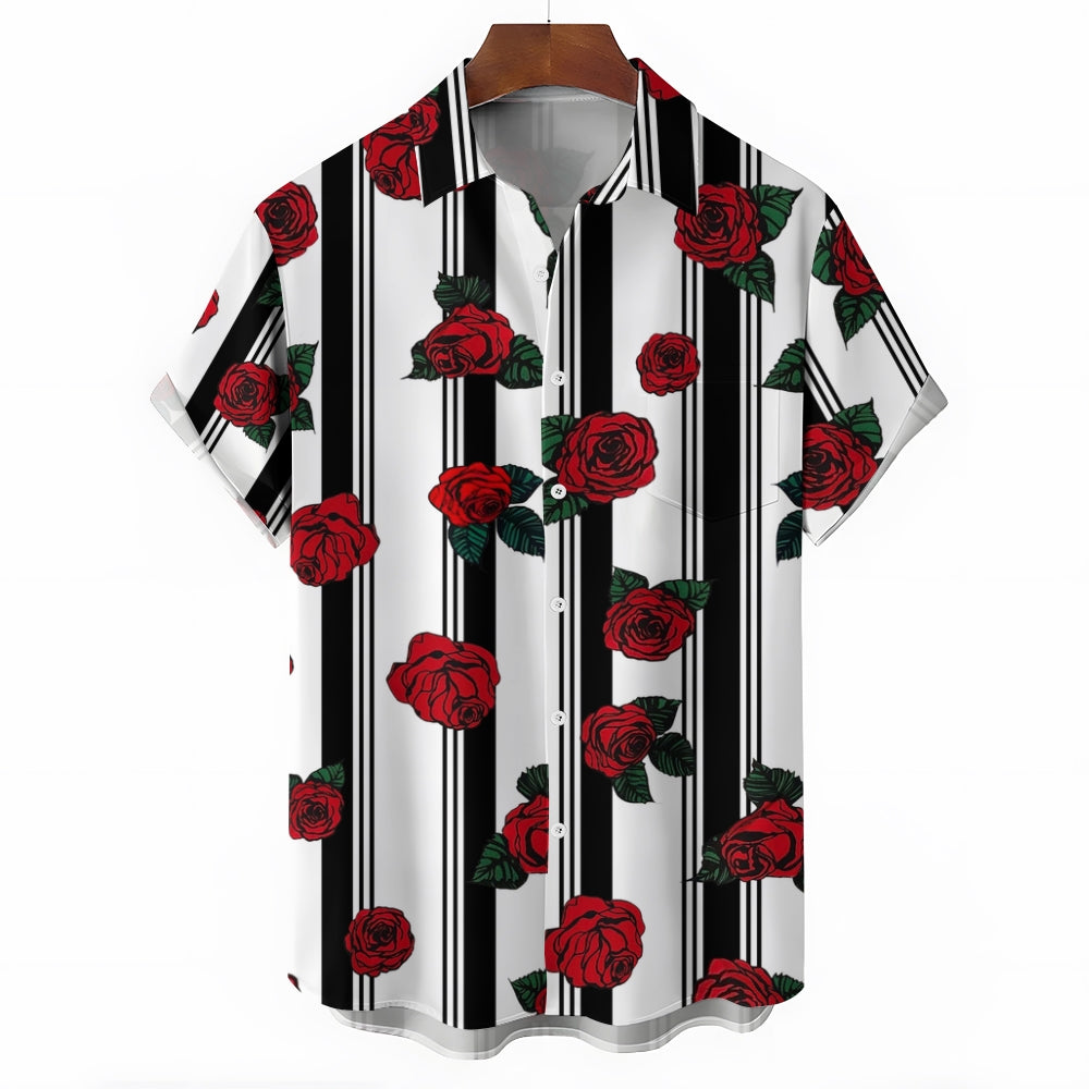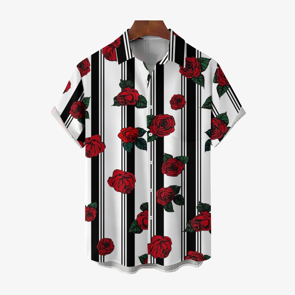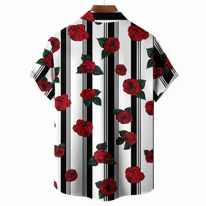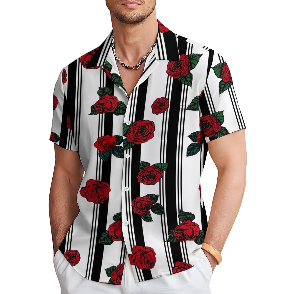 Men's Striped Rose Print Short Sleeves Shirt 2407002317