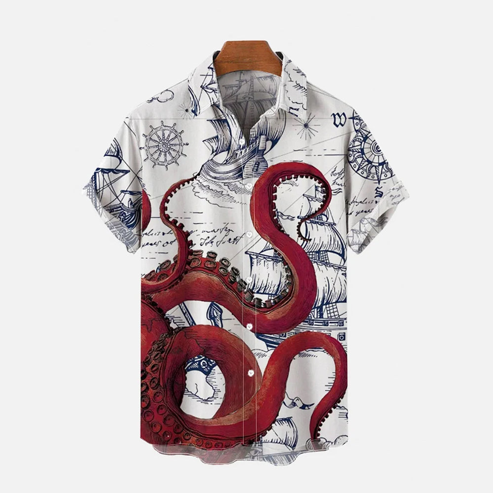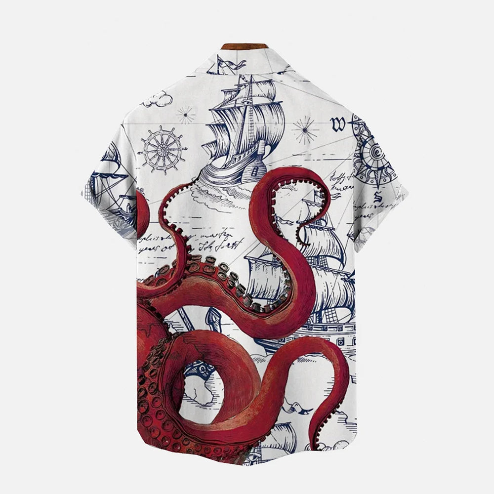 Vintage Casual Octopus Nautical Print Short Sleeve Shirt