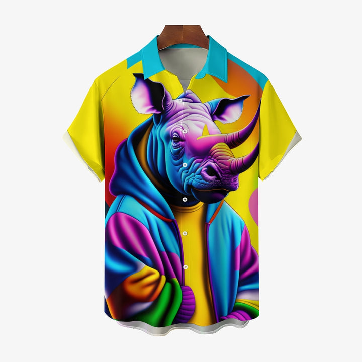 Men's Fashion Rhino Animal Short Sleeve Hawaiian Shirt 2306101370