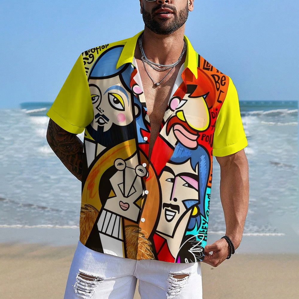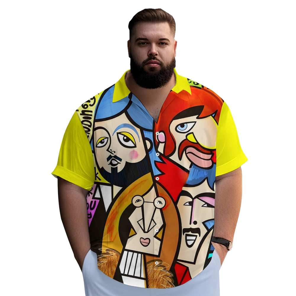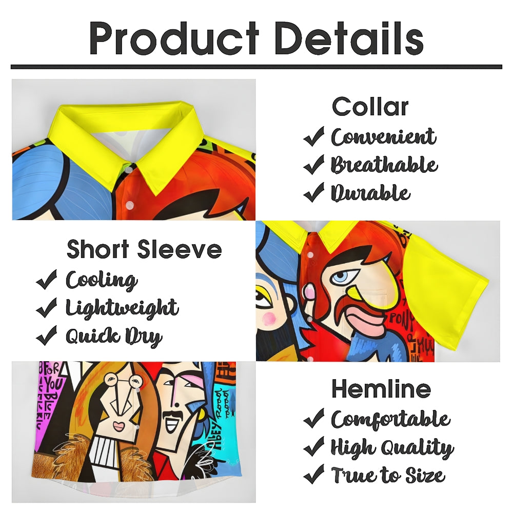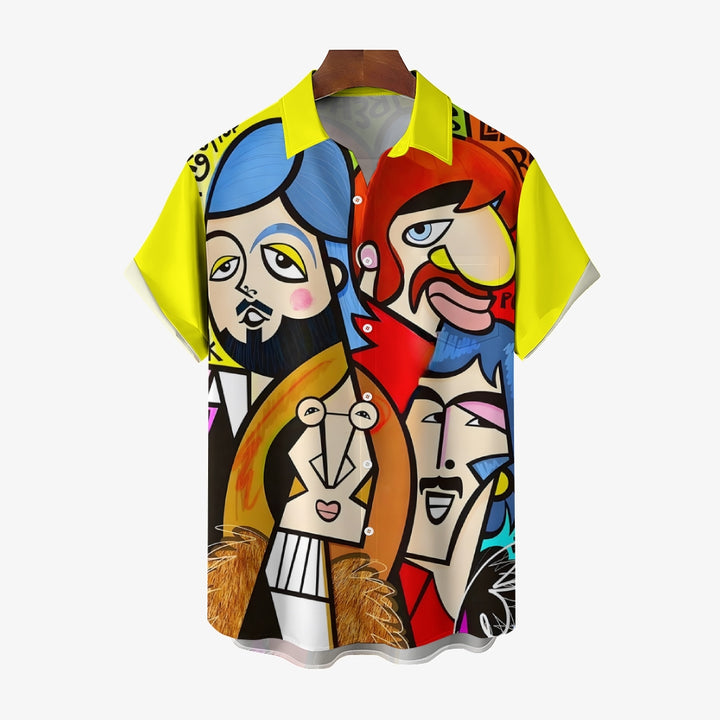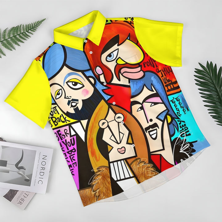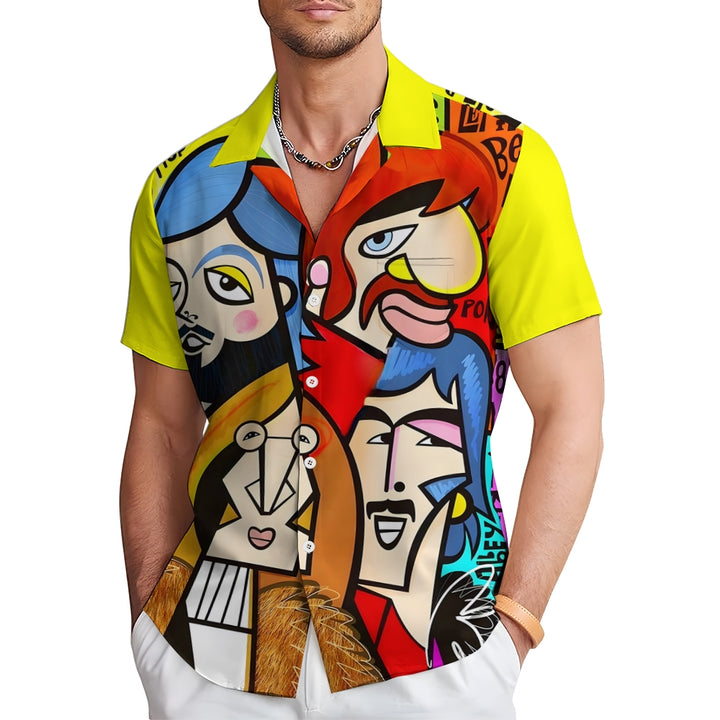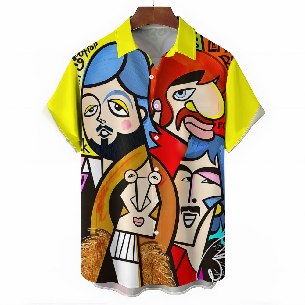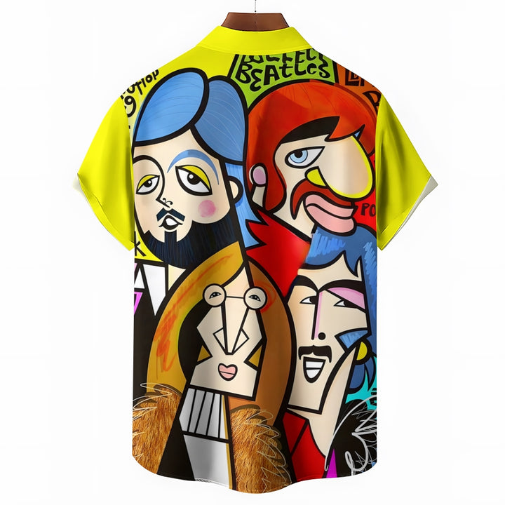 Rock Band Abstract Art Print Casual Short Sleeve Shirt 2403000908