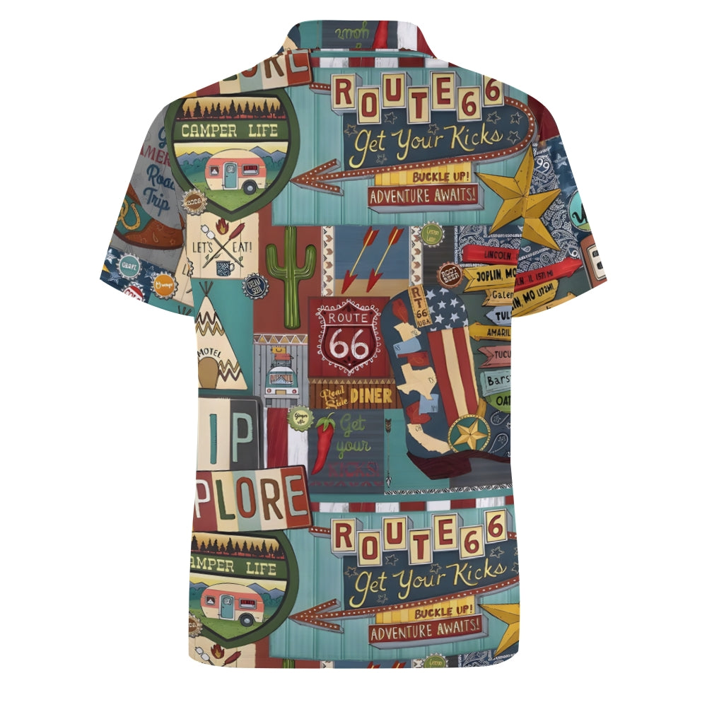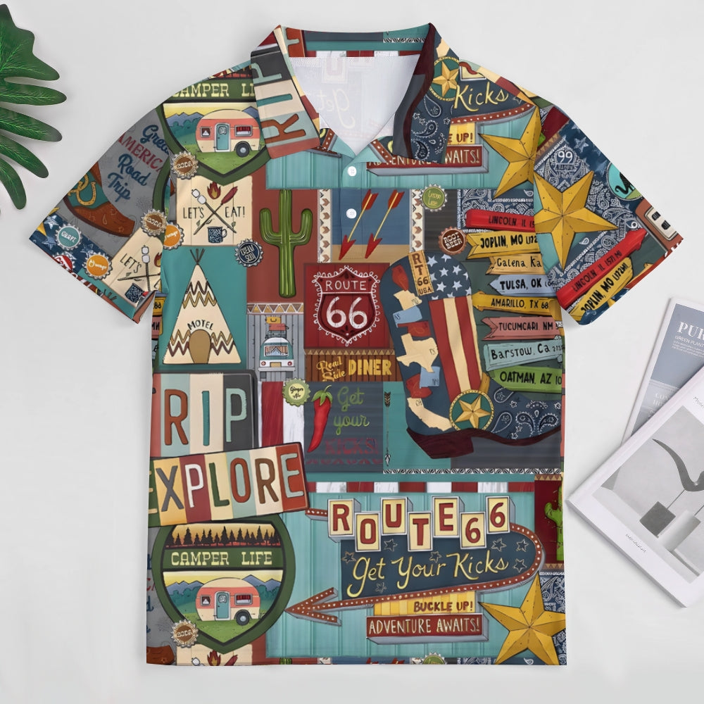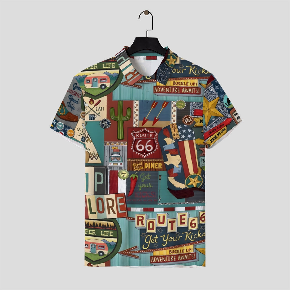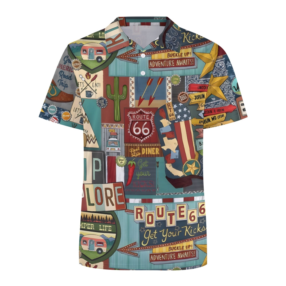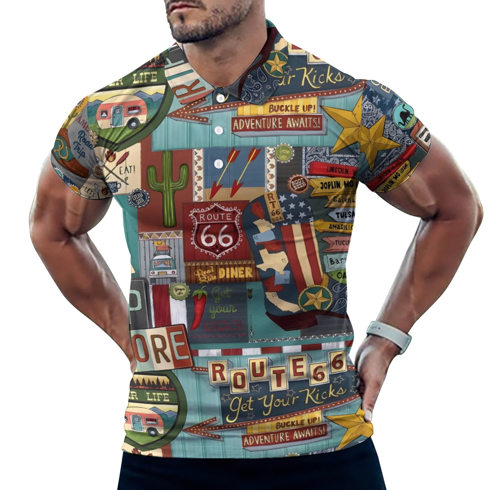Route 66 Letter Print Pattern Fashion Short Sleeve Polo 2404001478