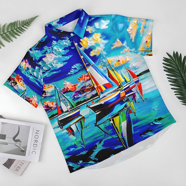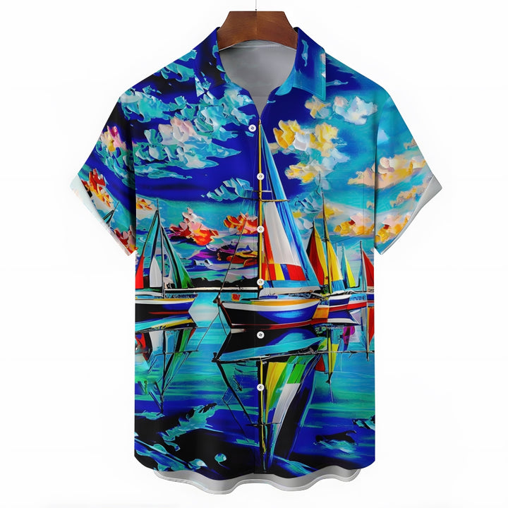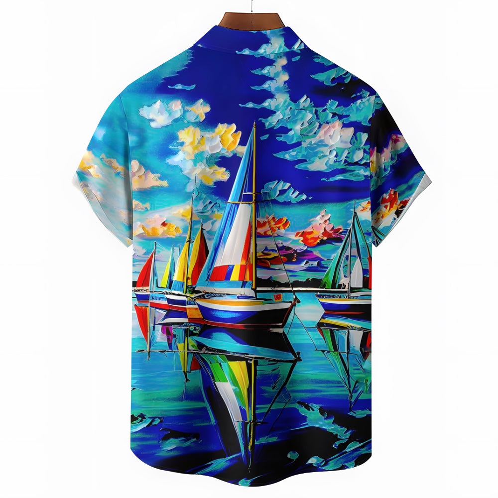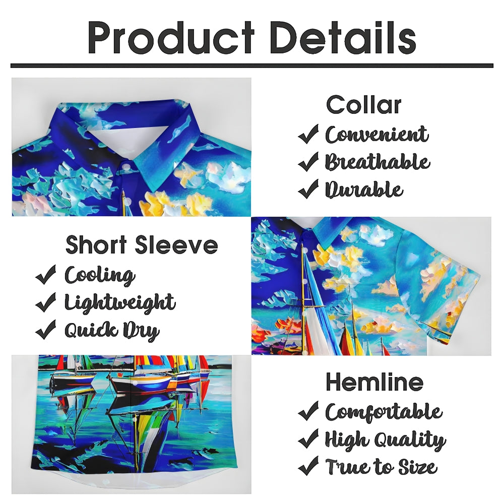 Sailboat Oil Painting Art Print Short Sleeve Shirt 2408007001