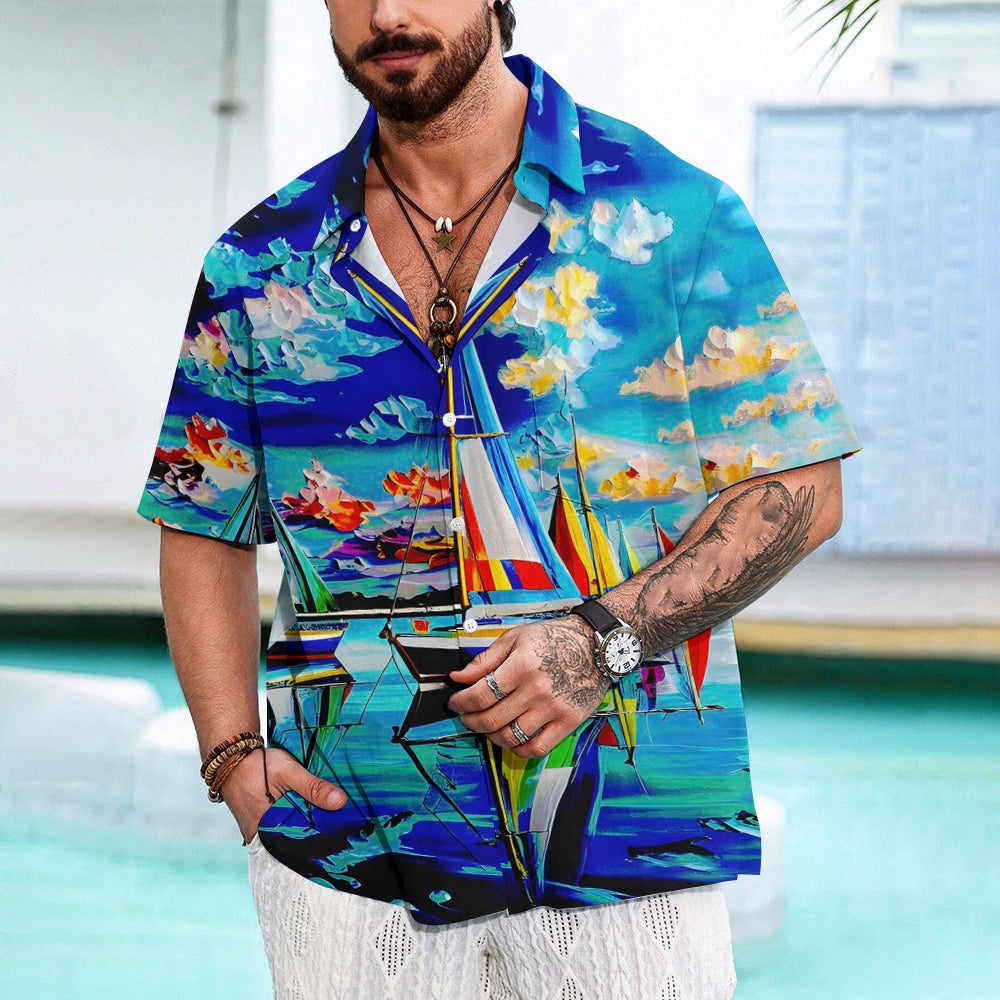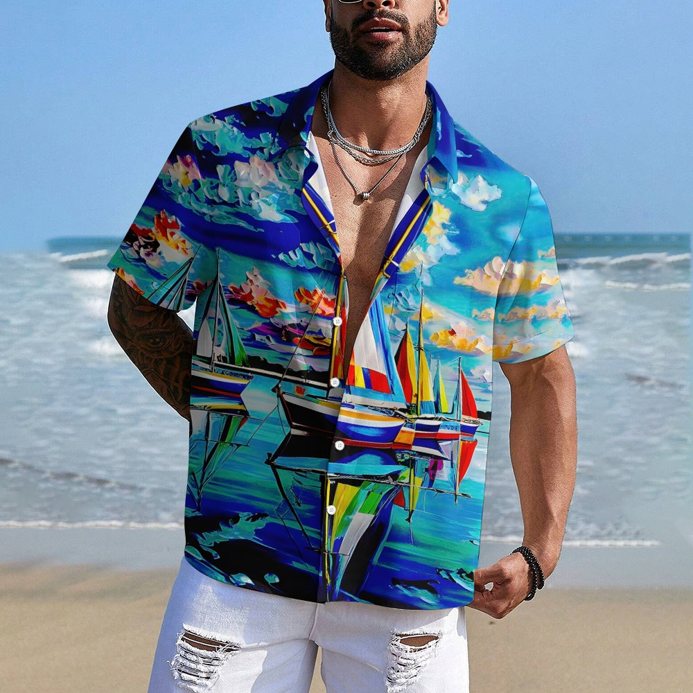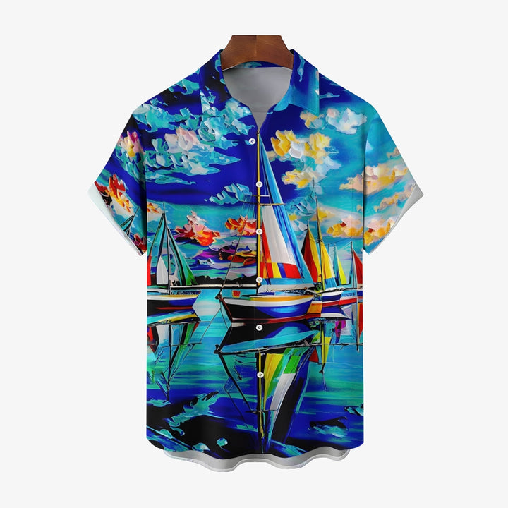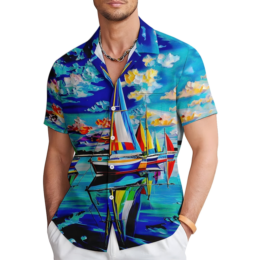 Sailboat Oil Painting Art Print Short Sleeve Shirt 2408007001