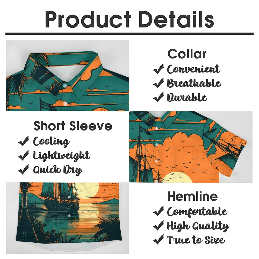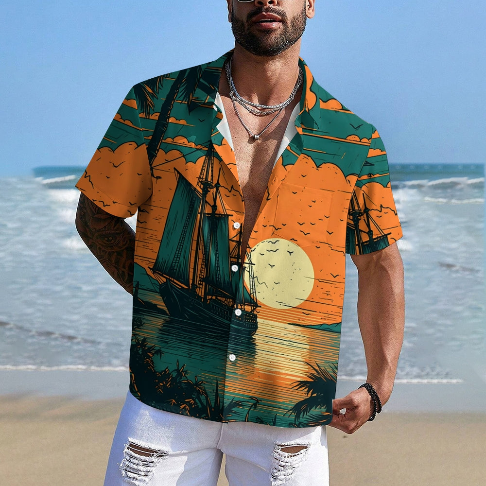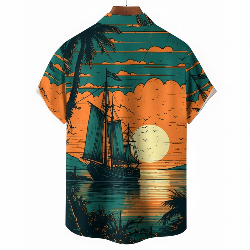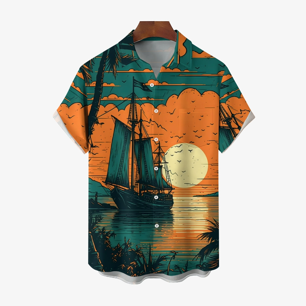 Sailing Boat On Sea Casual Short Sleeve Shirt 2405000681