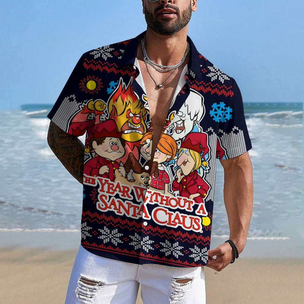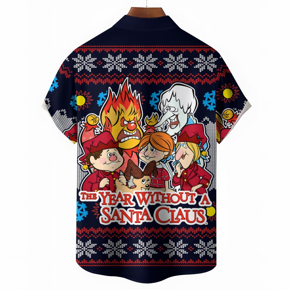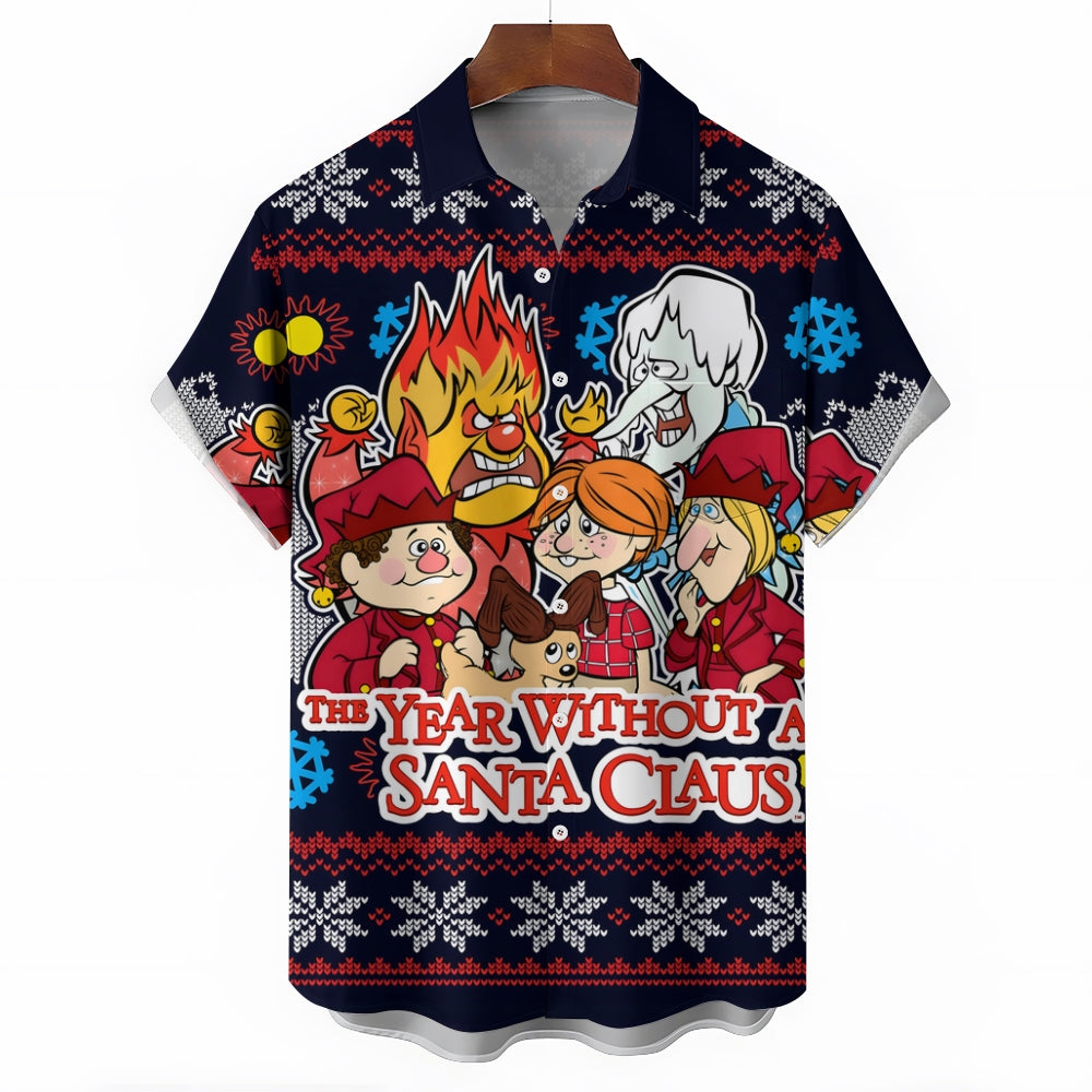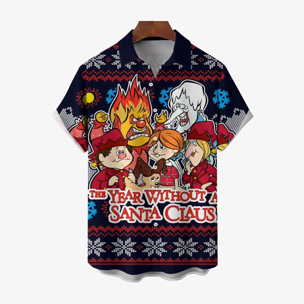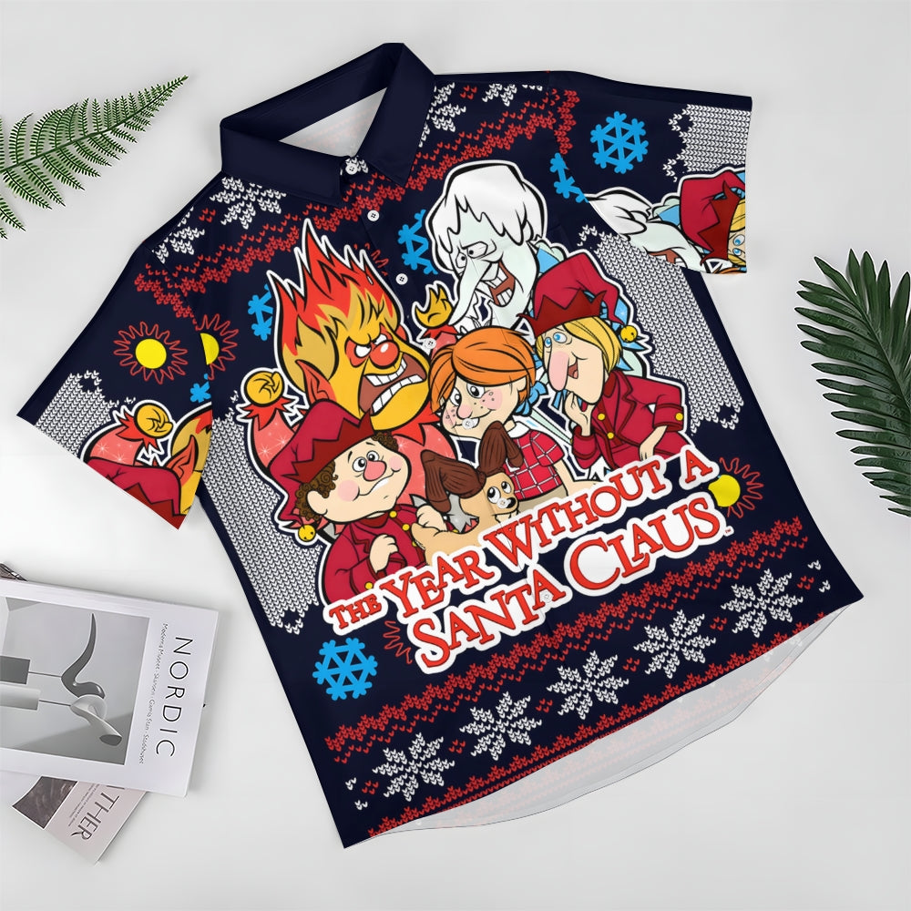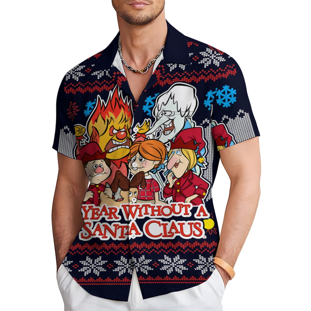 Santa Claus Cartoon Casual Short Sleeve Shirt 2409008997