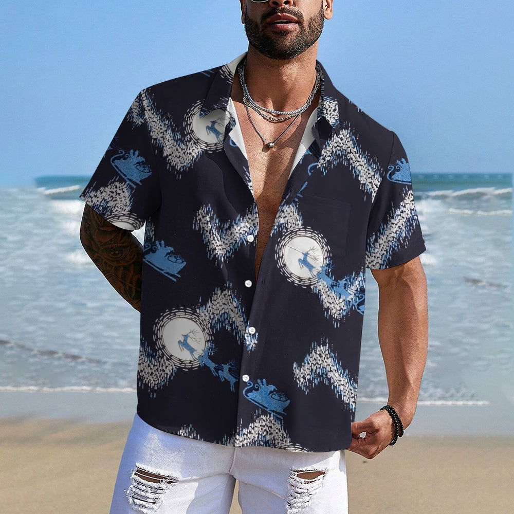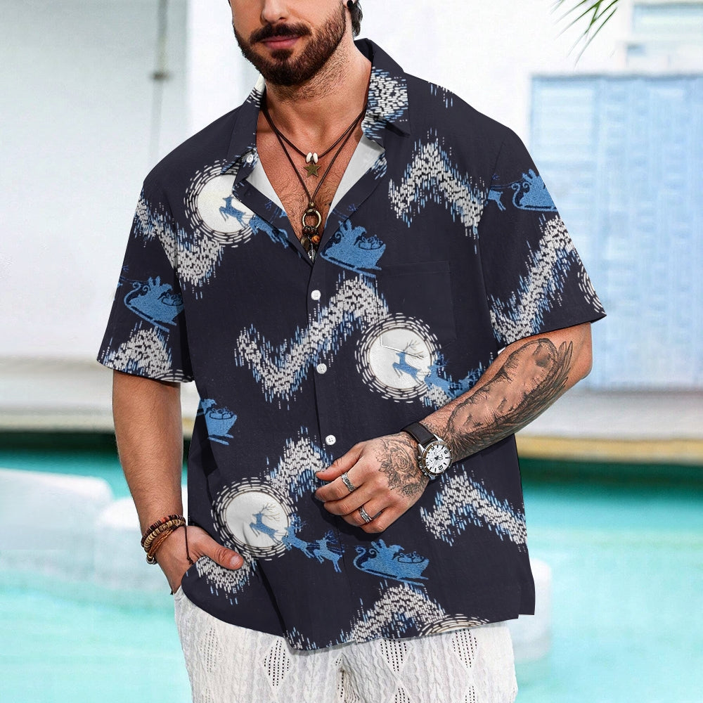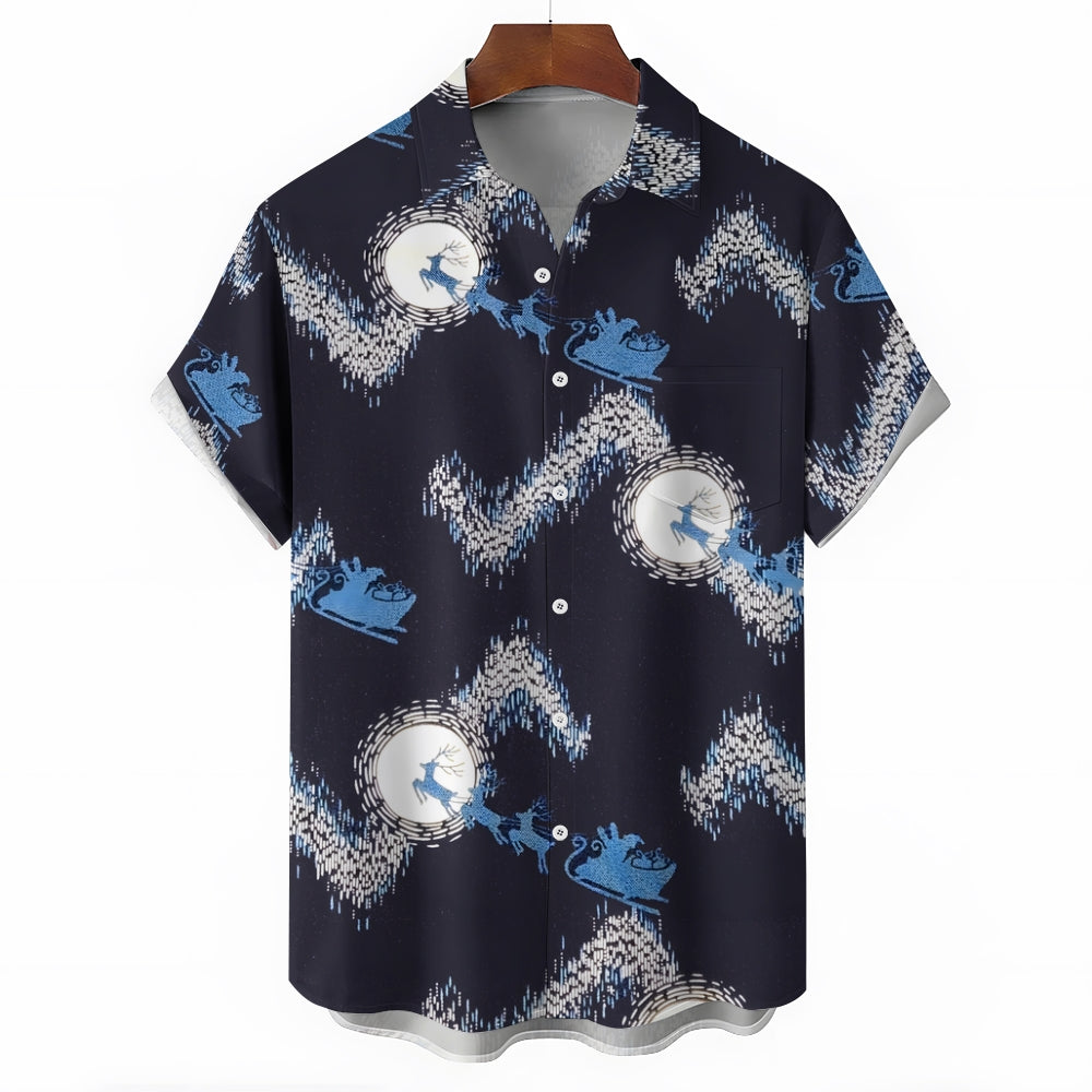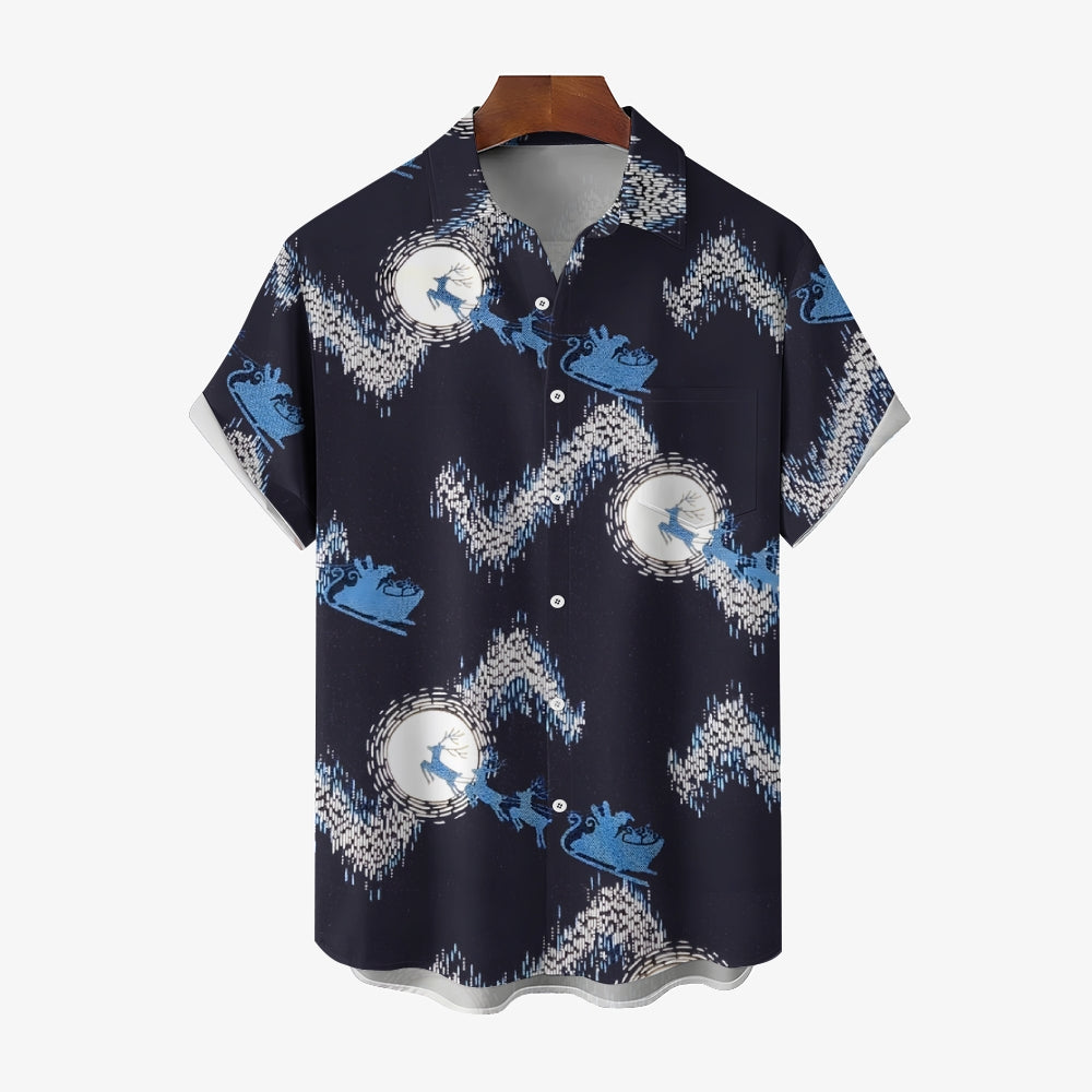 Santa Elk Casual Short Sleeve Shirt 2409008981