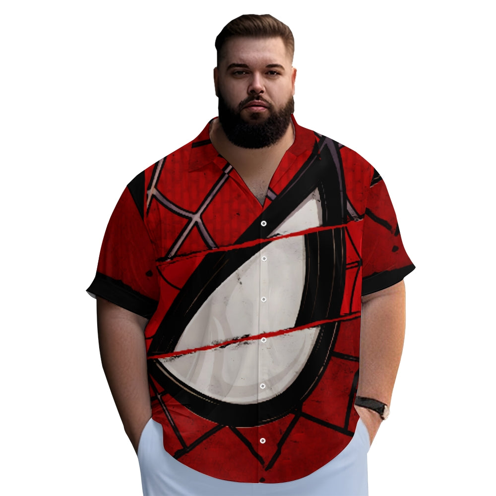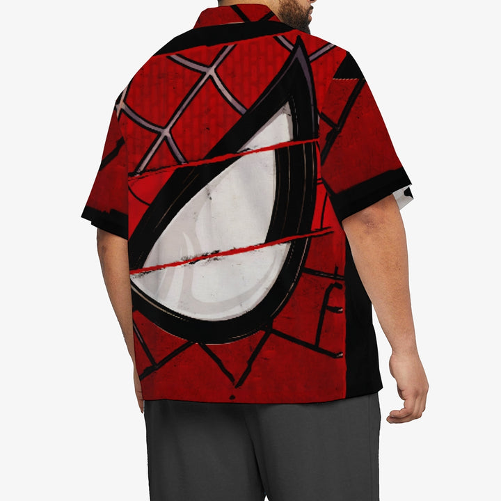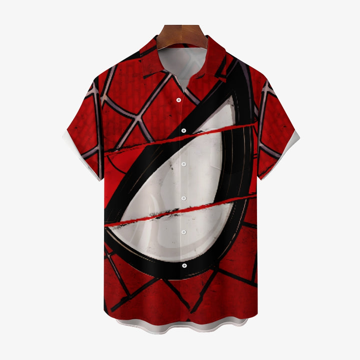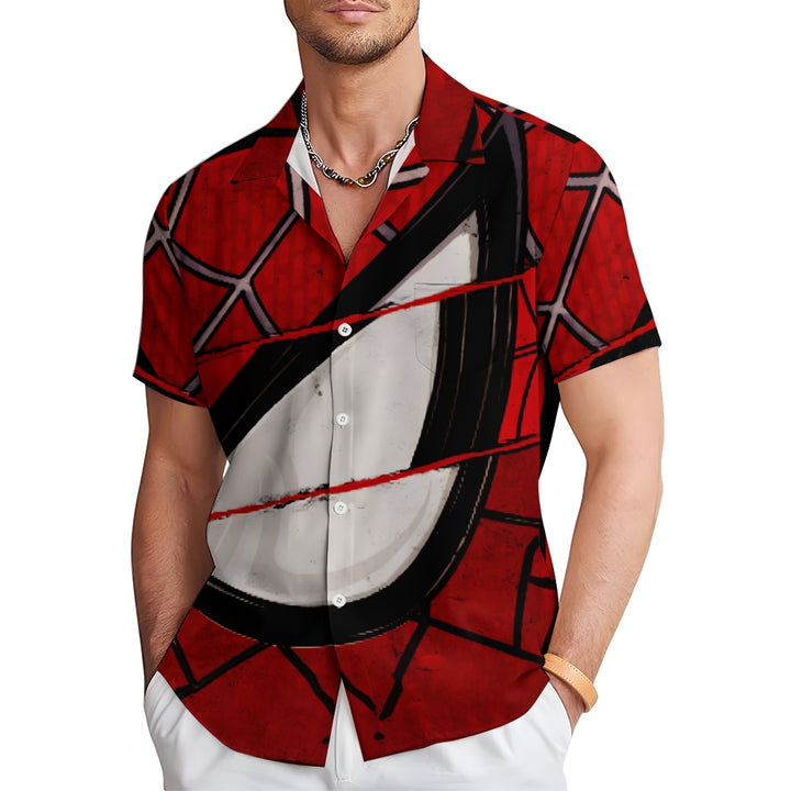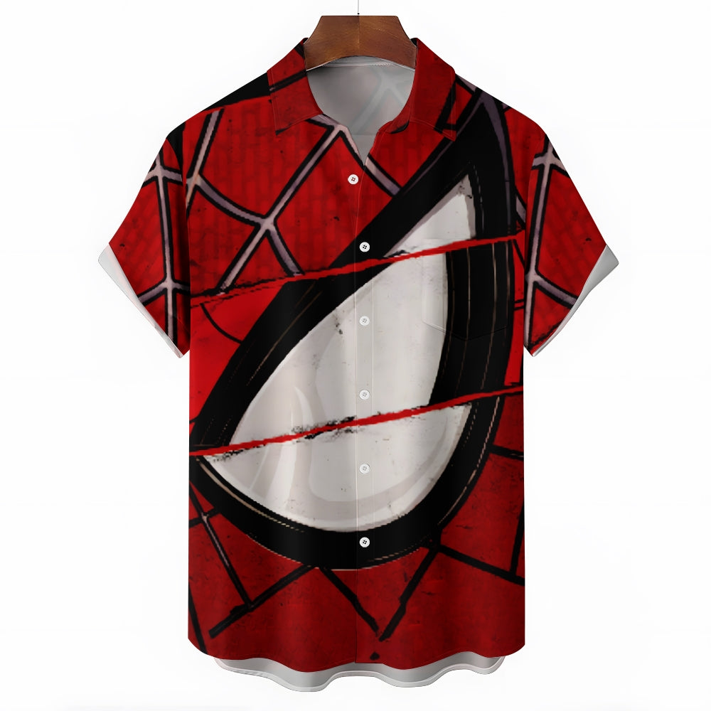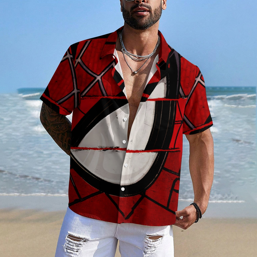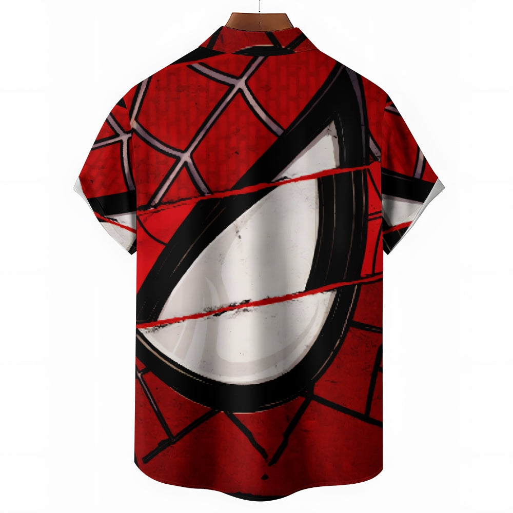 Spider Hero Print Large Slub Linen Short Sleeve Shirt 2406001580