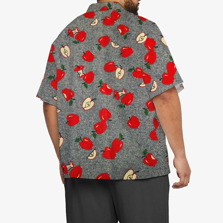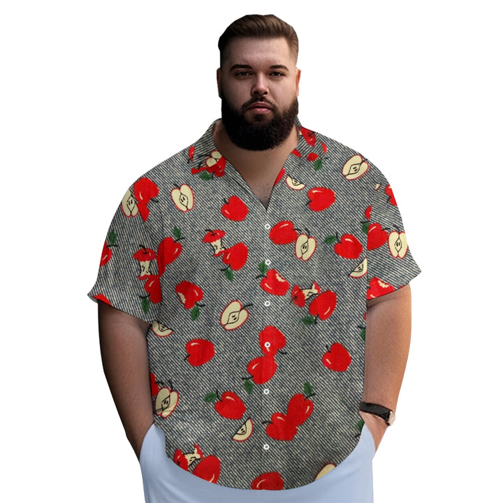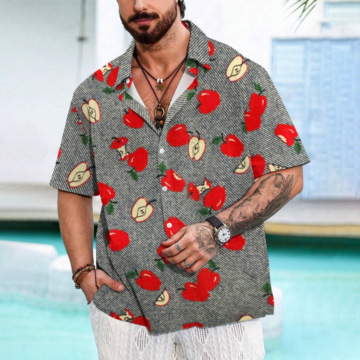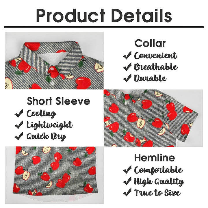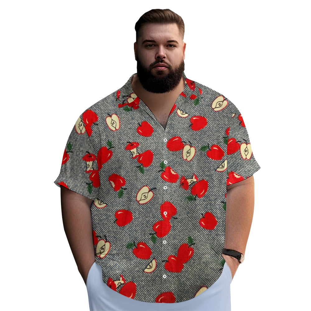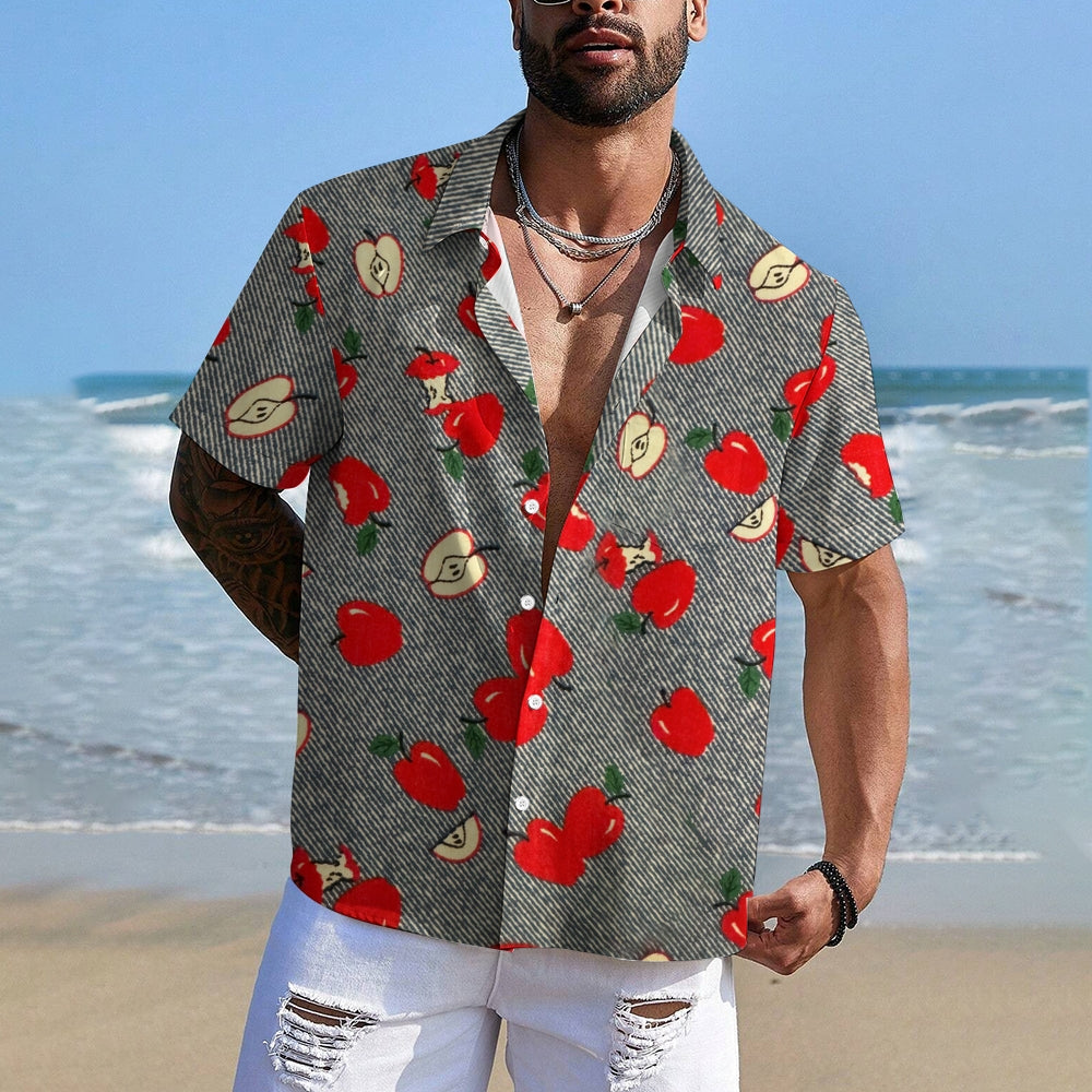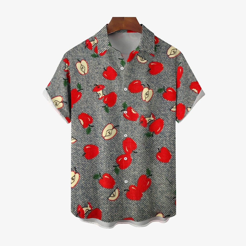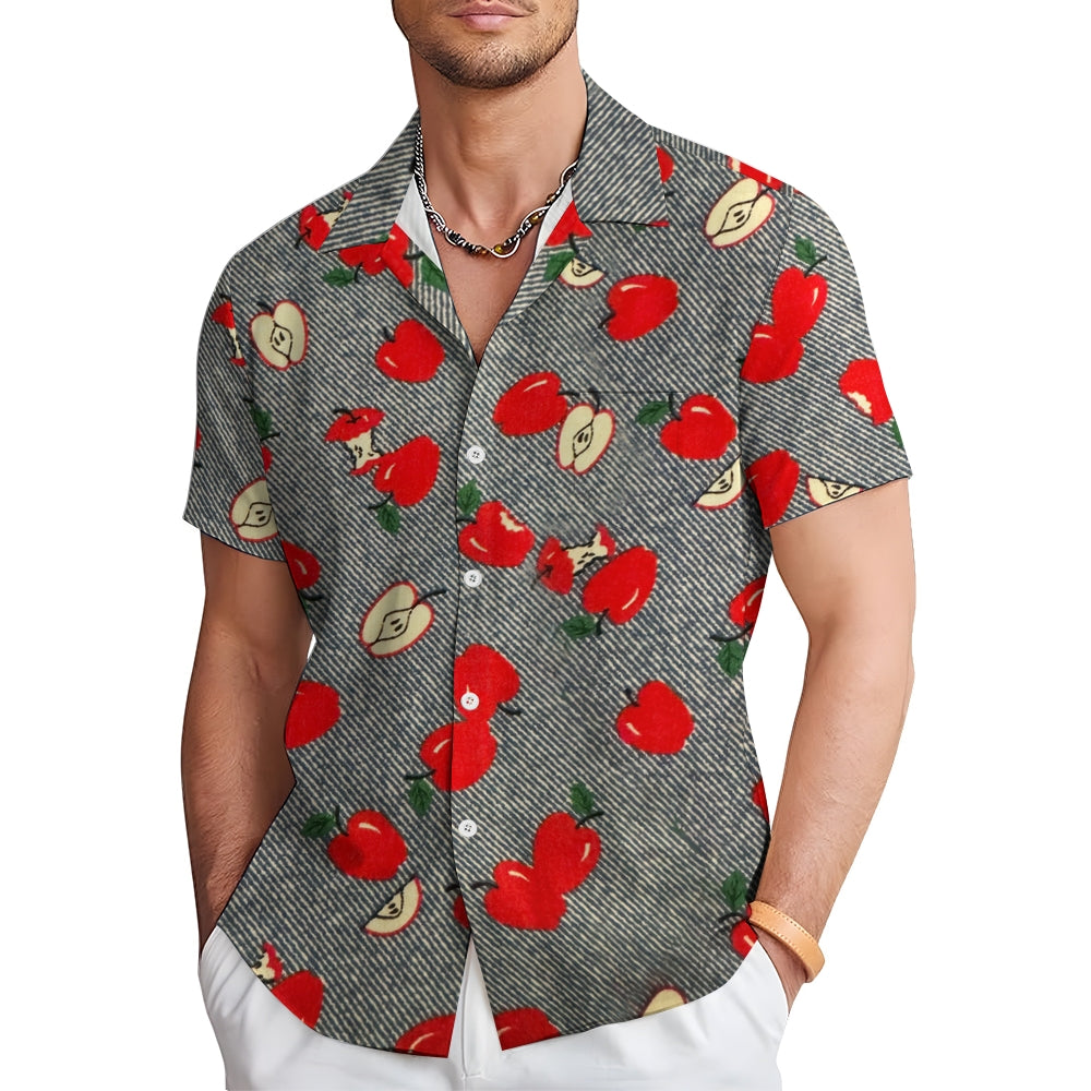 Striped Apple Print Casual Oversized Short Sleeve Shirt 2407003477