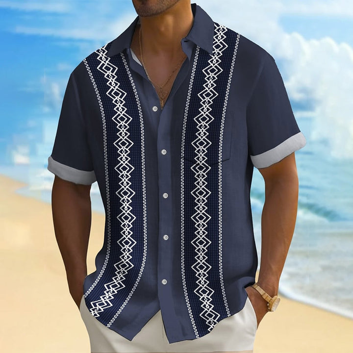 Striped Print Oversized Shirt Bamboo Linen Short Sleeve Shirt