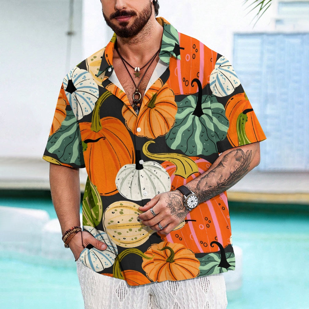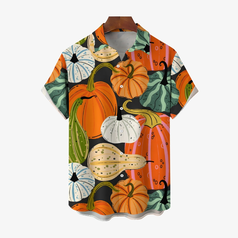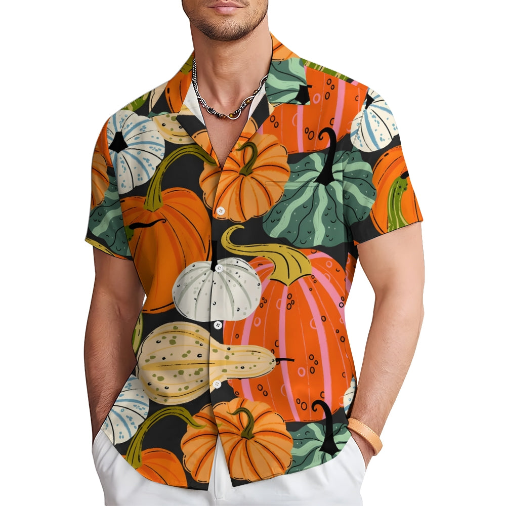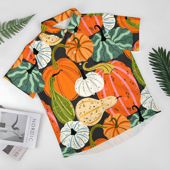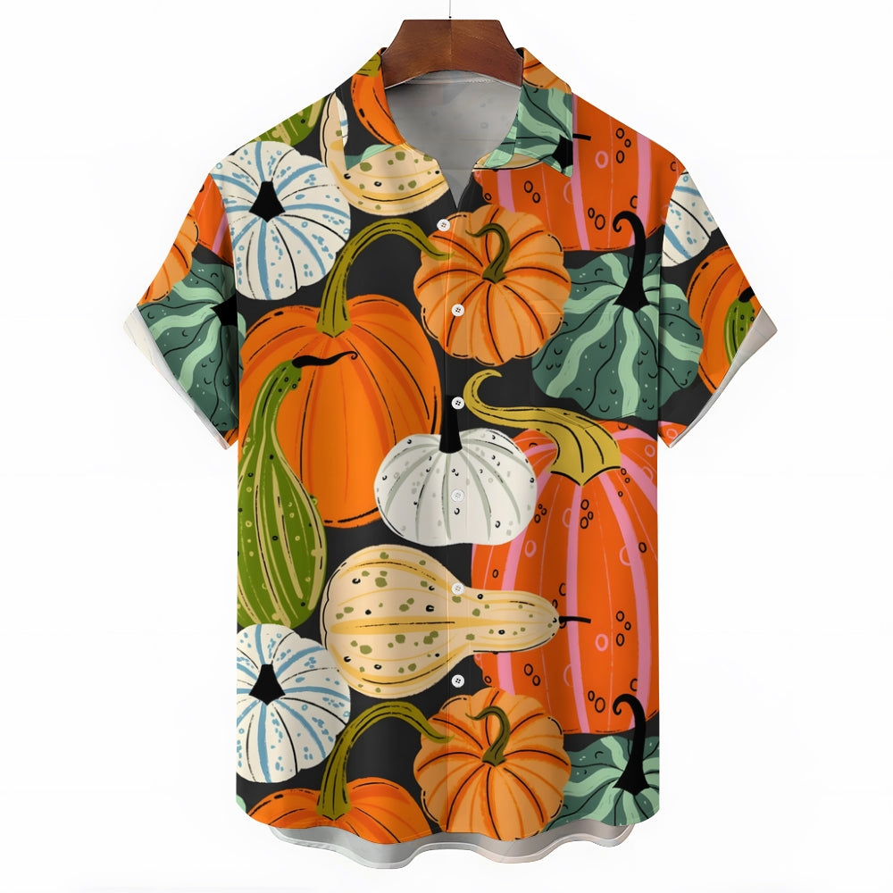 Thanksgiving Various Pumpkin Casual Short Sleeve Shirt 2410001477