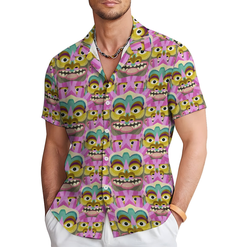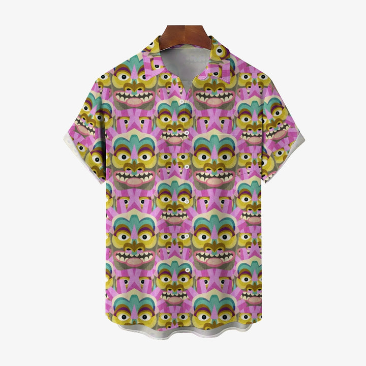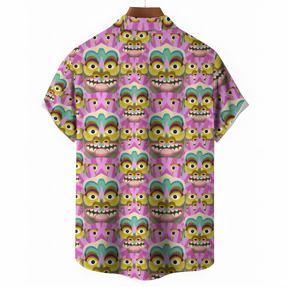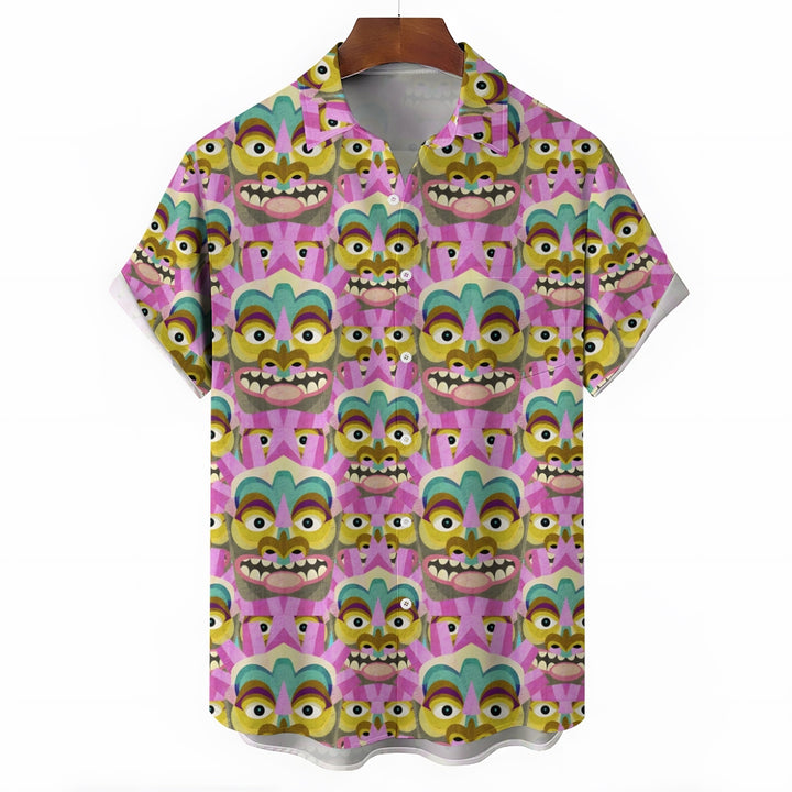 Tiki Art Print Casual Short Sleeve Shirt 2408005065