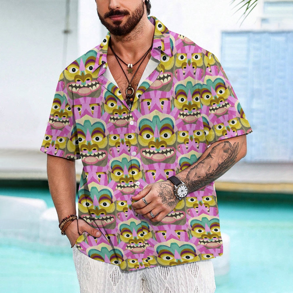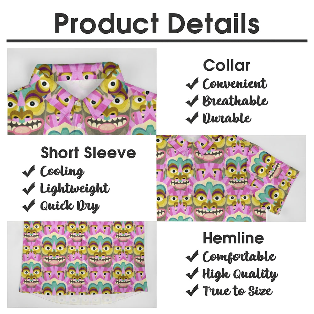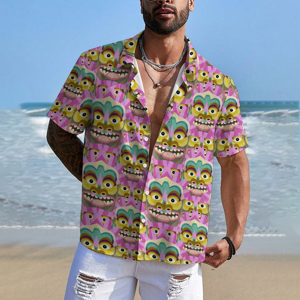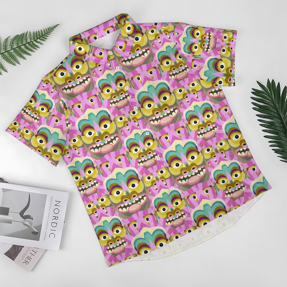 Tiki Art Print Casual Short Sleeve Shirt 2408005065