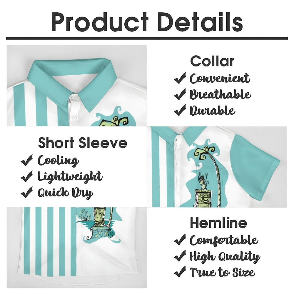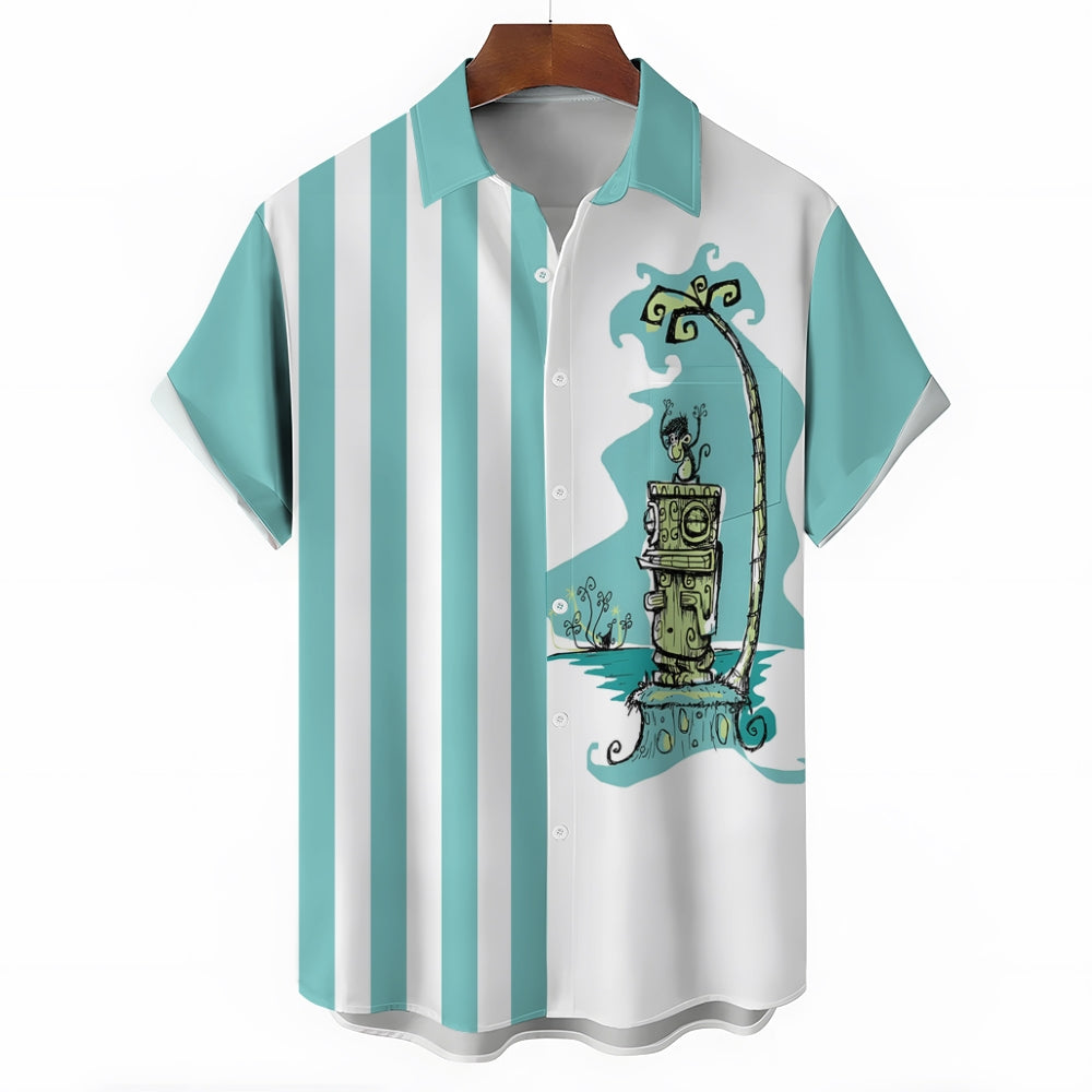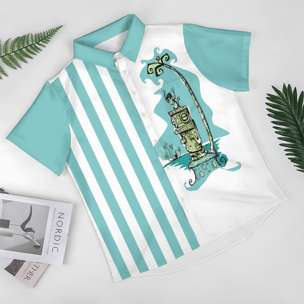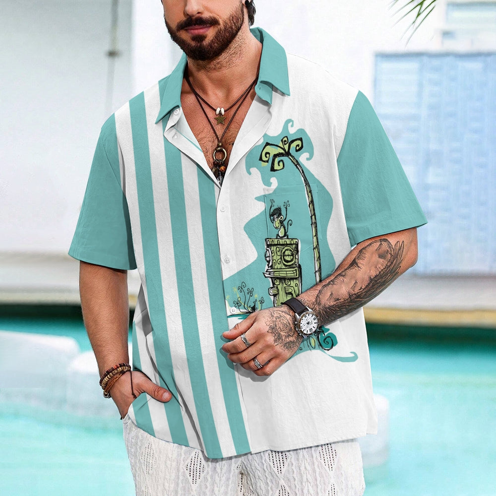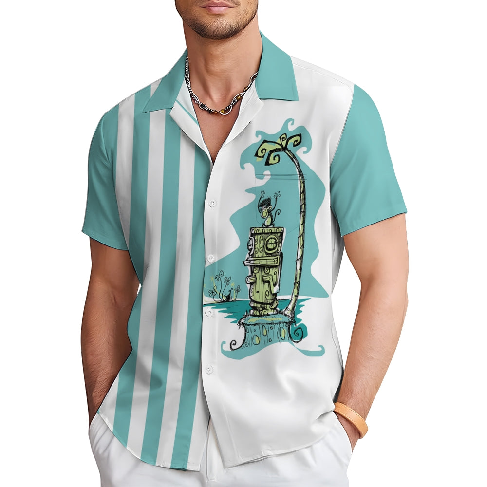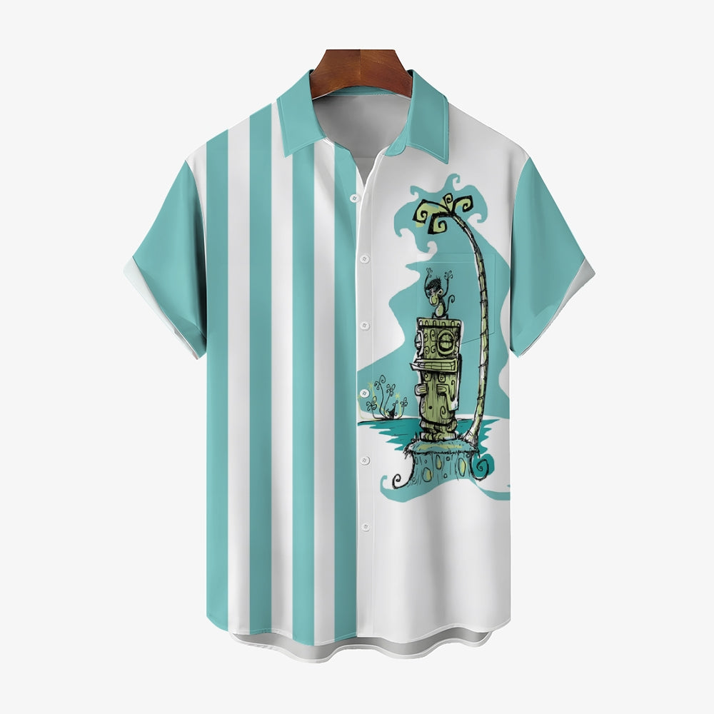 TIKI Art Stripe Print Casual Short Sleeve Shirt 2403000457