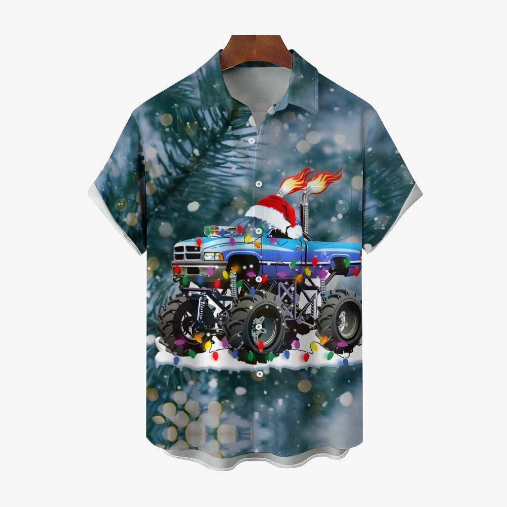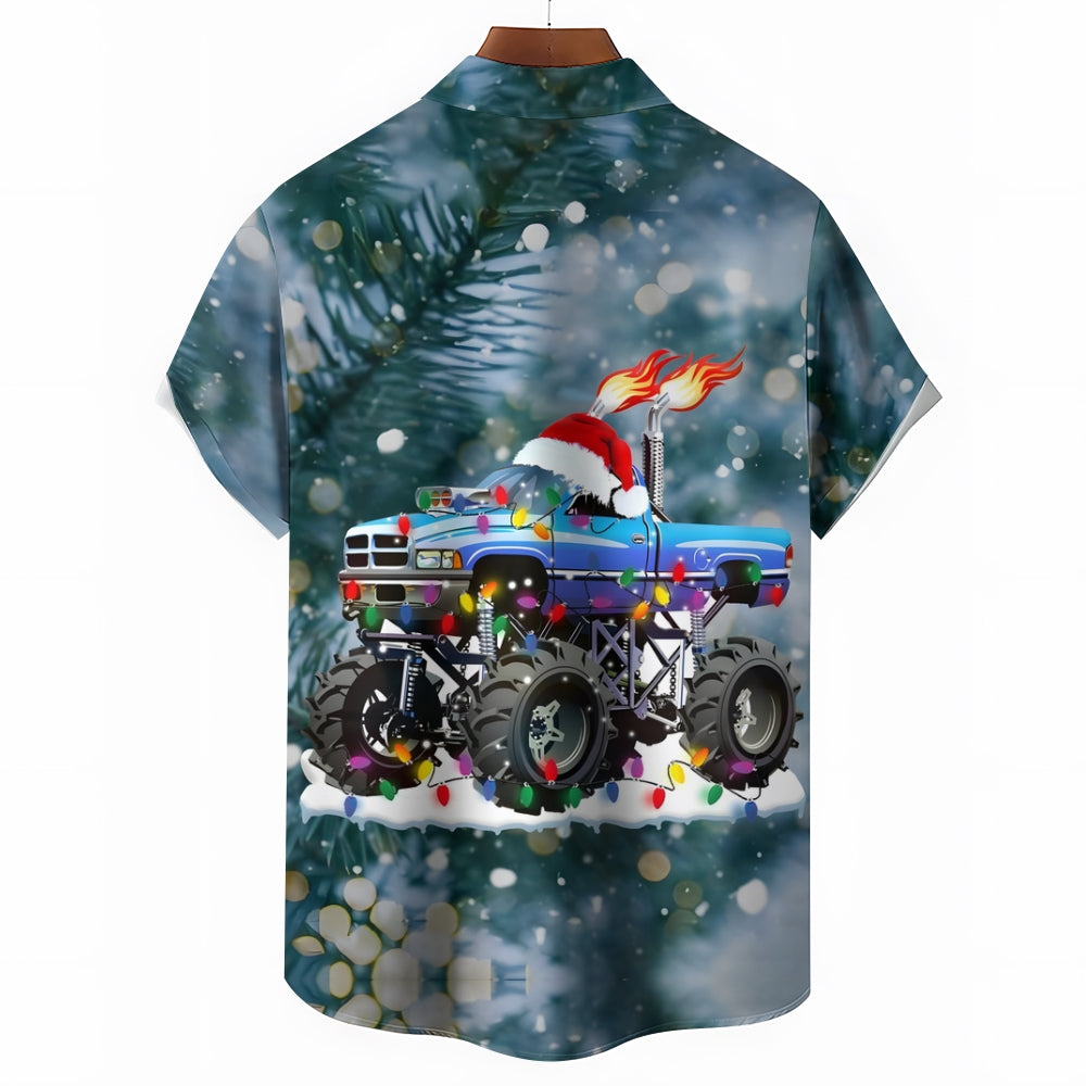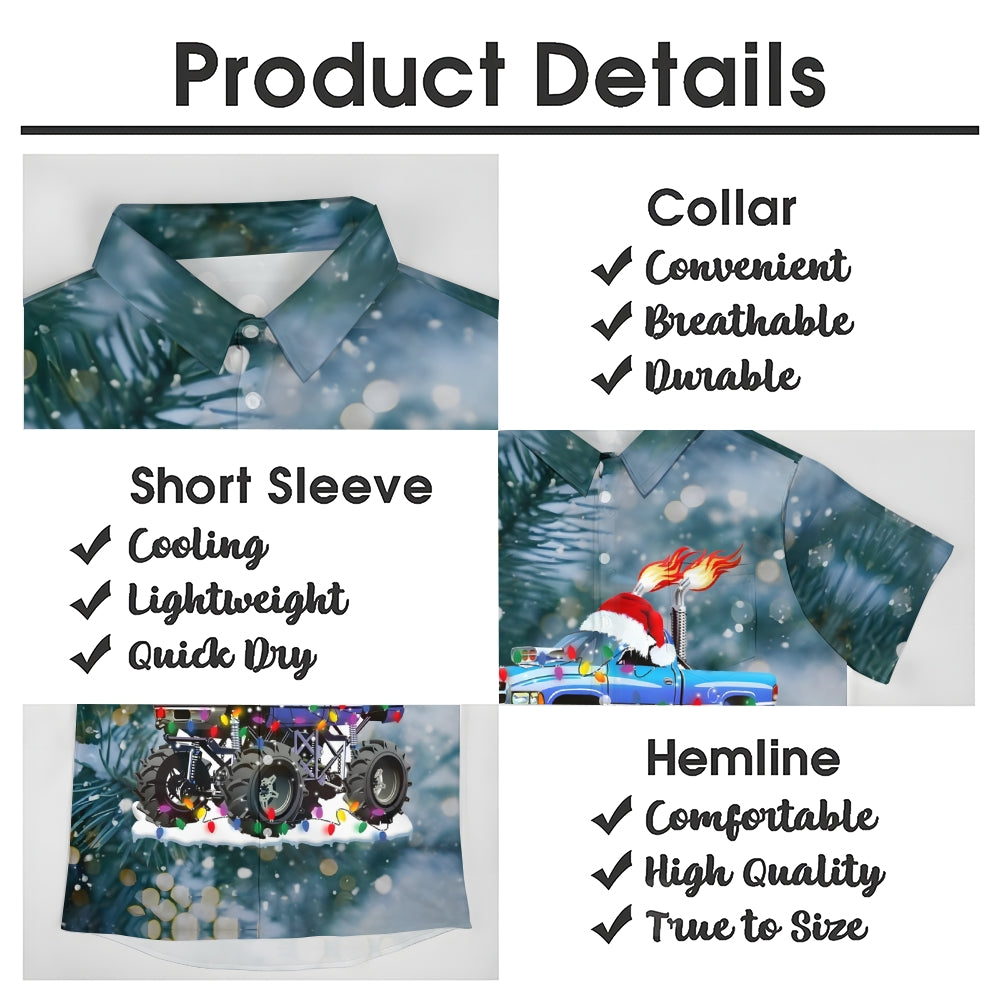 Truck Christmas Colored Lights Casual Short Sleeve Shirt 2408007723