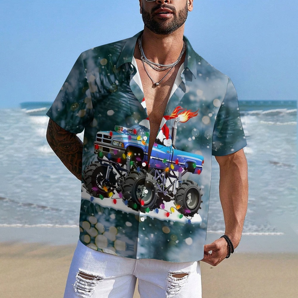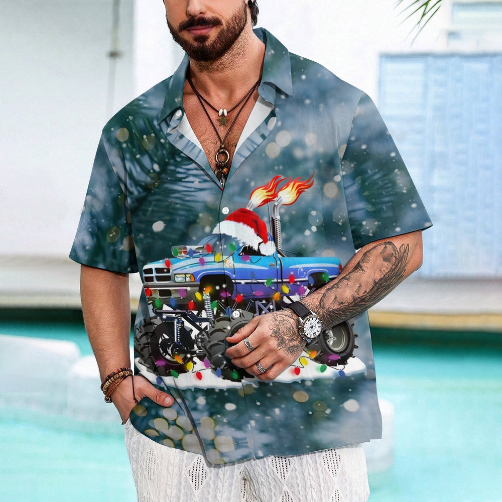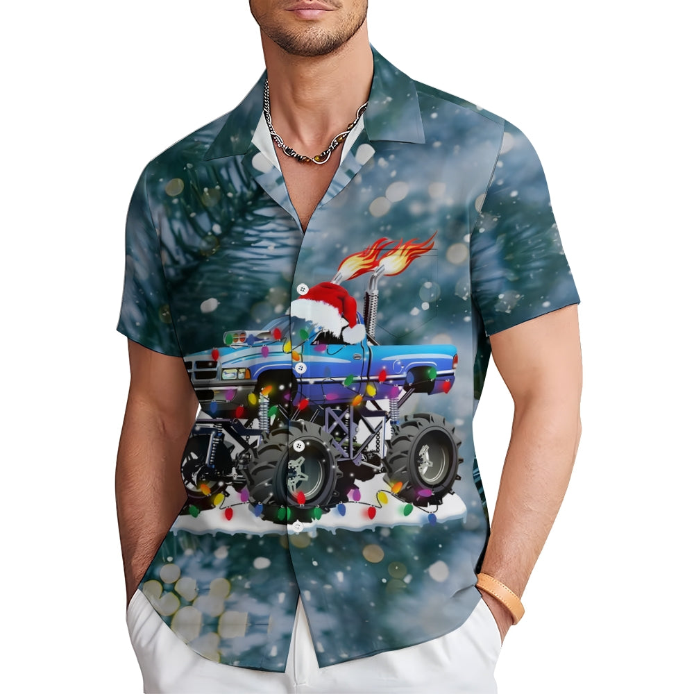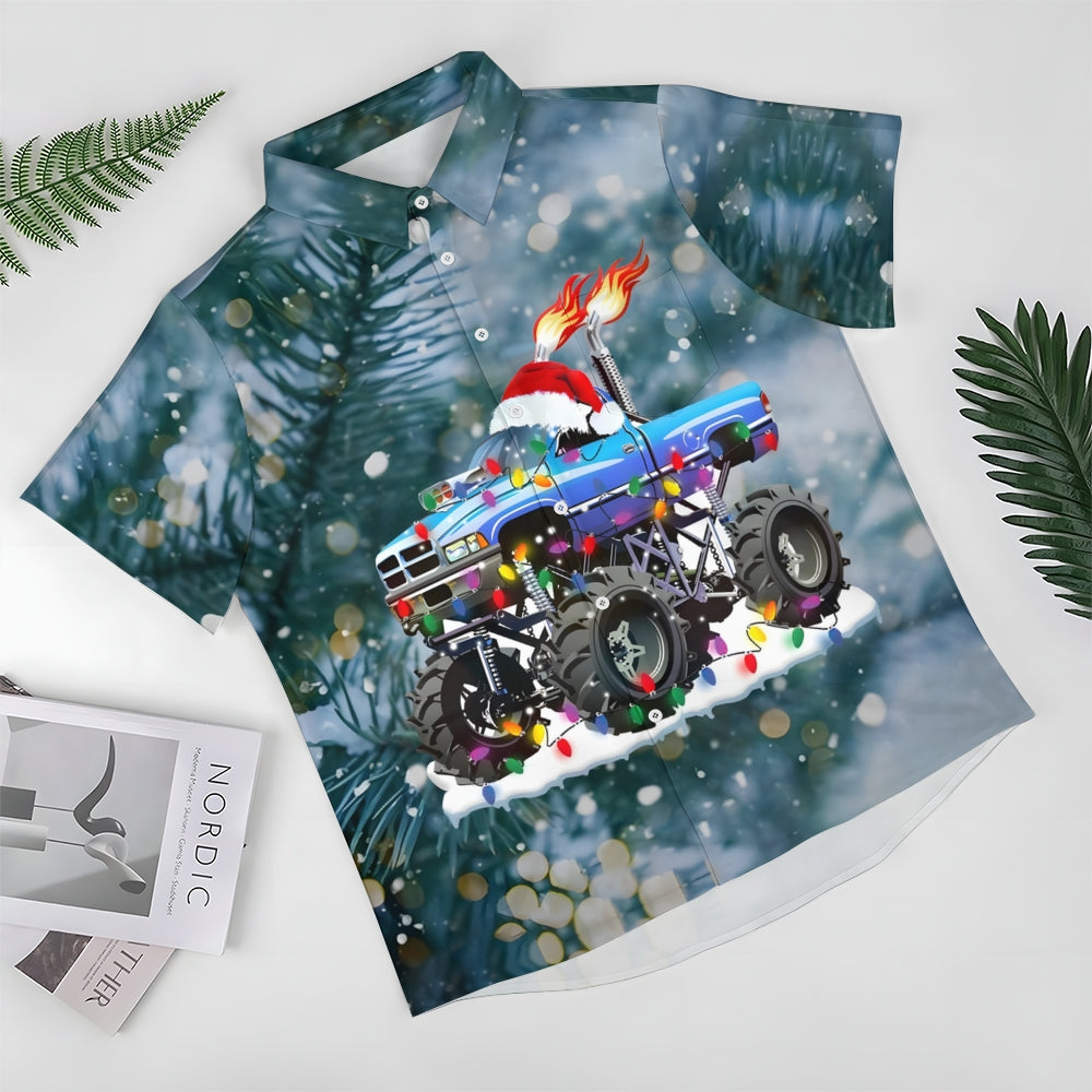 Truck Christmas Colored Lights Casual Short Sleeve Shirt 2408007723