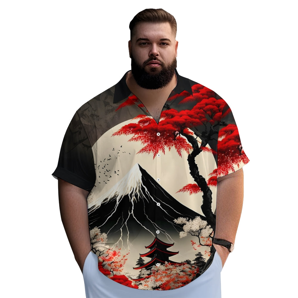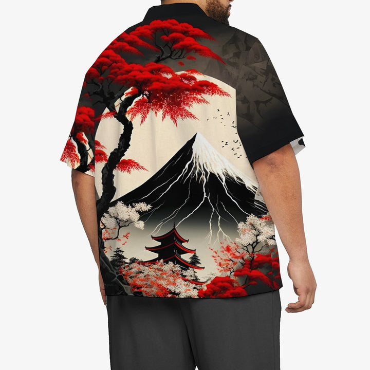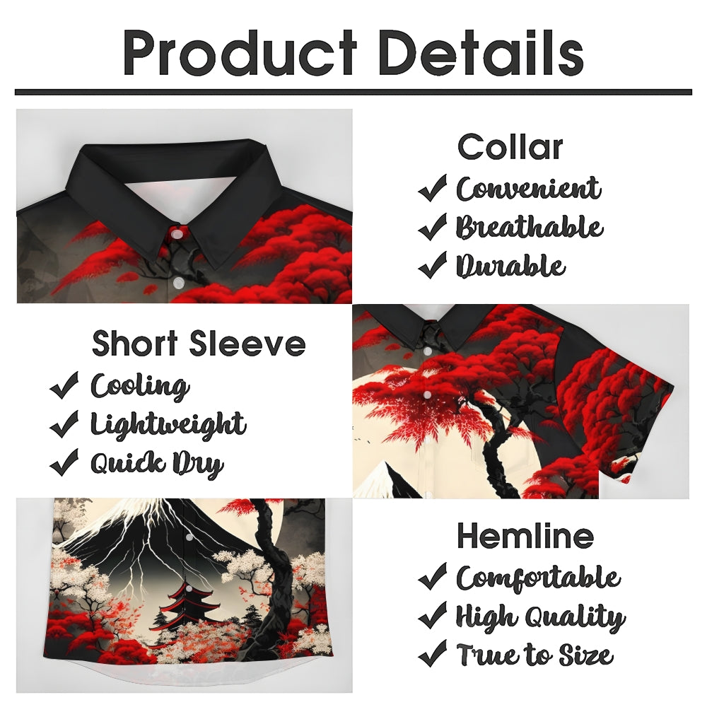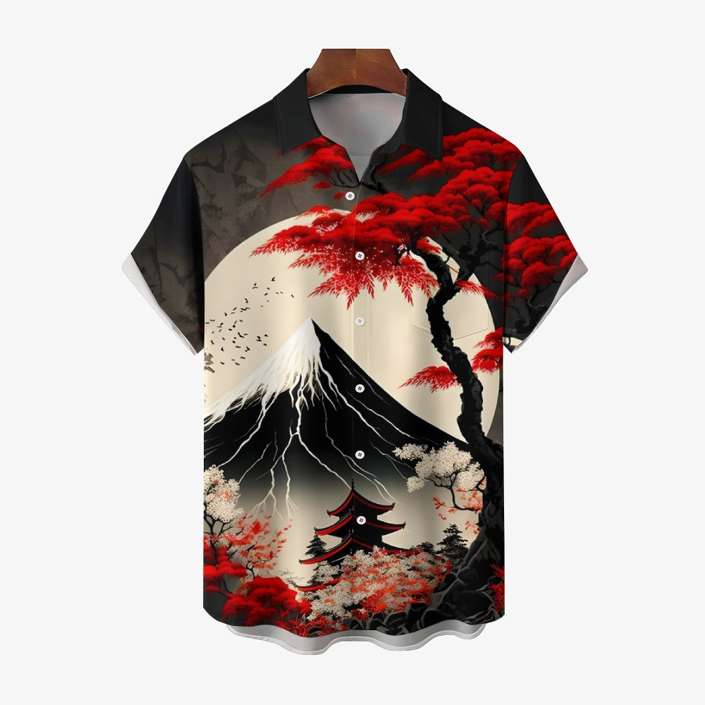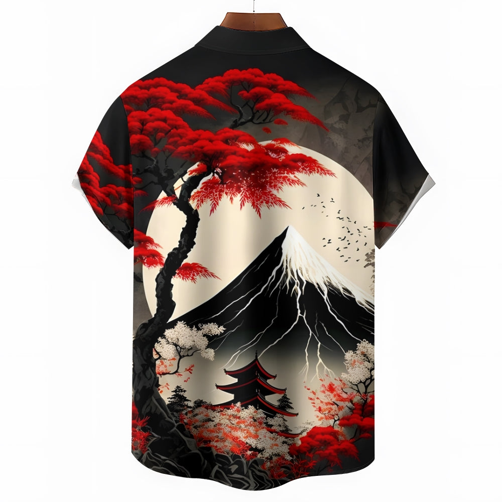 Ukiyo-E Landscape Snow Mountain And Tree Printing Short Sleeve Shirt 2404001930